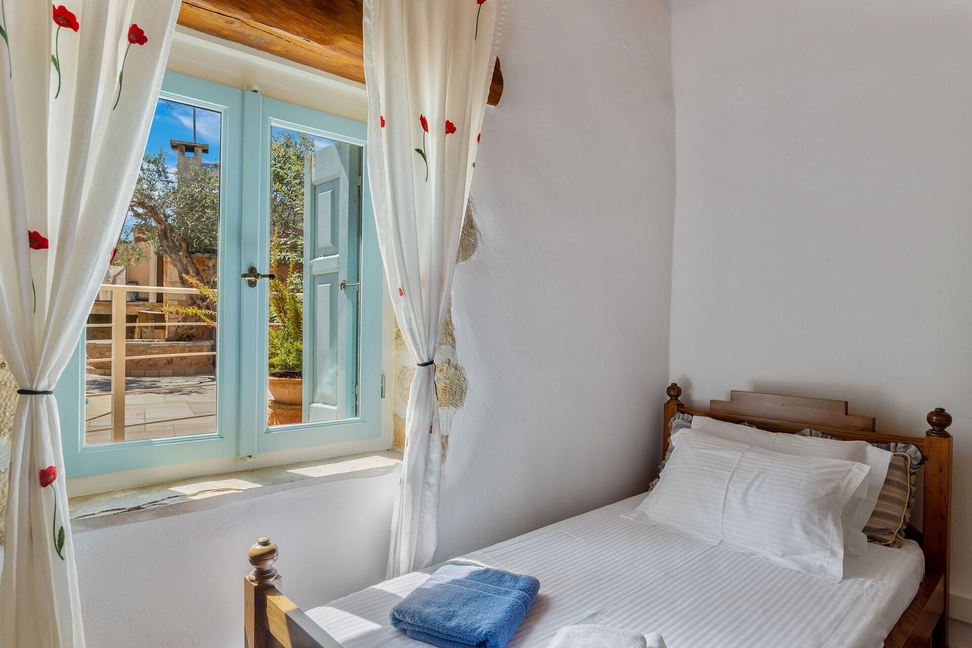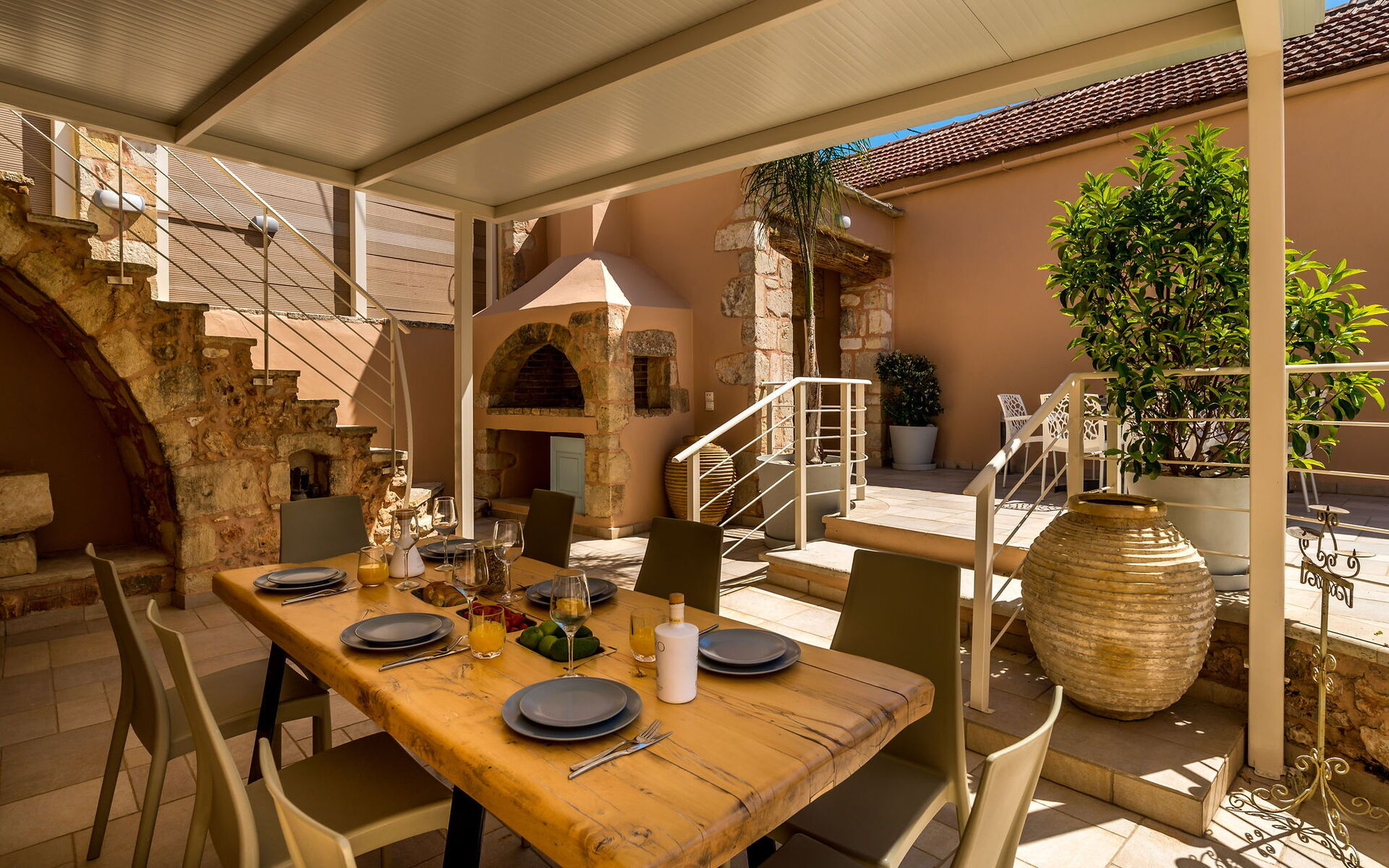 This villa’s central location is within easy reach by car of Crete’s most famous areas, and you can explore the whole island: don’t miss the cities of Chania and Rethimno, charming villages scattered here and there, Lake Kournas, and the beautiful sea accessible from the nearby towns of Almyrida and Georgioupolis.