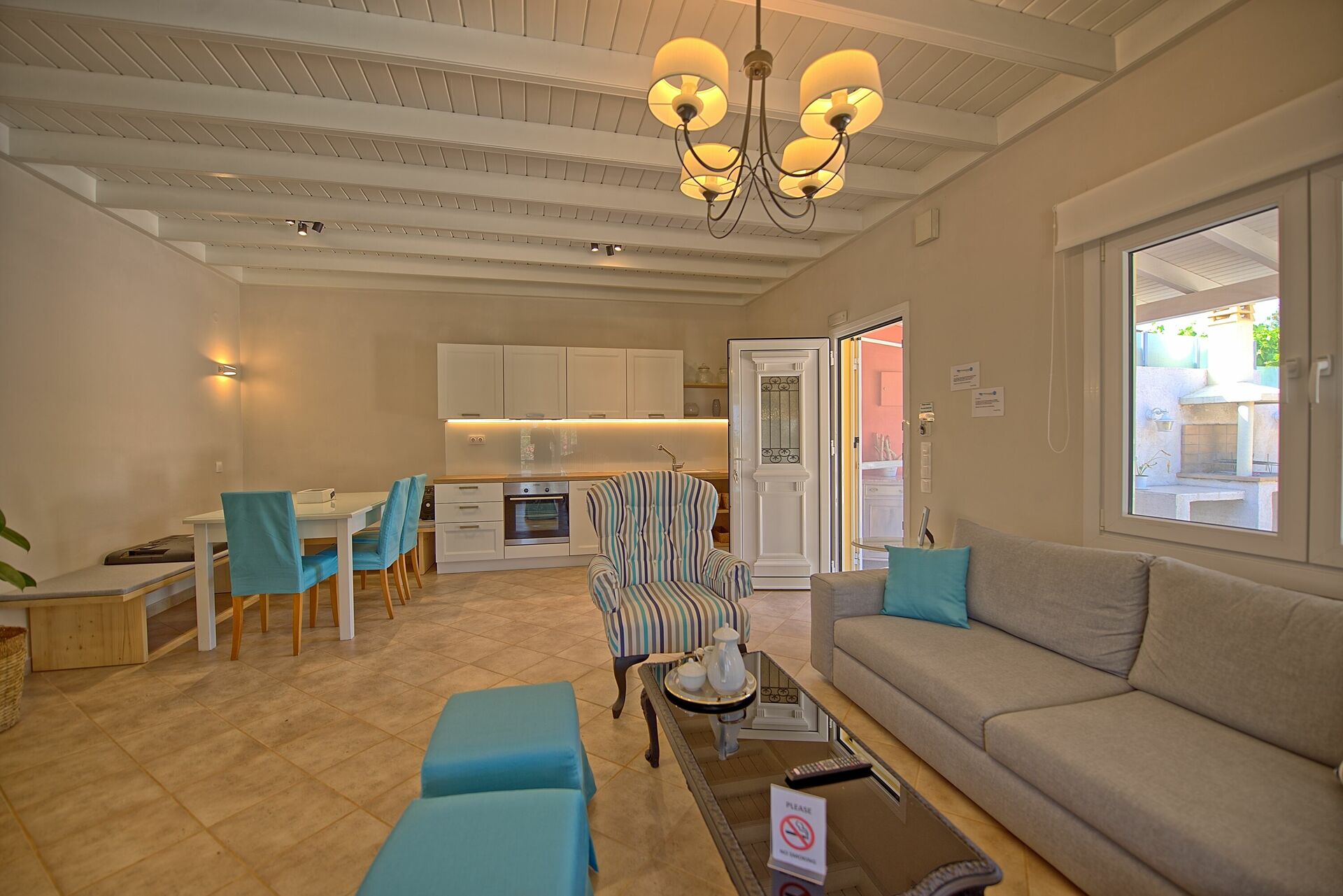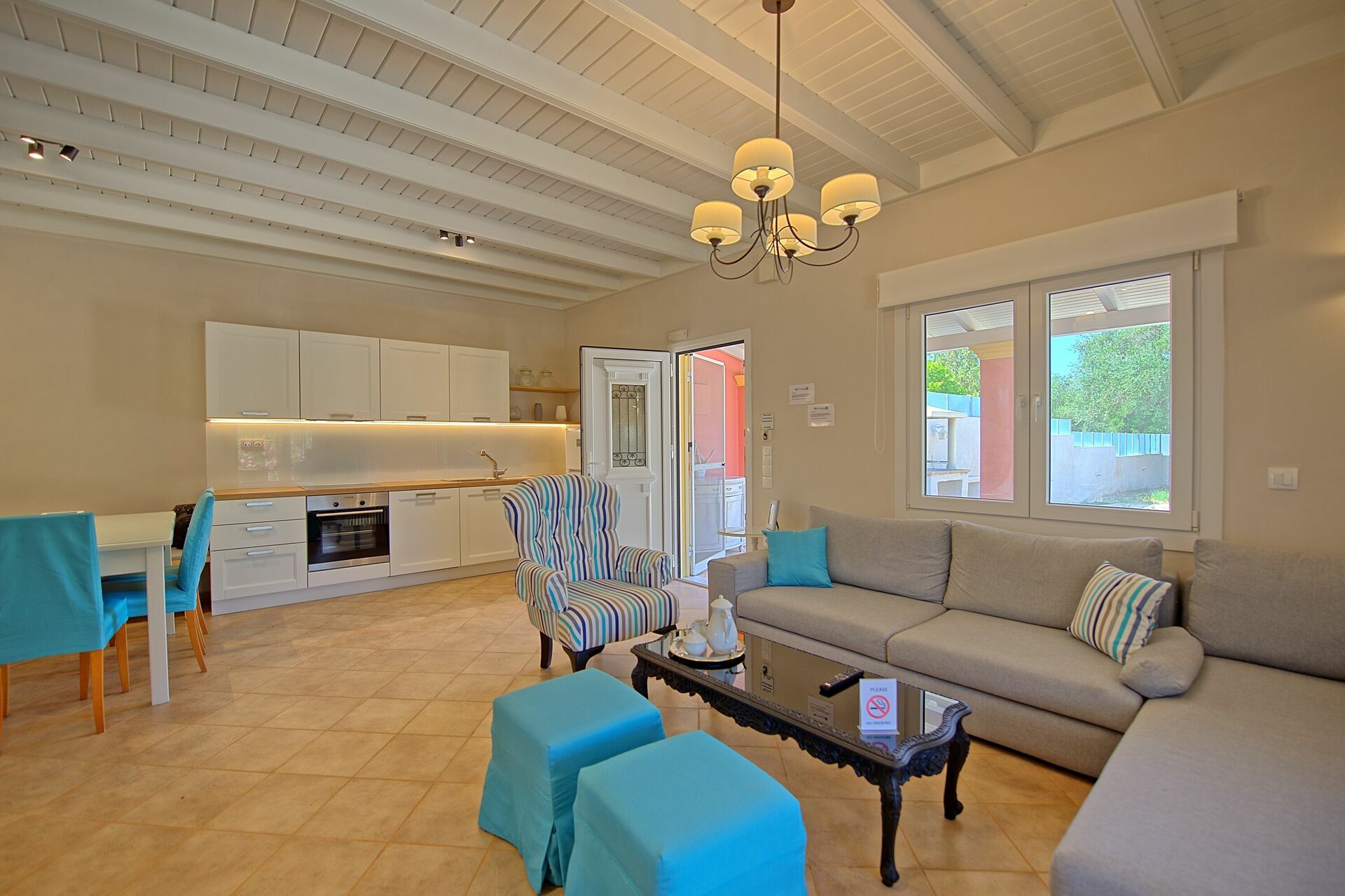 For anyone thinking of staying with small children, the fact that the villa is all on one level is also convenient, and the place is well stocked with plates/knives/forks etc if you are thinking of self catering.