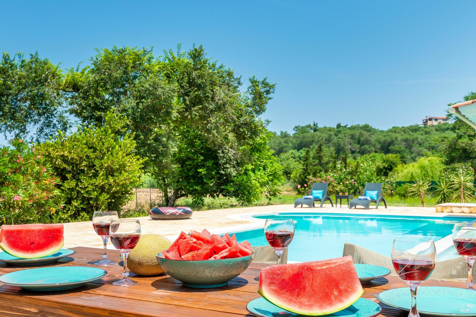 The house is beautifully located in the country. Not perfect for the beach but the pool is big enough and very well maintained with no chlorine smell or taste.