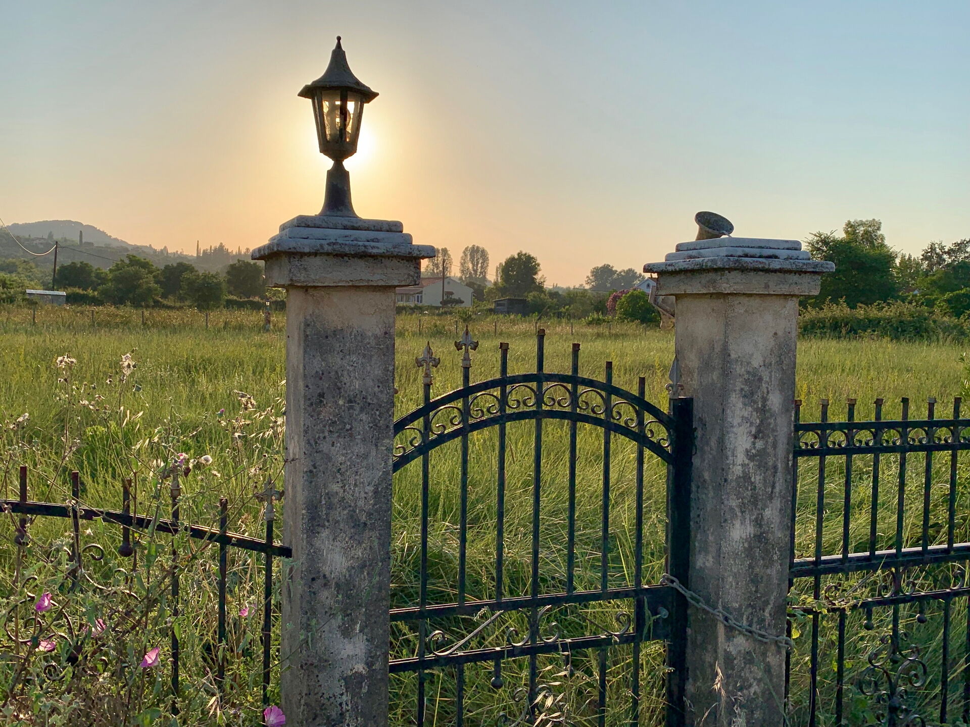 - large gardens with lawn and olive trees