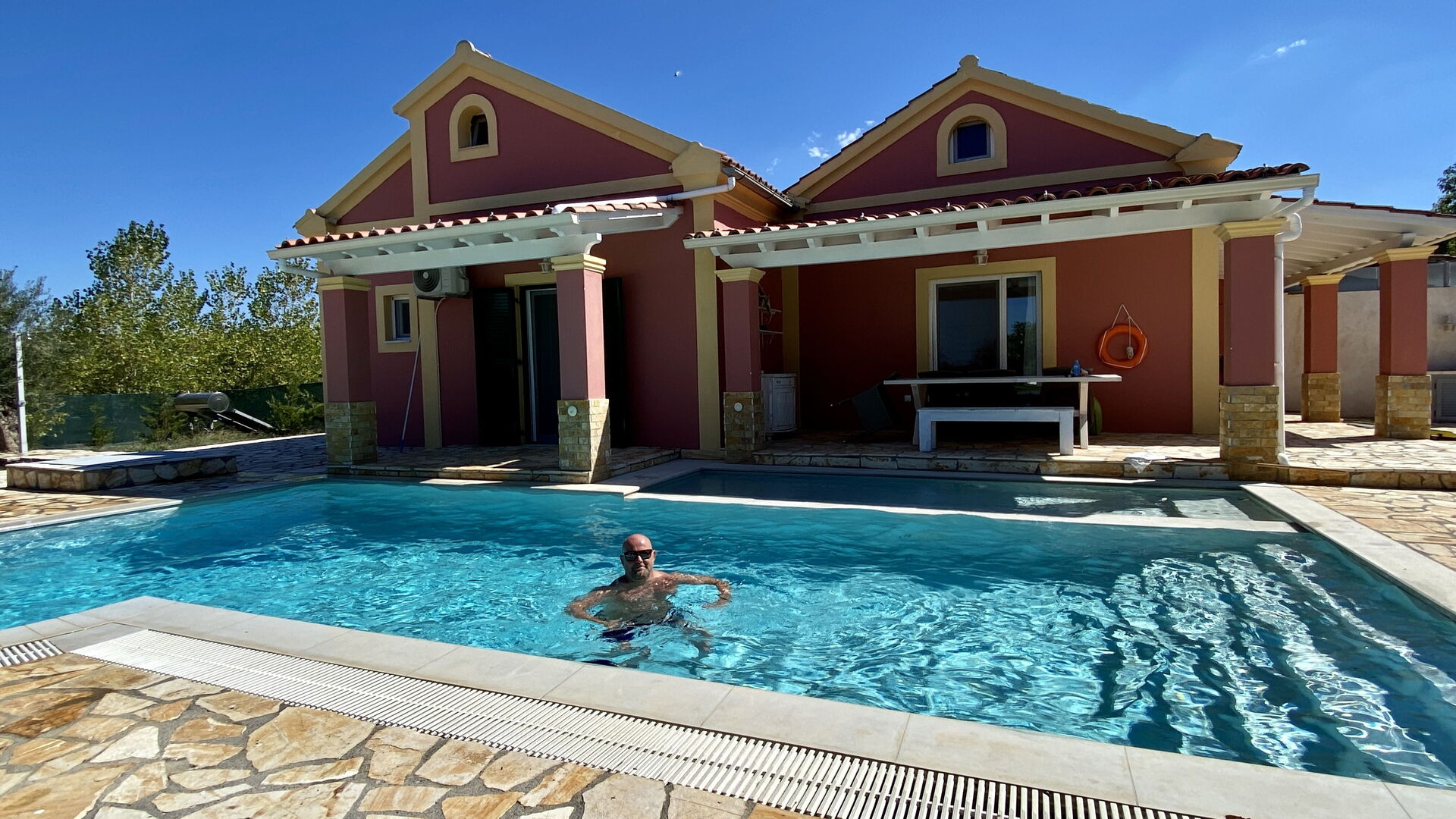 This villa is really fabulous. We loved being in a totally peaceful location and enjoyed the pool and outside living. We cooked on the BBQ, there's a good outside kitchen and it's a spacious and lovely space to chill and relax. You need a car to get around and see the island, but we also walked to the Three brothers taverna and had the best squid ever. It was a lovely walk, turn out of the gate and walk right and turn left at the beach . It was lovely to be able to do this when you don't want to drive but would like a lunch or evening out. The owners are charming and they very helpful and attentive. The cleaning of this villa was fantastic, thank you to the lady who came during our stay, you were super. All in all if you are debating- GO!