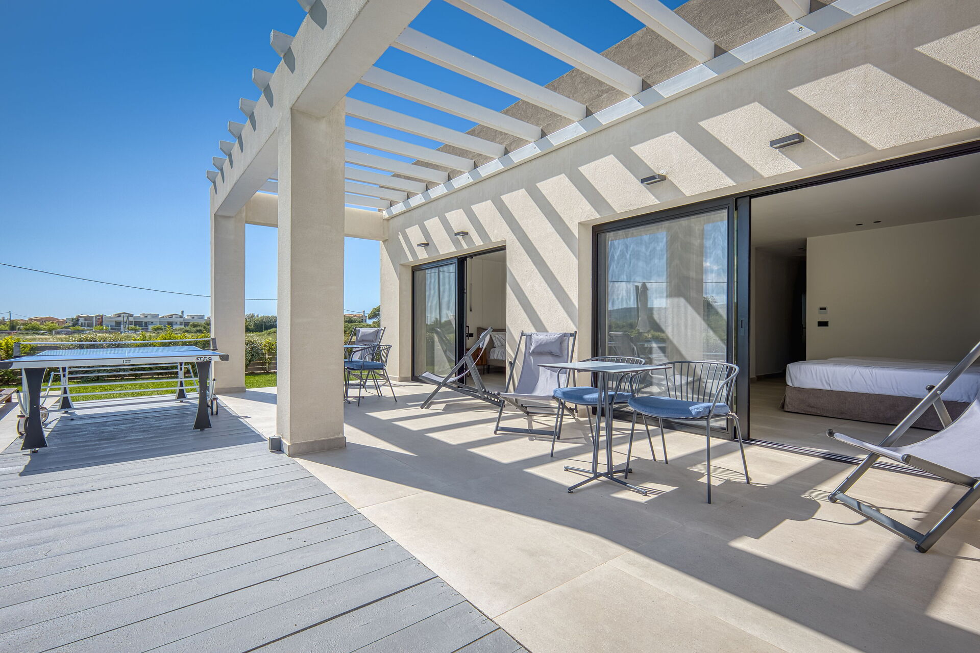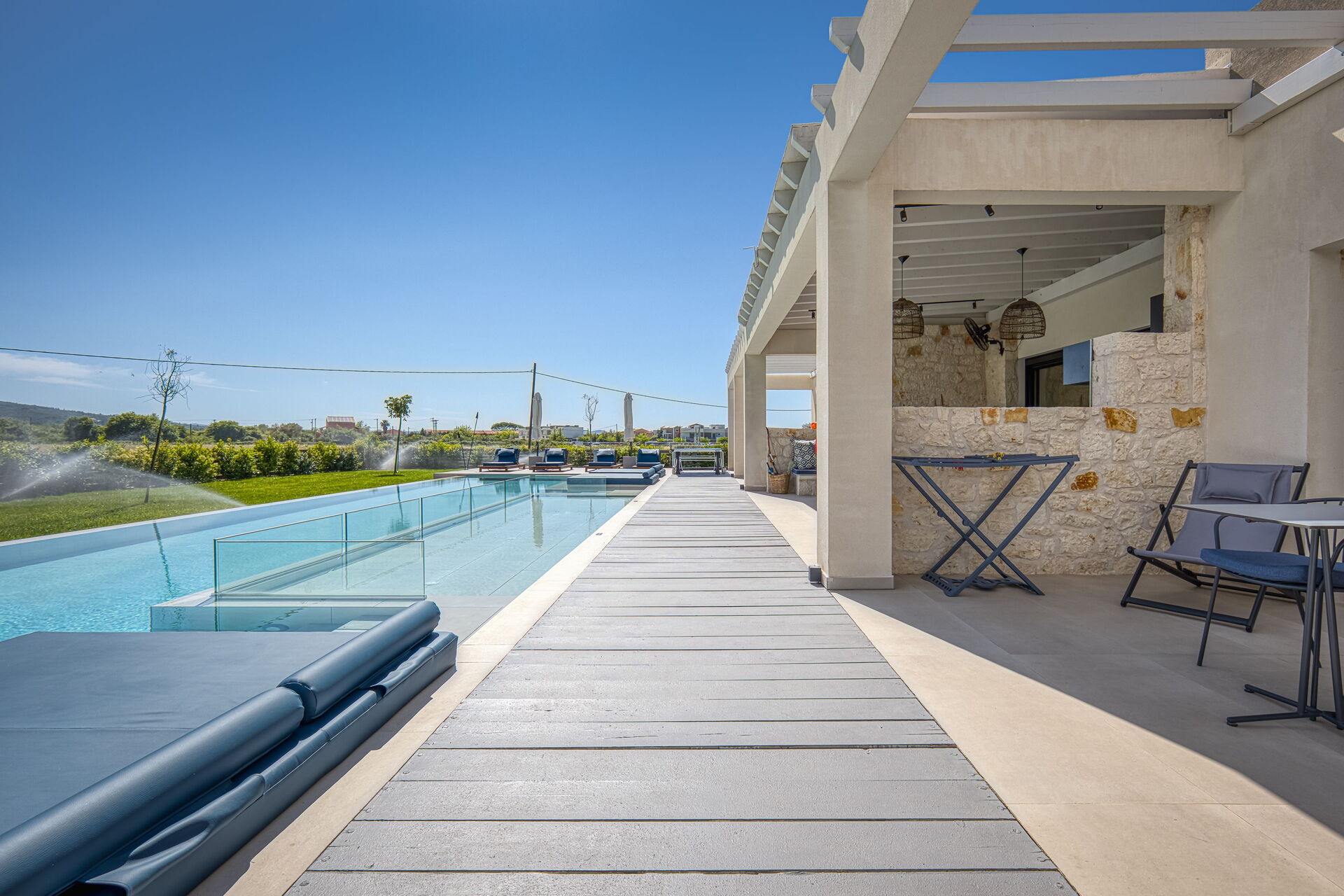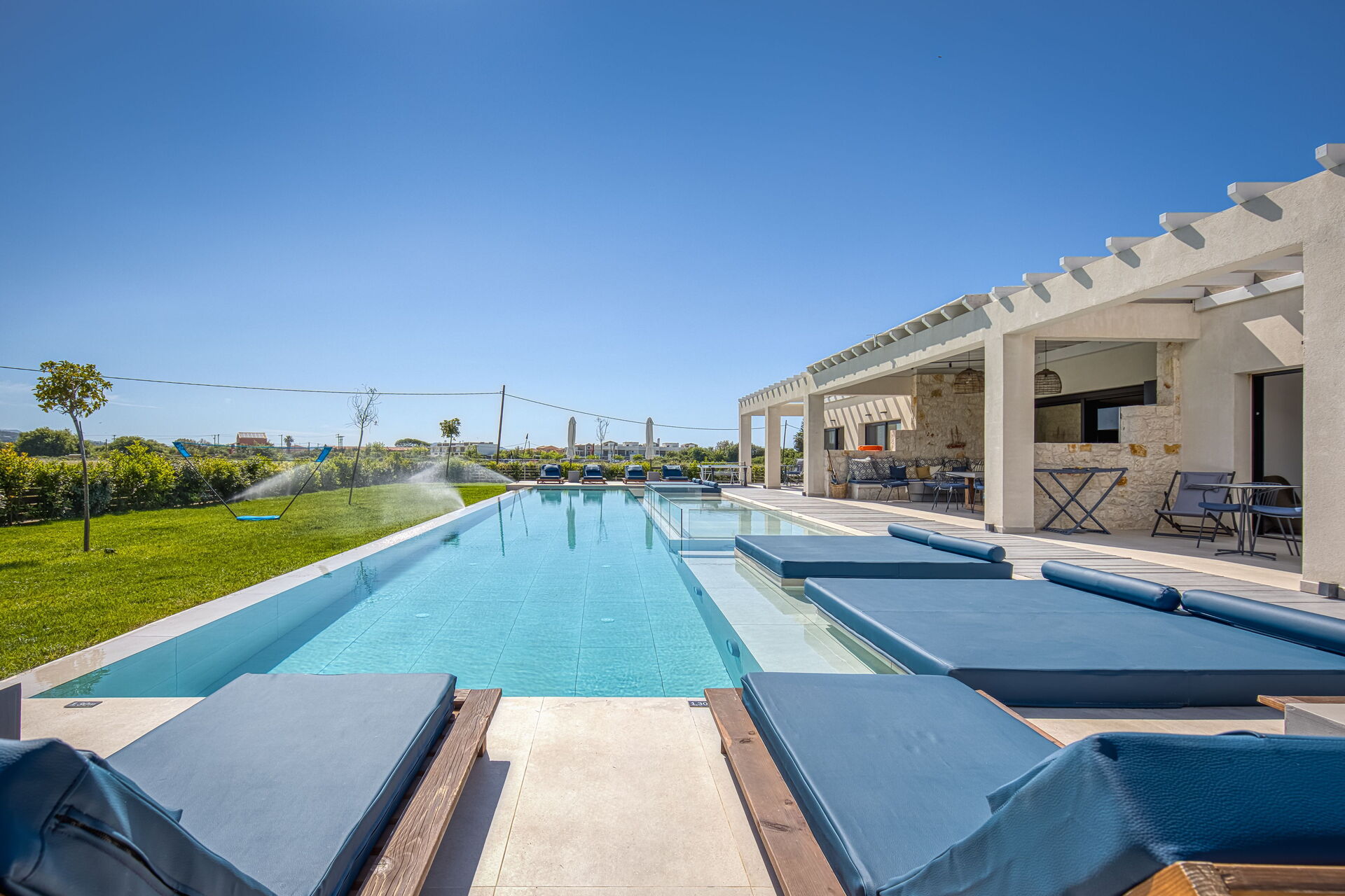 It is located on the northern part of the island, just tens of meters away from Almyros beach. The villa has 5 bedrooms and modern, luxurious interiors equipped with all amenities. It can accommodate up to 10 people.