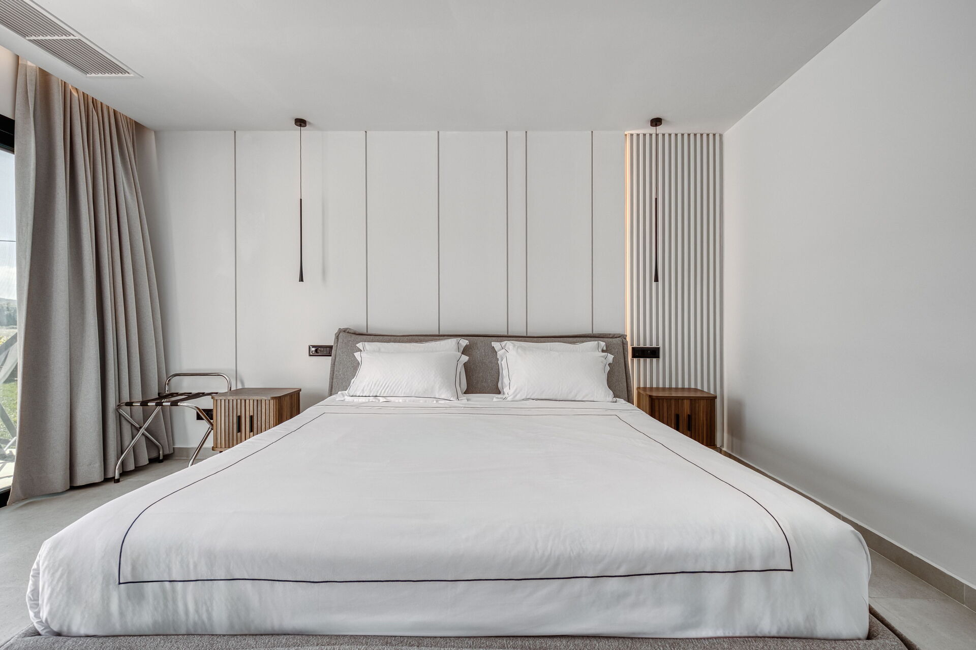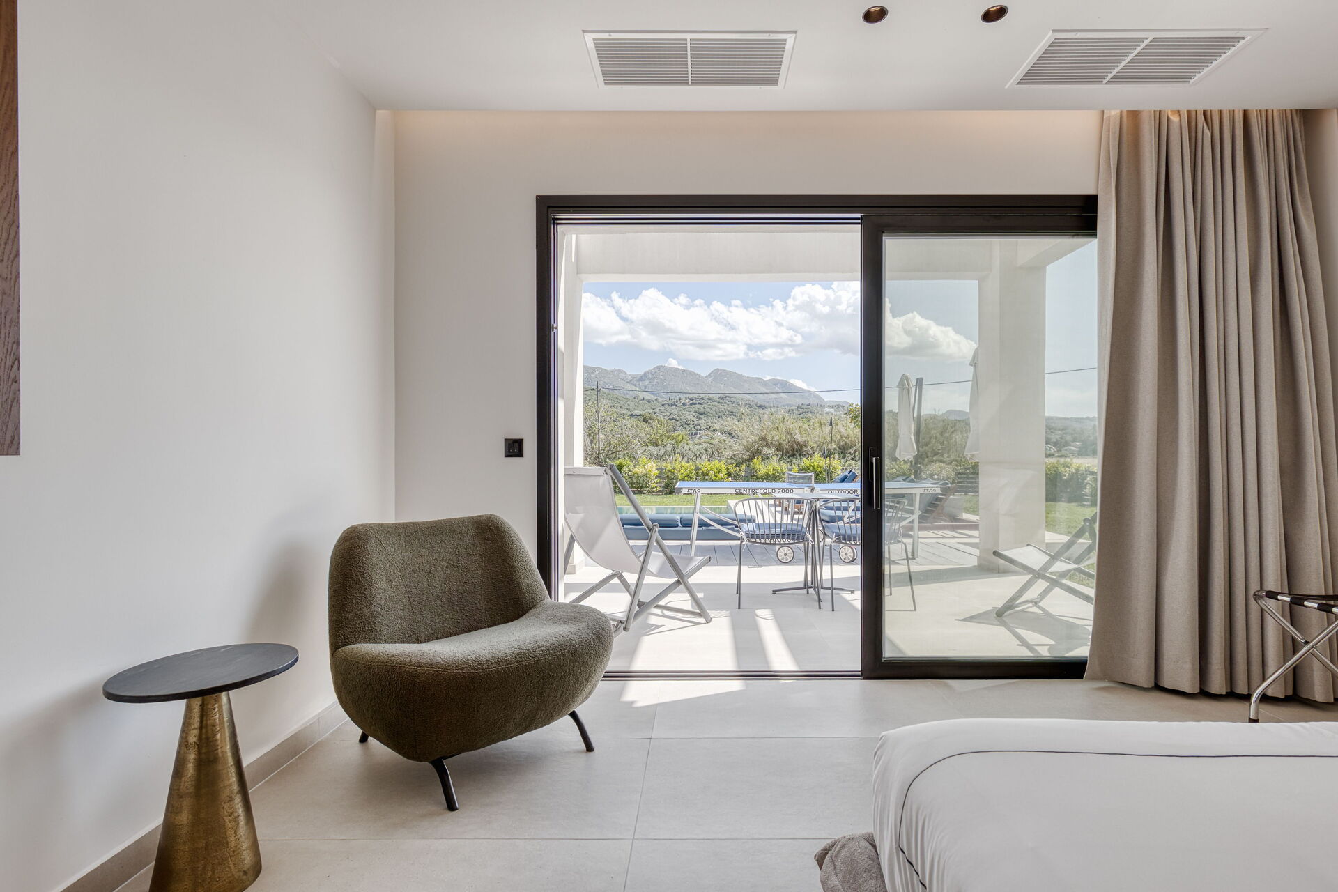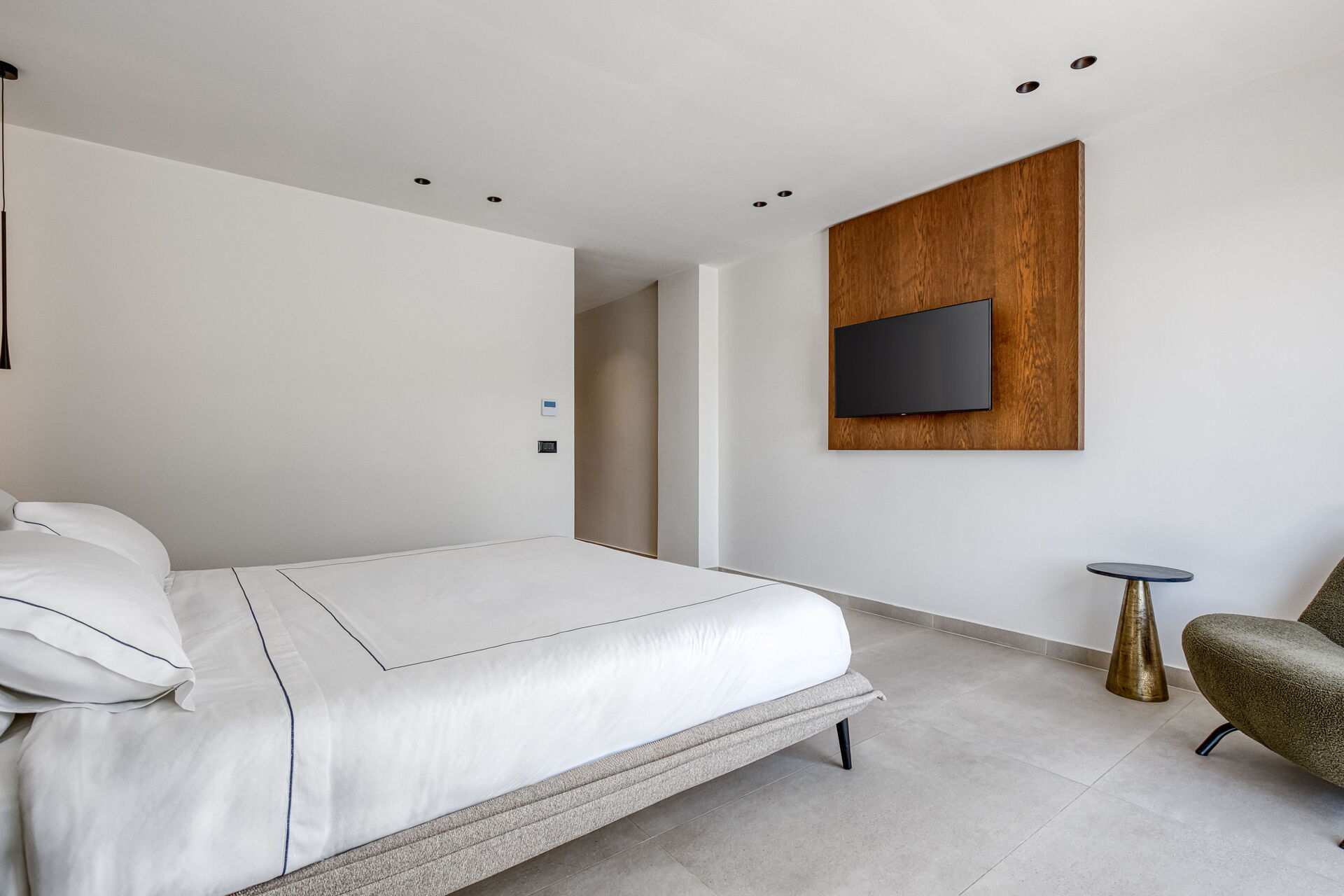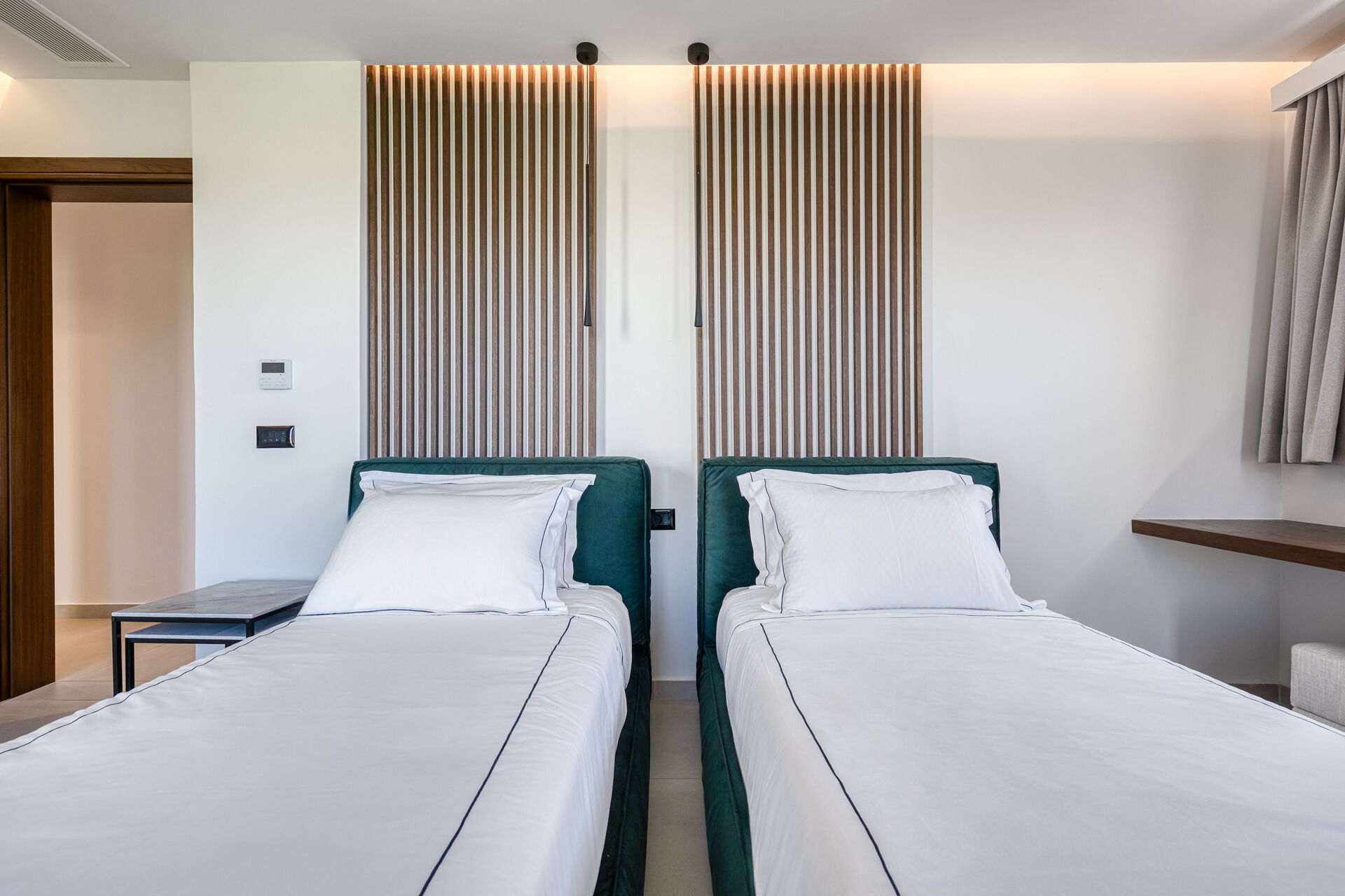 It is located on the northern part of the island, just tens of meters away from Almyros beach. The villa has 5 bedrooms and modern, luxurious interiors equipped with all amenities. It can accommodate up to 10 people.
