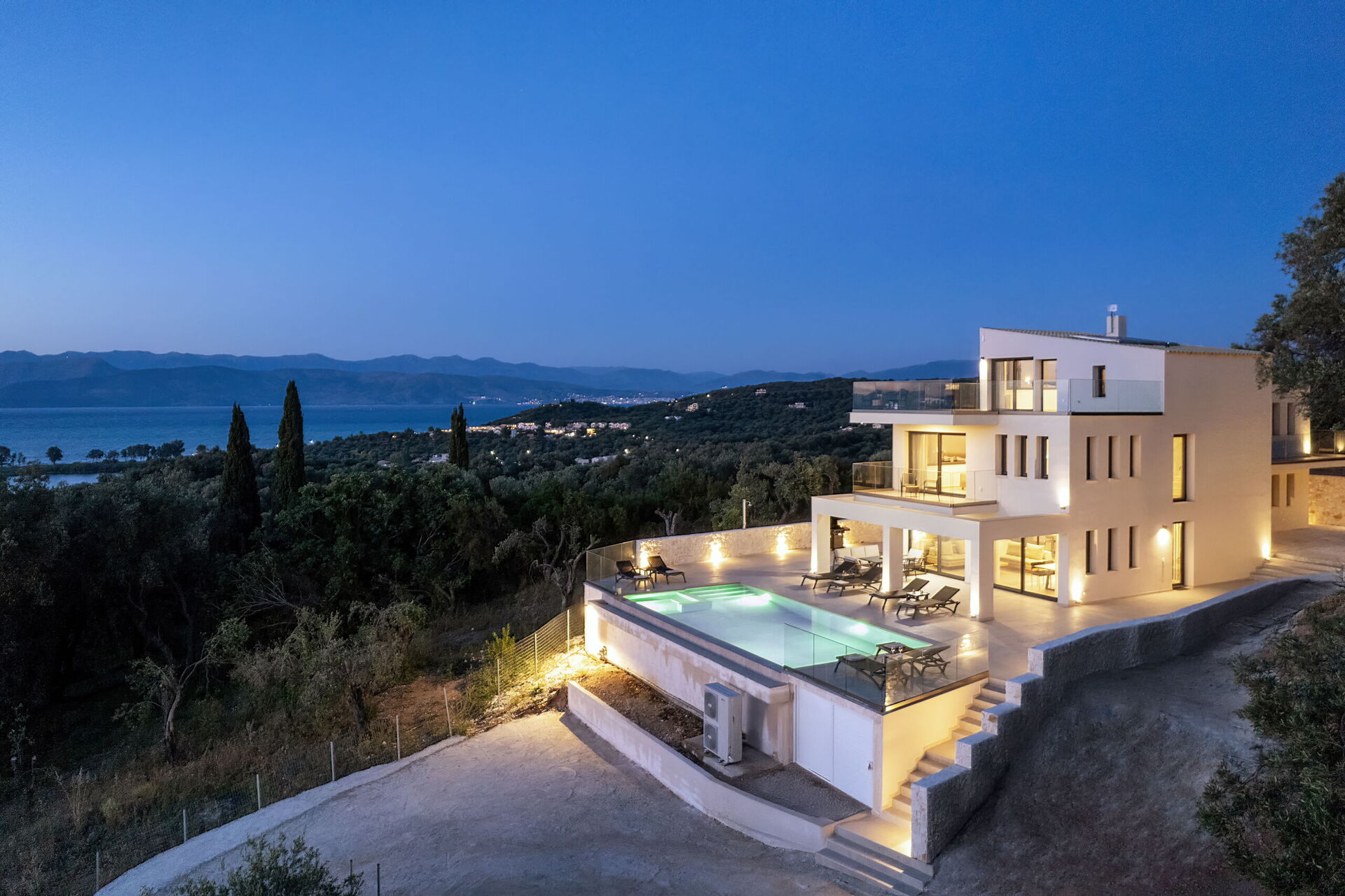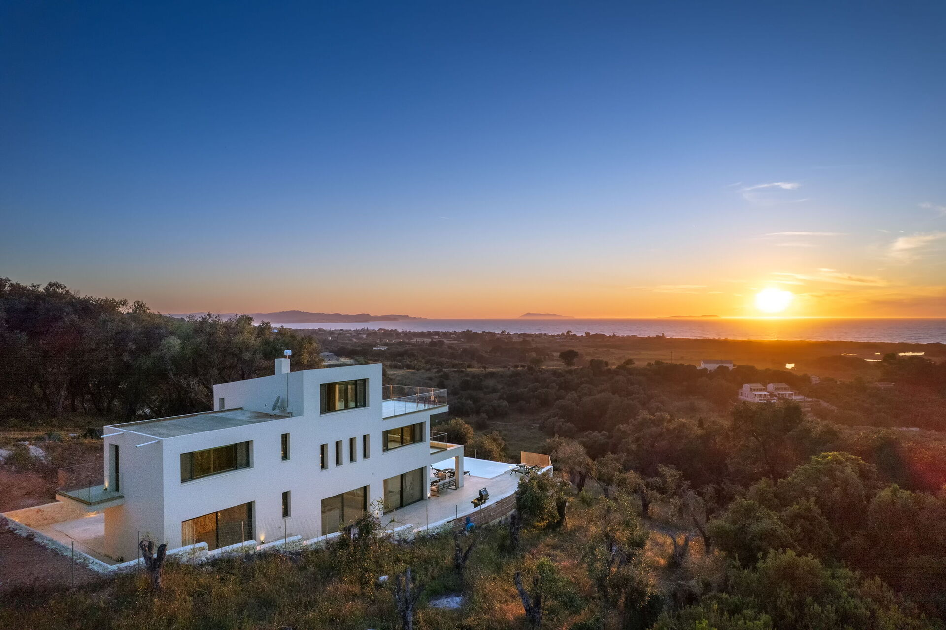 Construction was completed in March 2025, revealing one of the most beautiful modern villas on the northern coast of Corfu: its boasts fantastic views of the sea and sunset. Admire the beautiful countryside from the villa terraces and the scenic pool. Take advantage of all of the villa’s ultra modern amenities.