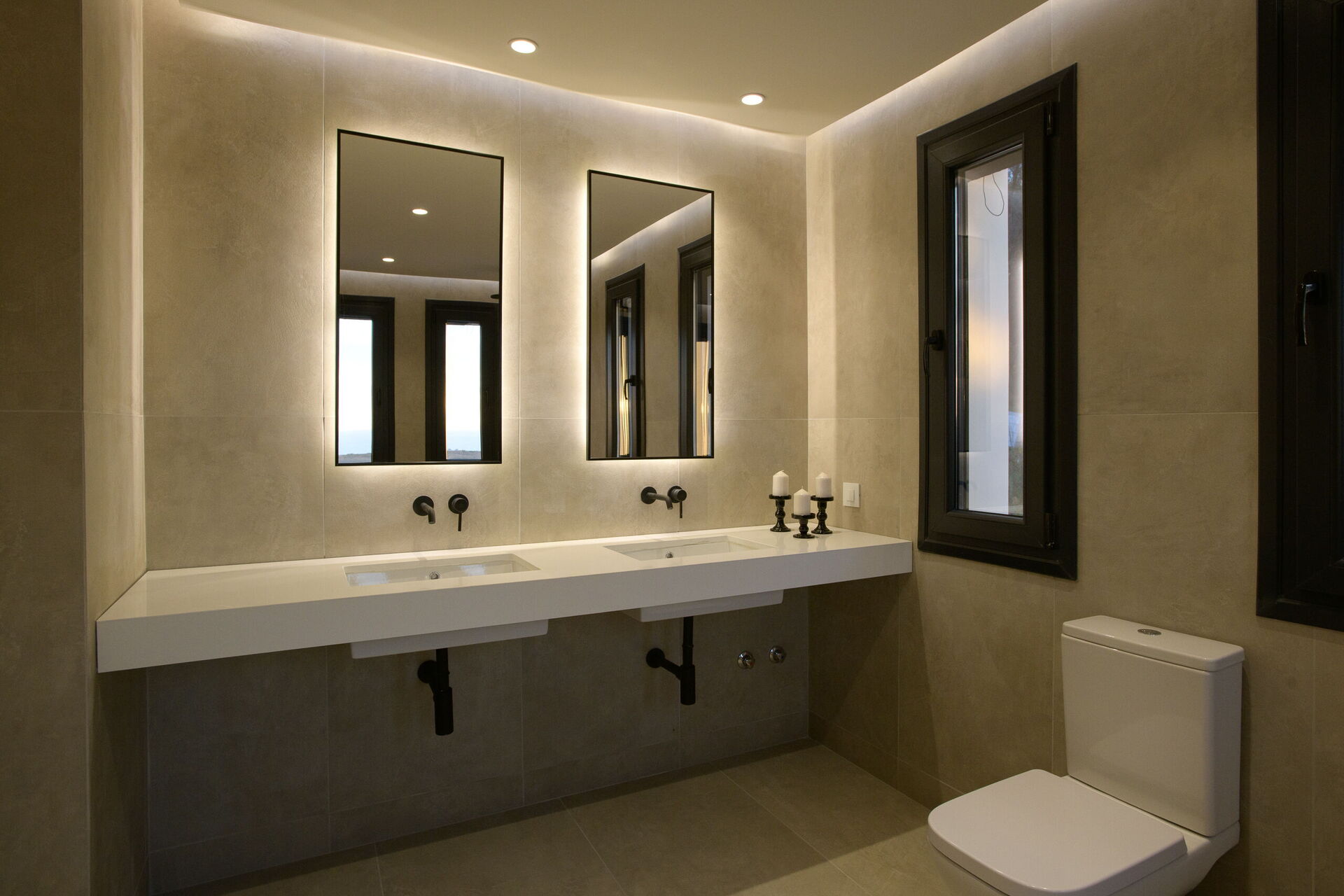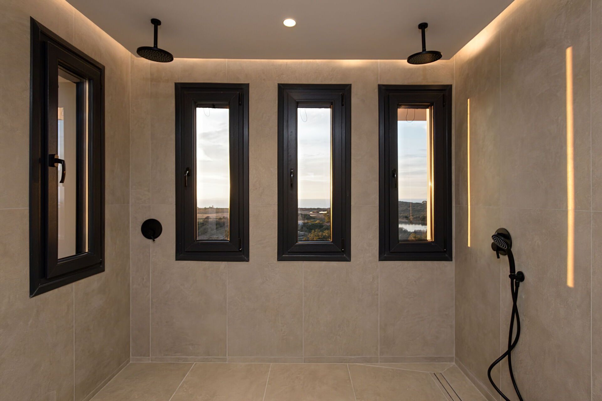 First floor: large double bedroom with a bright private bathroom with double sinks and double showers, scenic private terrace, double bedroom with a private bathroom with shower