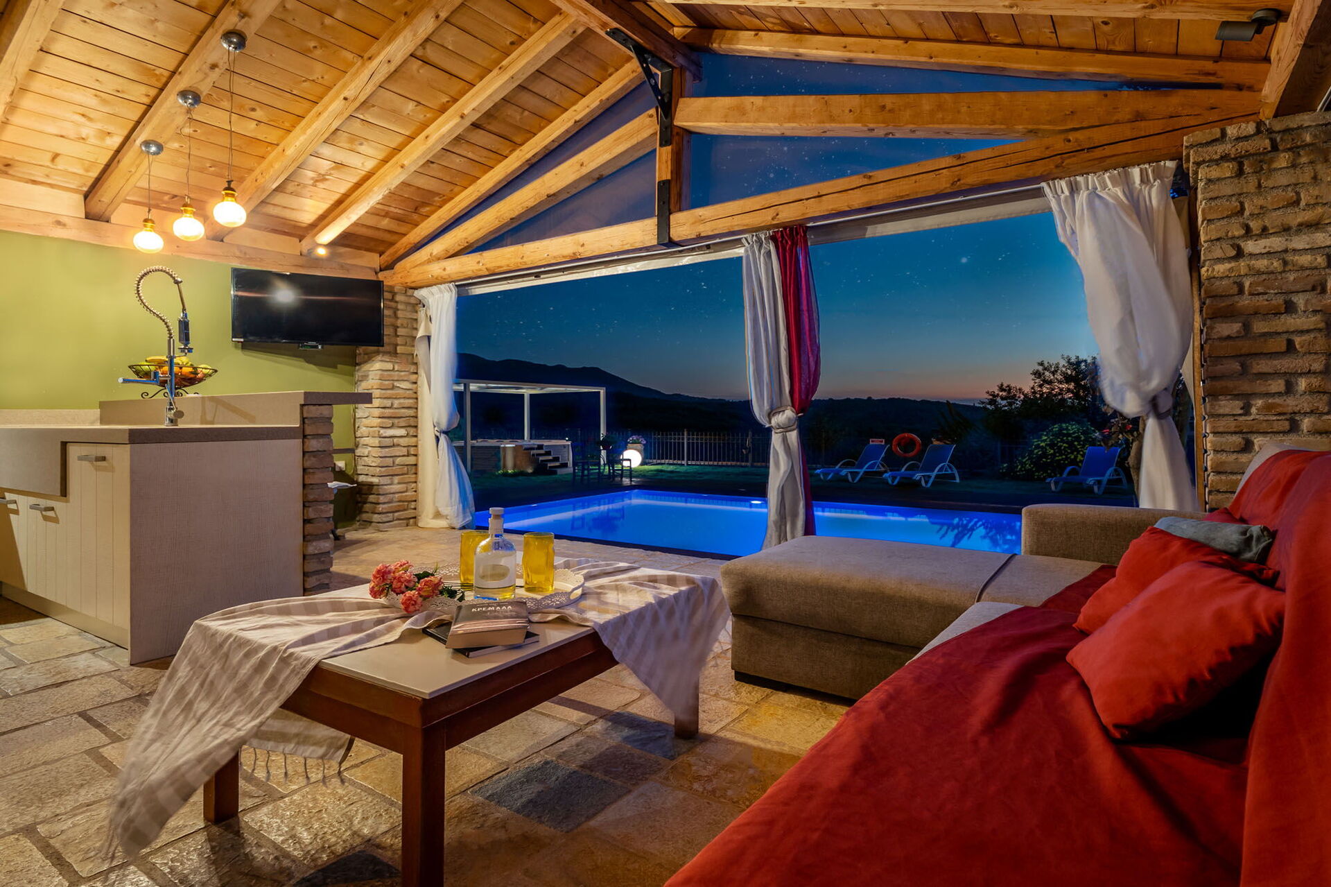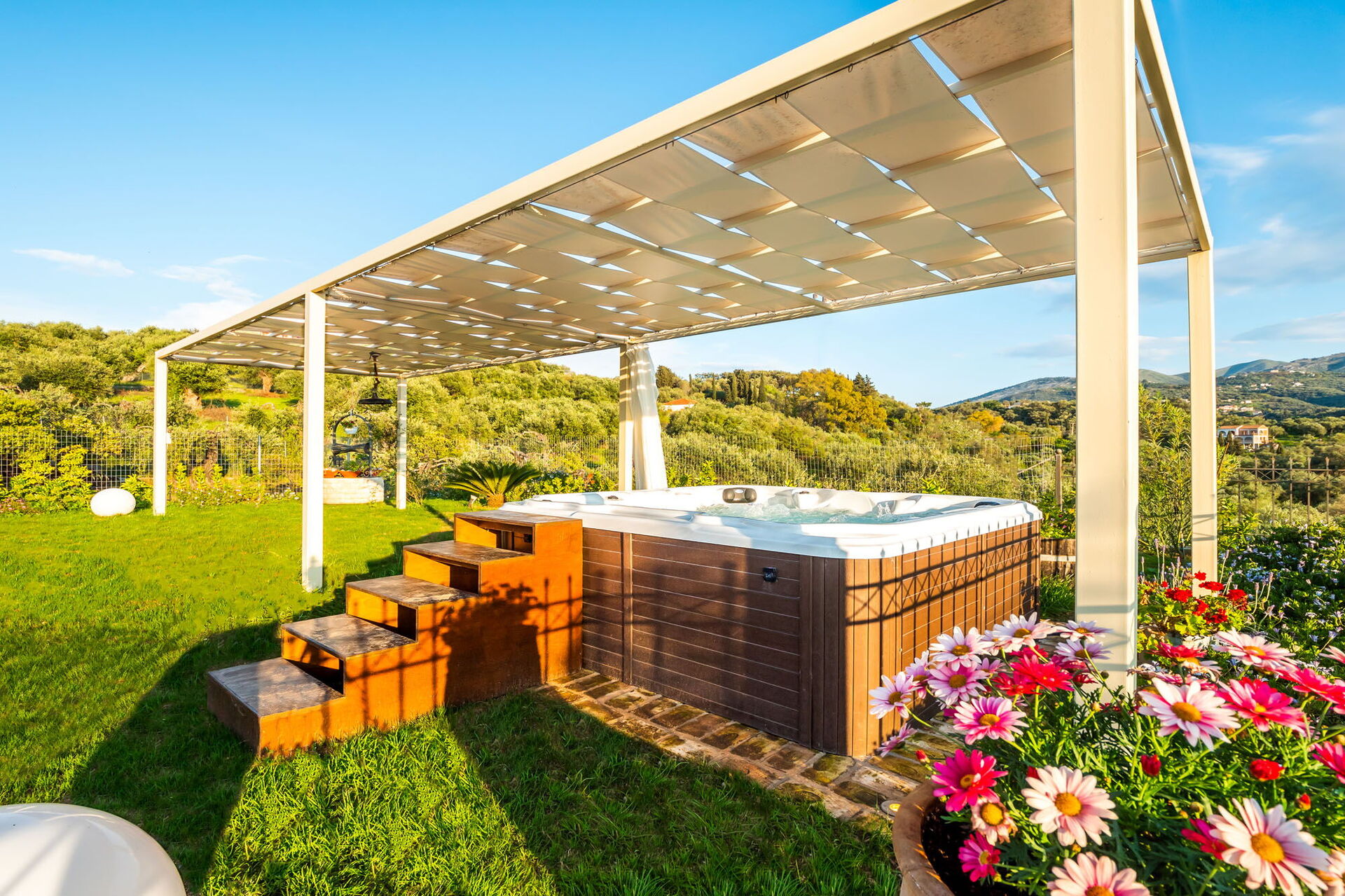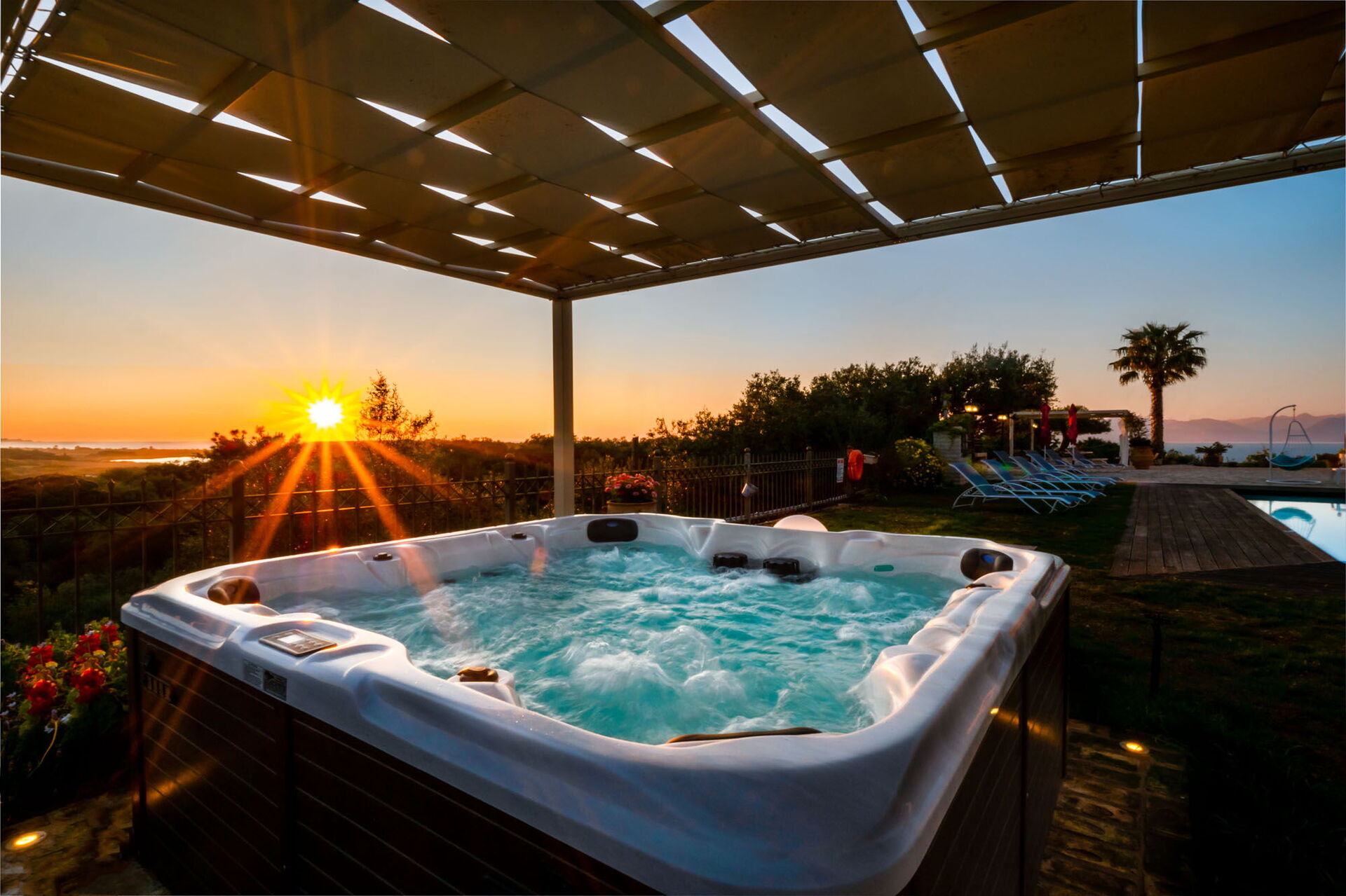 A beautiful pool and spectacular 7-seat hot tub 7 sedute are at guests’ esclusive disposal. Also private are the outdoor spaces, and a spectacular external room with a kitchen and large dining area facing the pool and garden. This room can be opened during sunny days, or closed to protect from wind and brisker temperatures.