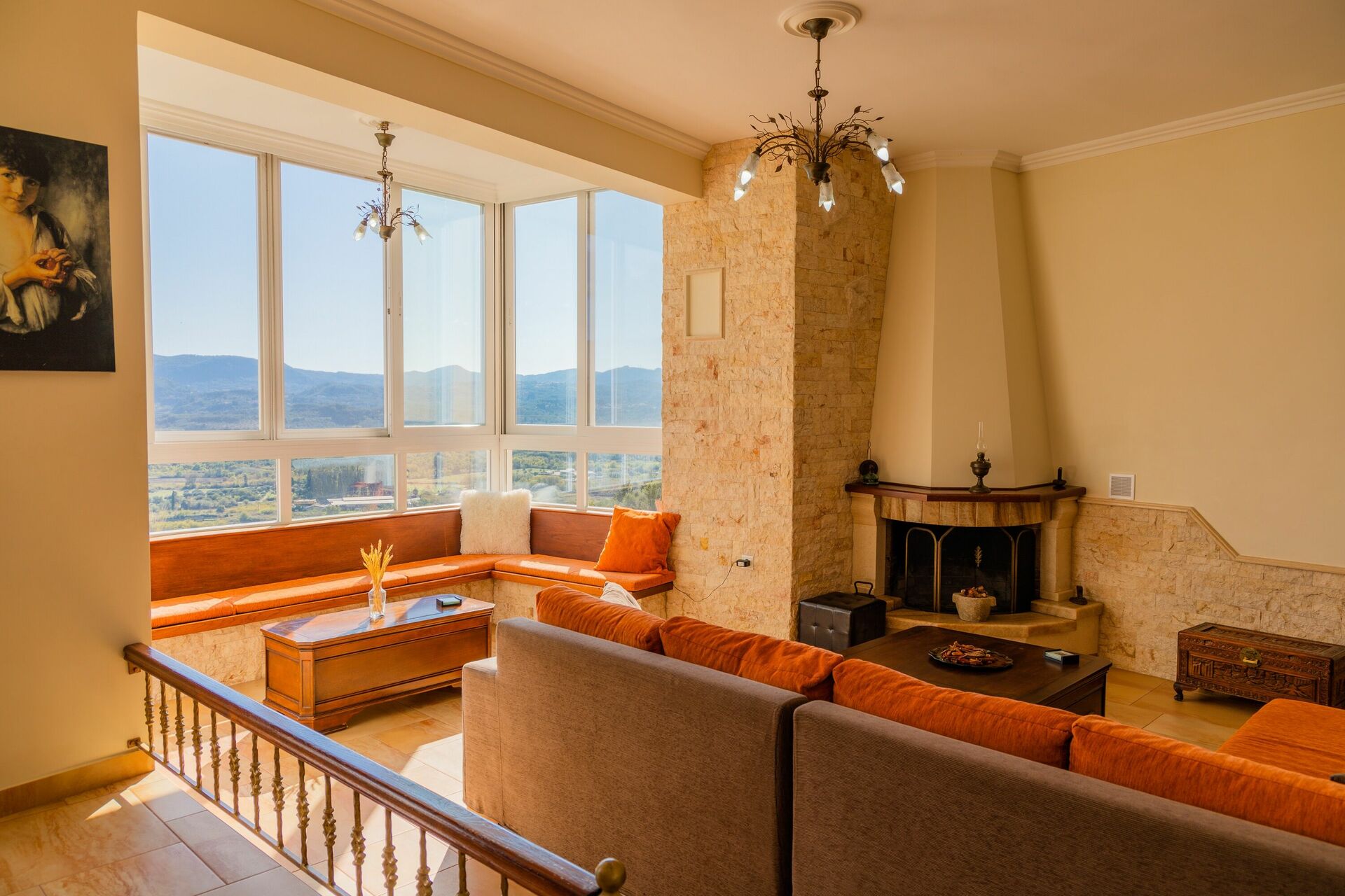 The views are outstanding and it’s a joy to sit on the balcony or in the window seat. It really is so peaceful. Lots of space and comfortable rooms. Thoughtful storage and fully equipped kitchen. The dishwasher is a table top one - felt a waste of electricity to run it so we washed old style!! Would be superb house for a larger family gathering. So much room so nobody is on top of anyone. The village was a bit remote from the areas we enjoyed to spend our time, but it’s a peaceful place to return to at the end of the day and the villagers are friendly and welcoming. Fanis is a lovely host, happy to help in any way, can offer to source you meat or fish and even let us try his own red wine from his vineyard. The village car park is safe for parking rather than using the space outside the villa - unless you rent a tiny car or have full insurance to limit the risk of any knocks. The road is narrow as expected and the locals are so used to them dashing up and down but for visitors they take a little getting used to. There is a village mini shop for breads, milk and juices etc. Doukades is not too far away and has some lovely restaurants. Agios Gordios was our favourite beach. So relaxing and friendly. I would recommend some seat pads for the outside dining table. We’re tall and even for us the chairs are too low for the table height. lots to like about this villa - We had a great stay here. Fanis is welcoming, warm and friendly. Helpful and delightful to his guests.