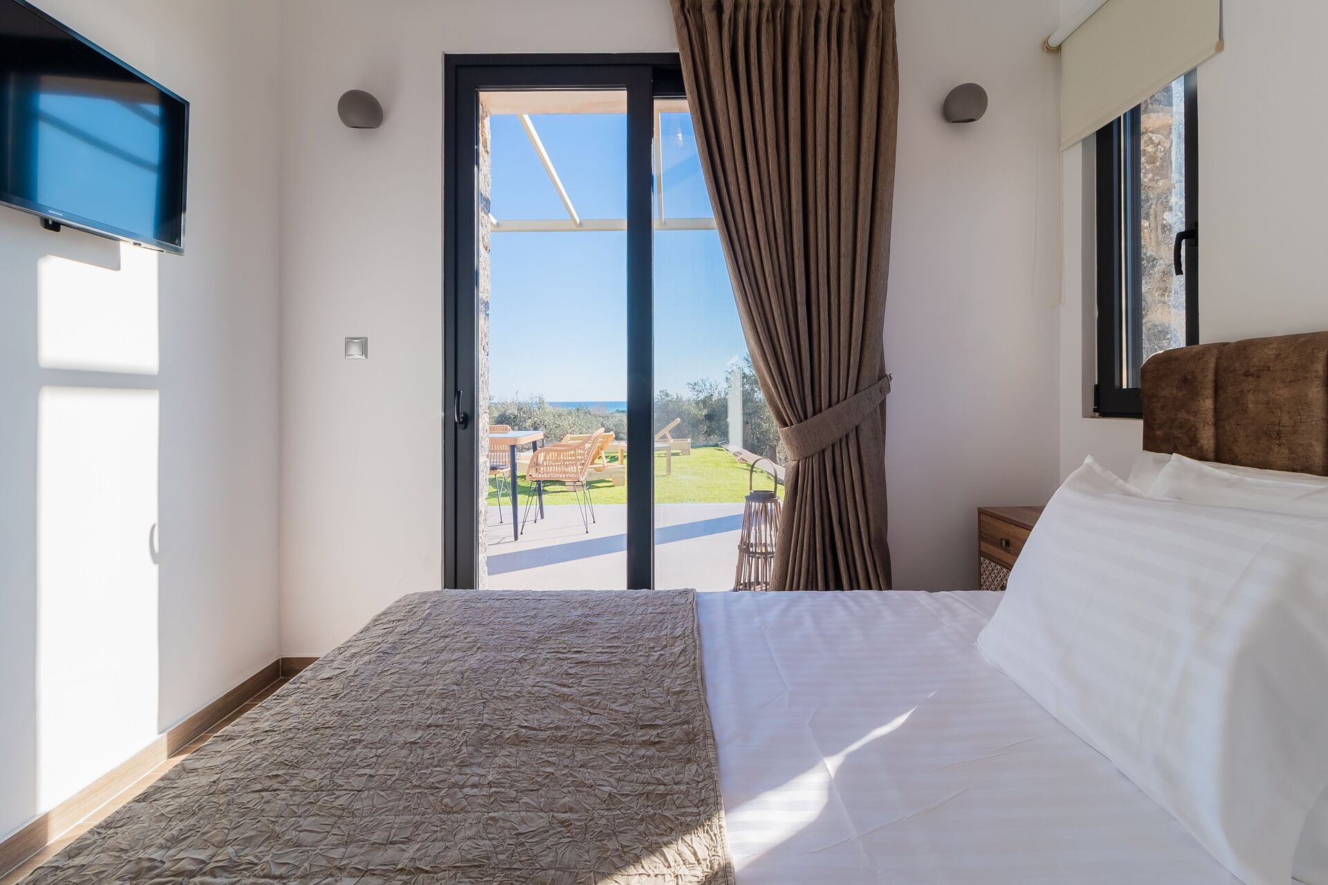 Tastefully decorated modern villa built with natural materials, located in a peaceful olive grove overlooking the sea. Great local tavernas and beaches. Short drive to village and larger towns. Warm, friendly, generous hosts who went above and beyond to make us feel welcome.