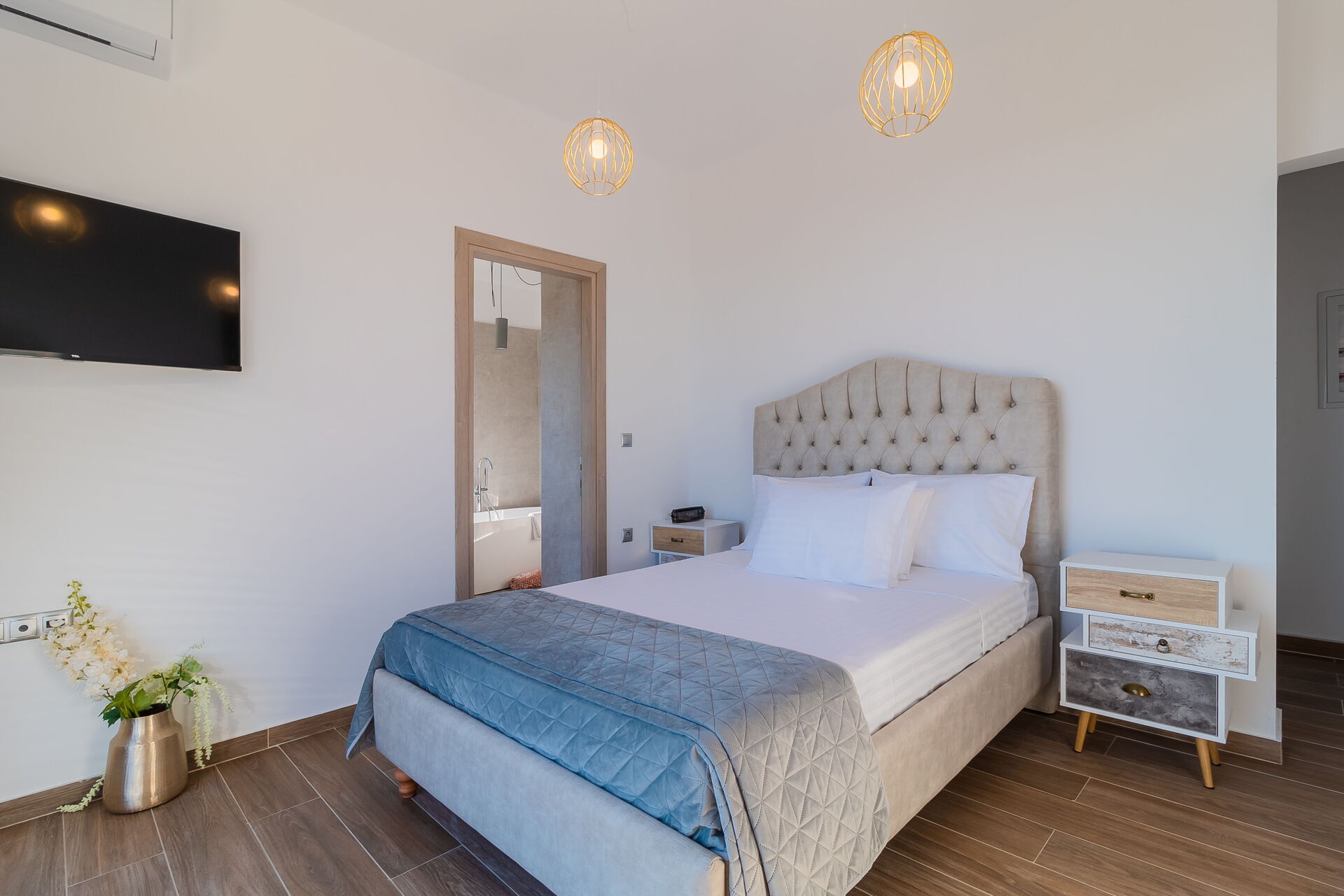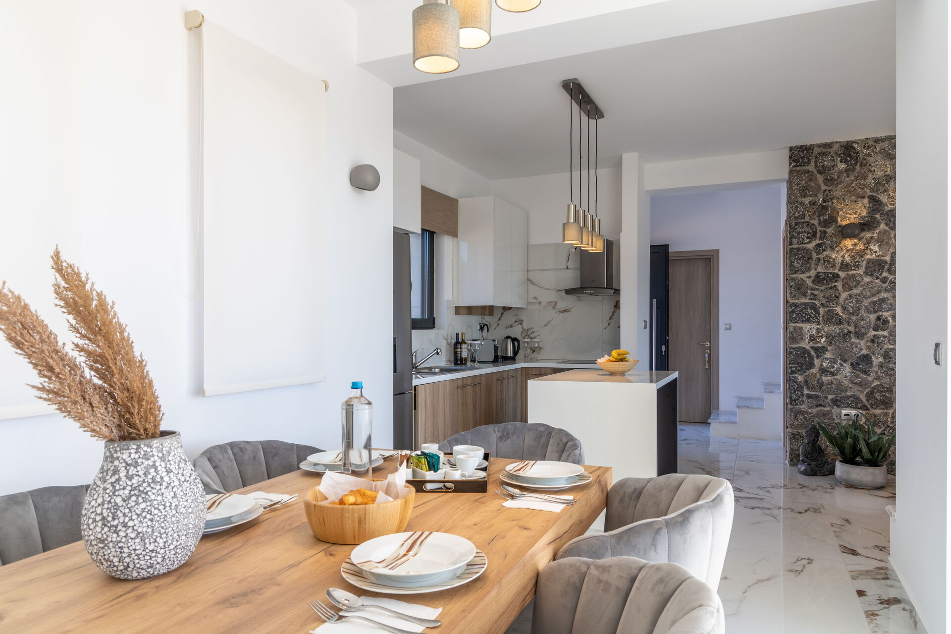 I have given 5 stars for Greek villas before but this one would deserve even more if I could. It has everything you can ask for, 3 luxurious designed rooms with a bathroom each, nice sea view and a wonderful outdoor space. The kitchen is equipped with everything you need including salt, pepper and other things for cooking.