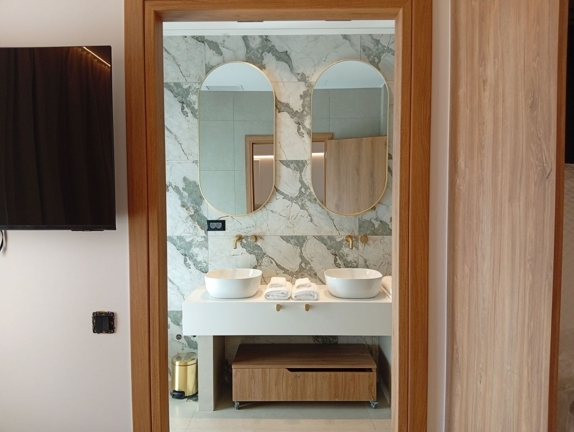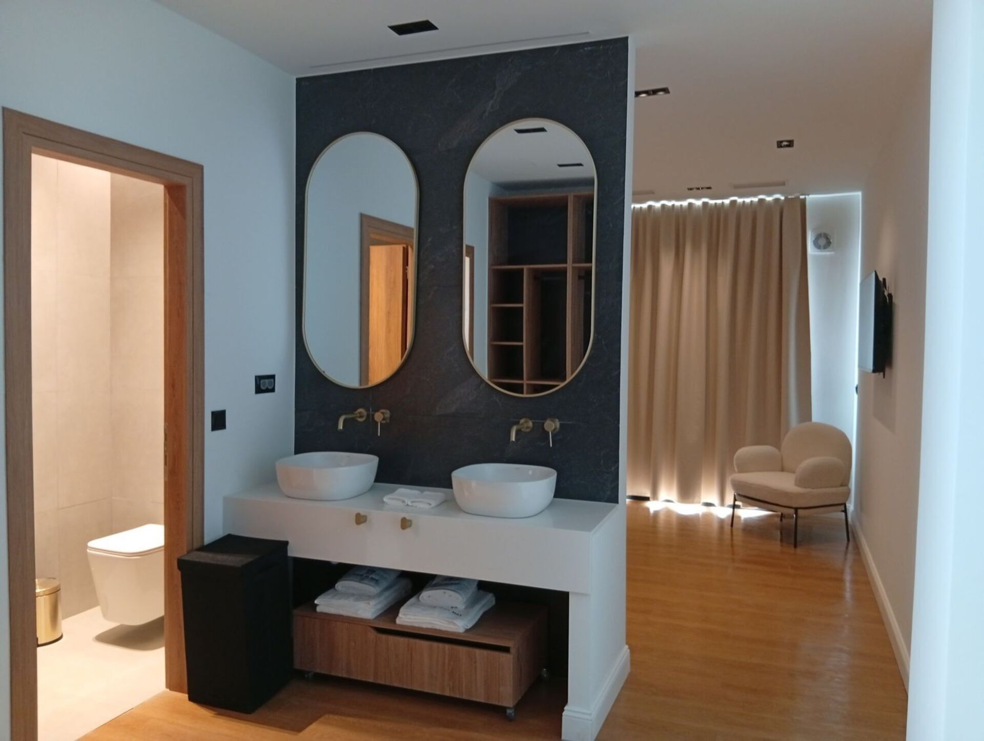 The panoramic outdoor areas offer numerous common areas and allow guests to spend a pleasant stay with family or friends, relaxing in the large pool area or on the magnificent equipped rooftop with a kitchen and a fantastic outdoor dining area; a panoramic view stretching to the sea and fantastic sunsets will be the backdrop for unforgettable moments during your holiday in Greece.