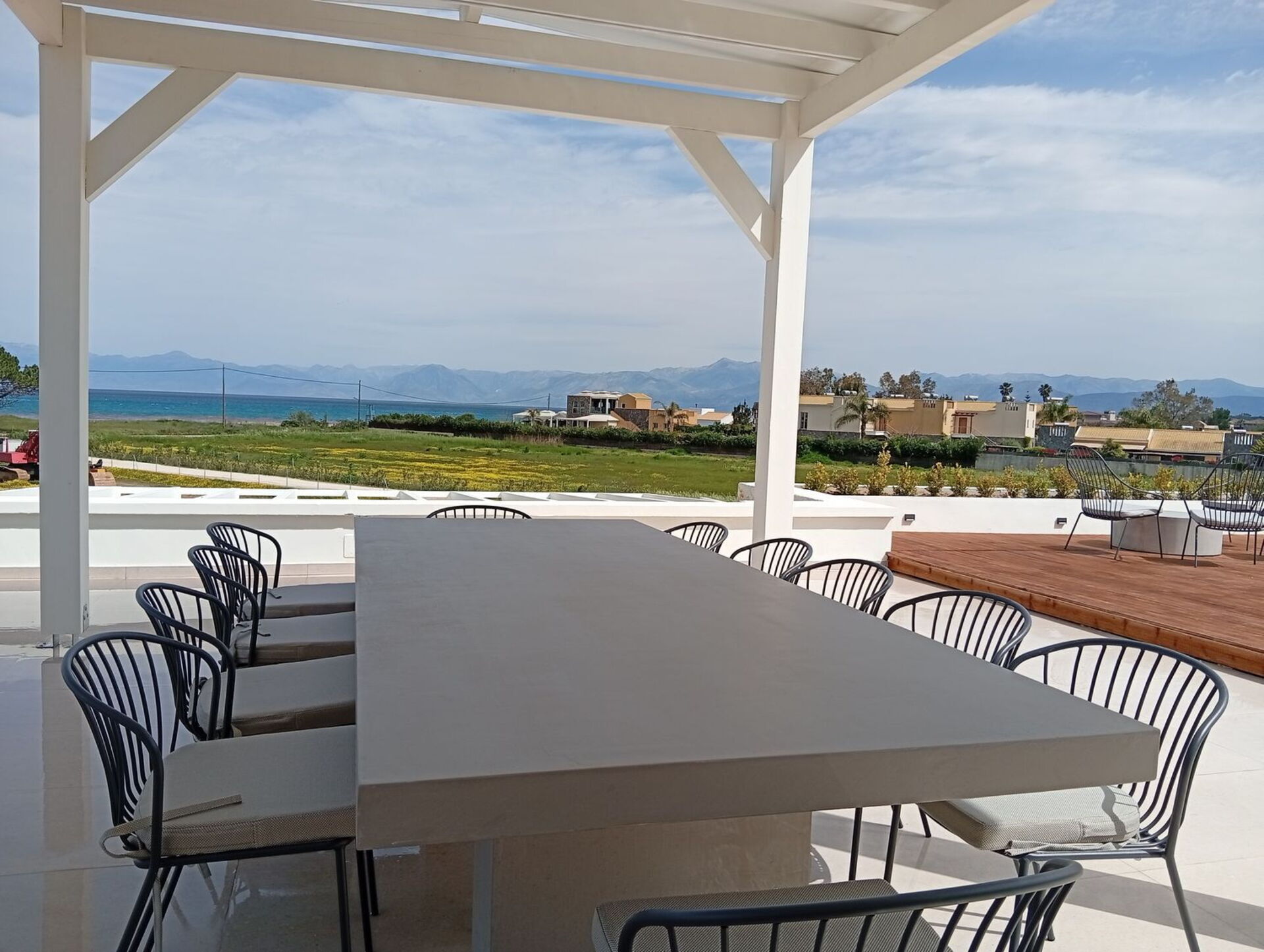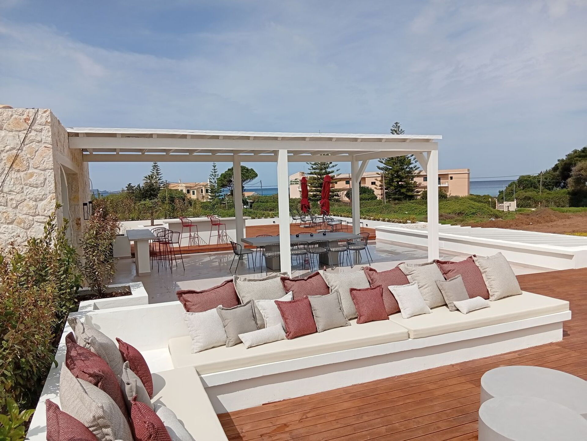The wonderful swimming pool and the panoramic equipped rooftop are the highlight of this luxury villa in Corfu: on the large first-floor terrace, you will have an exclusive environment with sofas, plants, an equipped kitchen, and a large gazebo housing a table for your dinners under the stars.