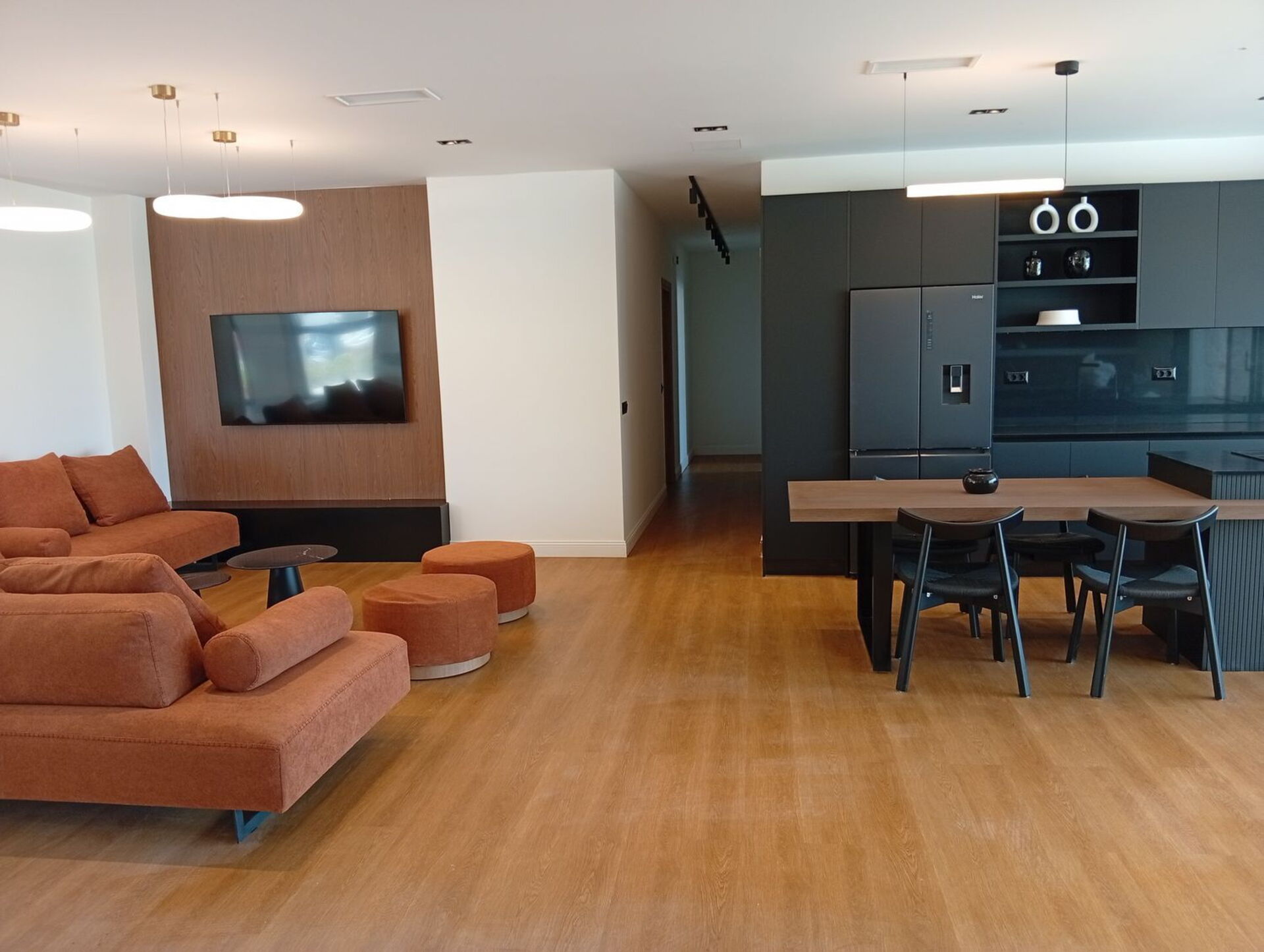 - large and bright living area consisting of a lounge with smart TV, dining area and well-equipped kitchen (oven, freezer, fridge, dishwasher, wine cooler, espresso coffee machine, kettle, toaster)