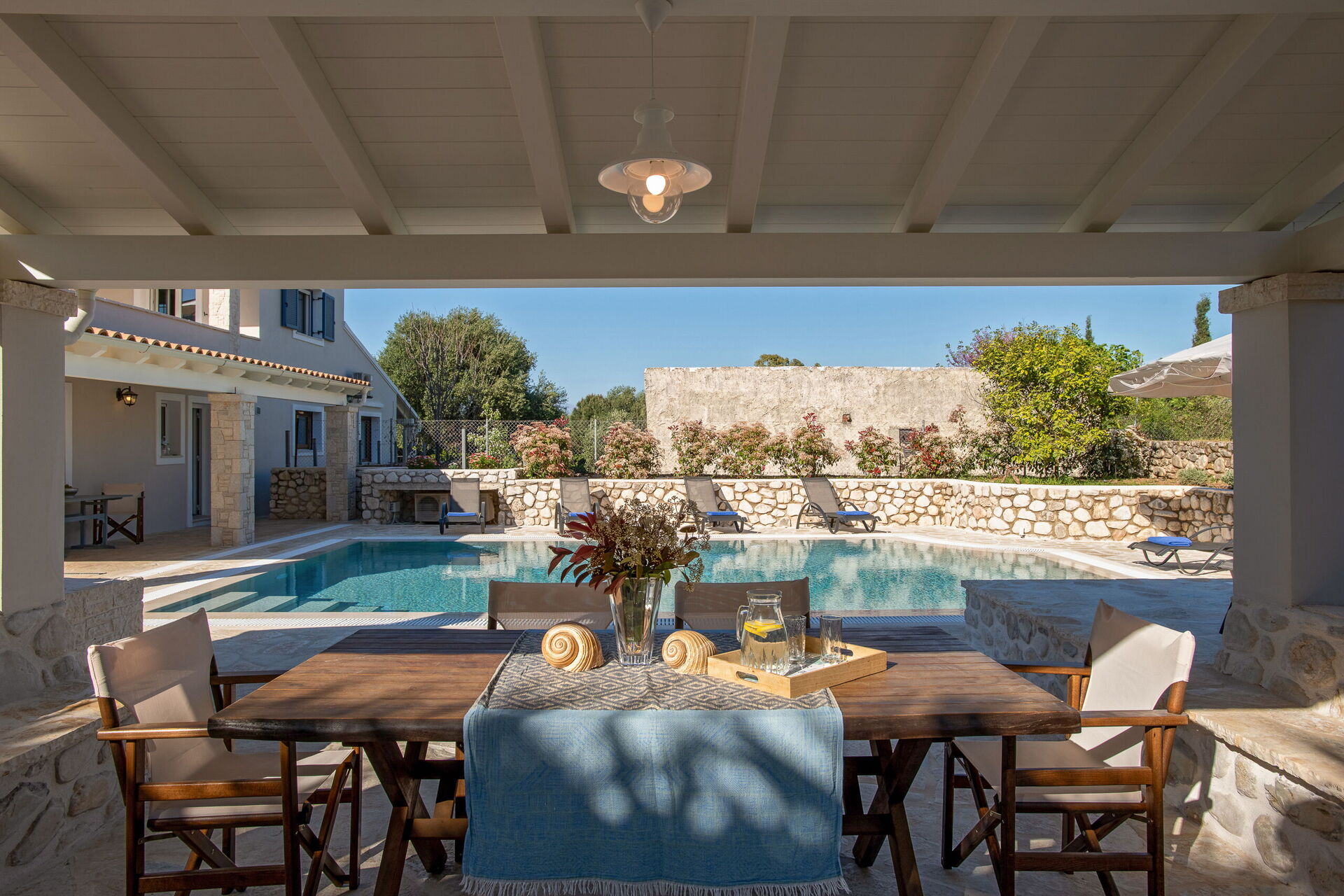 A lovely spacious, luxury villa about 10 minutes walk from a beach and restaurant. Very clean and well maintained inside and out. Nicely set back from the road with just two other villas. Very secluded garden and amazing pool. Quiet. About twenty minutes walk from Kassiopi with its good selection of shops and restaurants. Eleni was hugely helpful and an excellent housekeeper for the property. We saw her several times, but she was in no way intrusive.