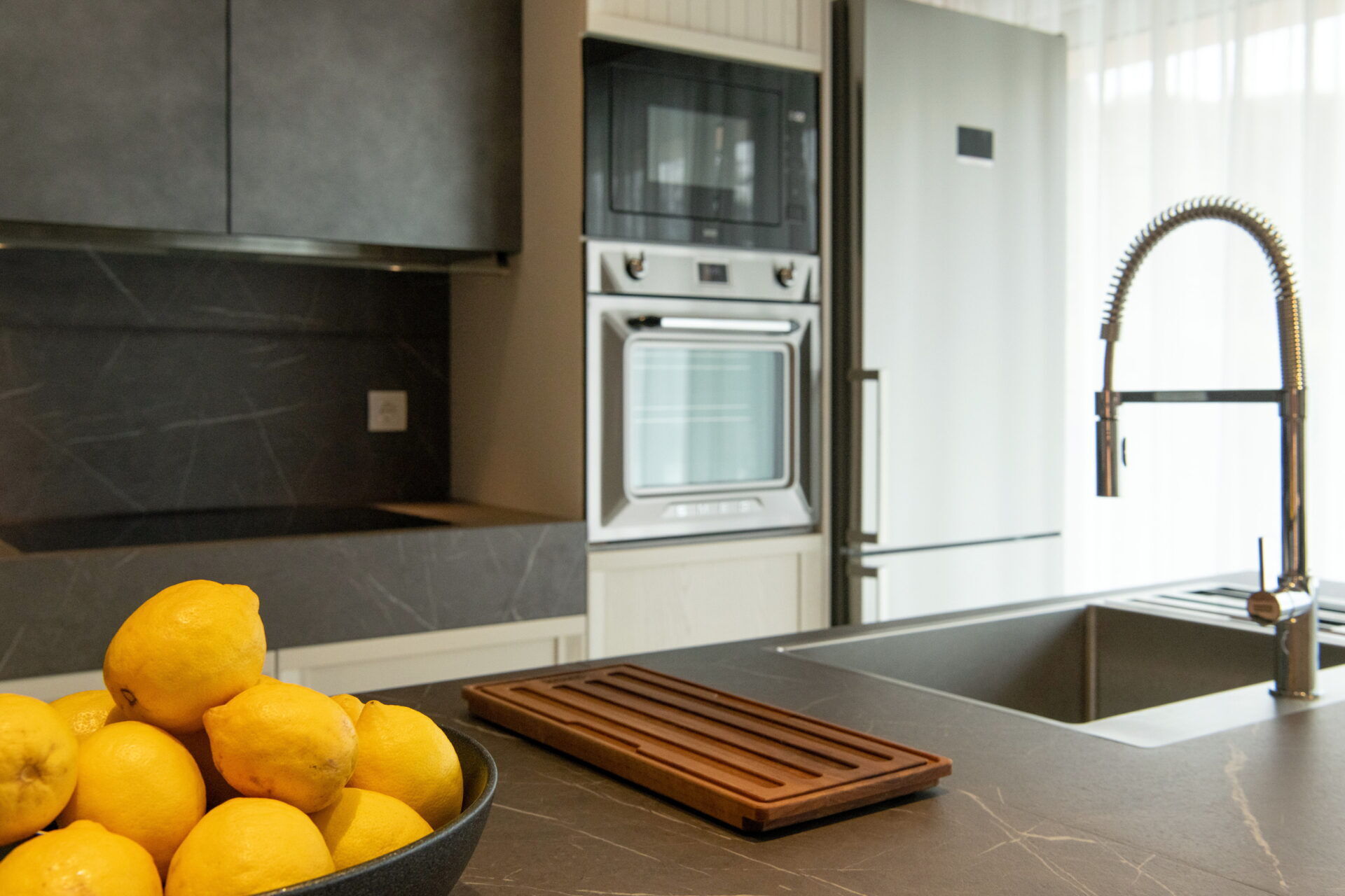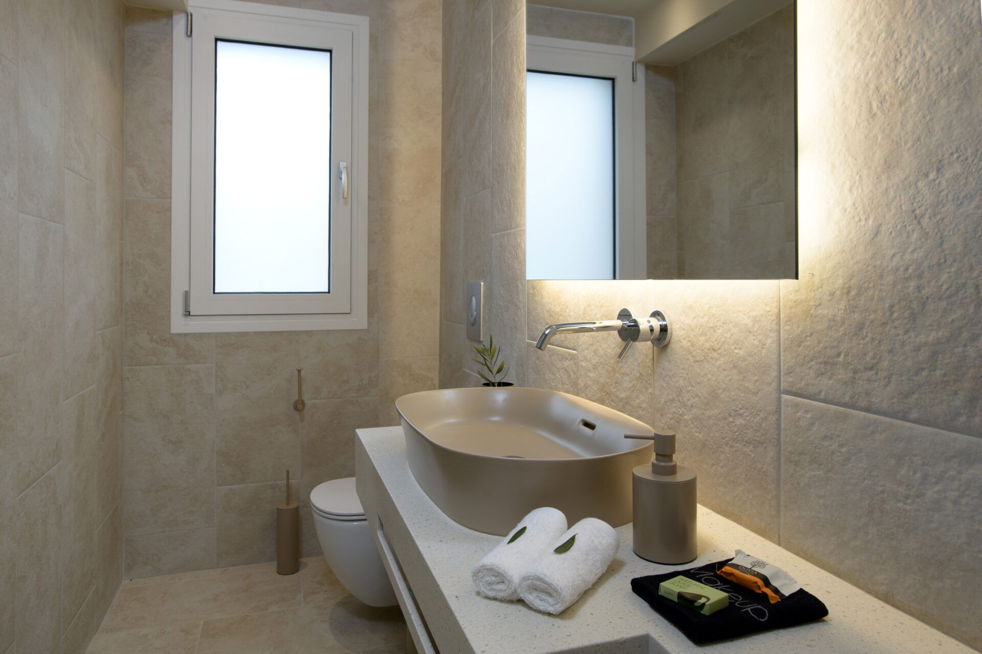 Ground floor: bright living area made up of a living room (smart tv) with a dining area and kitchen (cooktop, oven, freezer, dishwasher, microwave, coffee maker, toaster), wc, double bedroom with a private bathroom with shower, double bedroom (can be converted upon request into a bedroom with 2 single beds) with a private bathroom with shower.