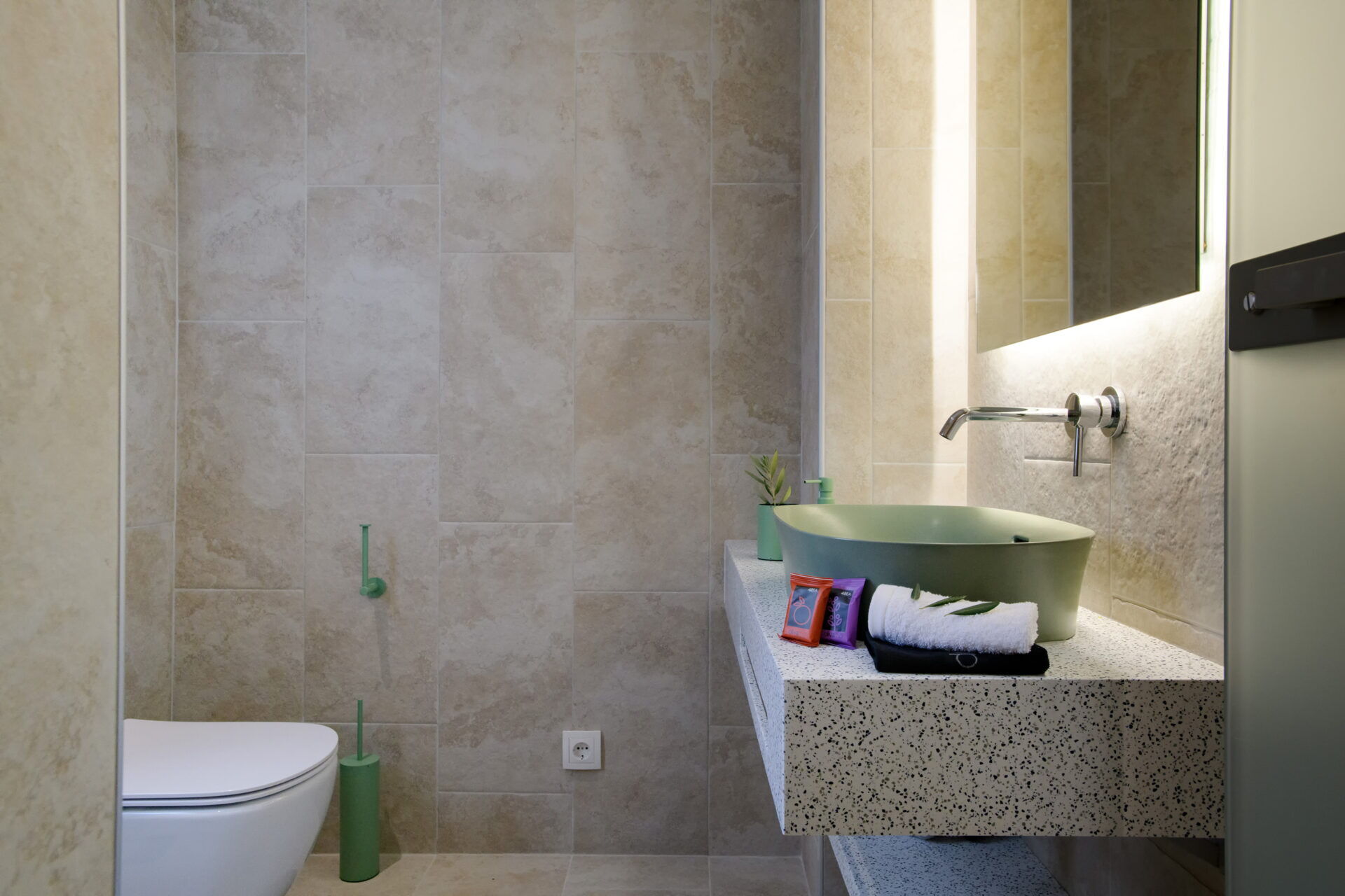 First floor: double bedroom with a private bathroom with shower, double bedroom (can be converted upon request into a bedroom with 2 single beds) with a private bathroom with shower.