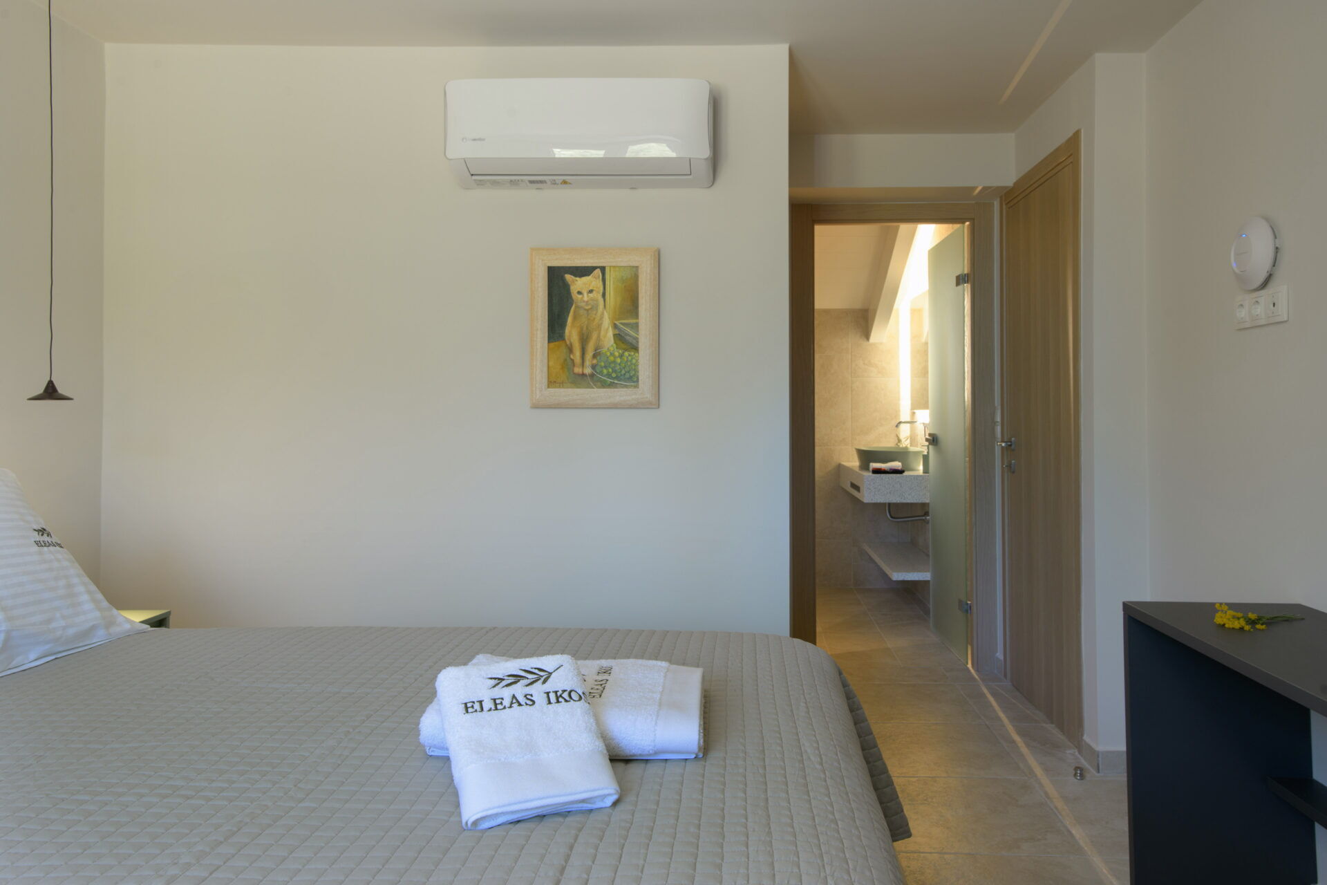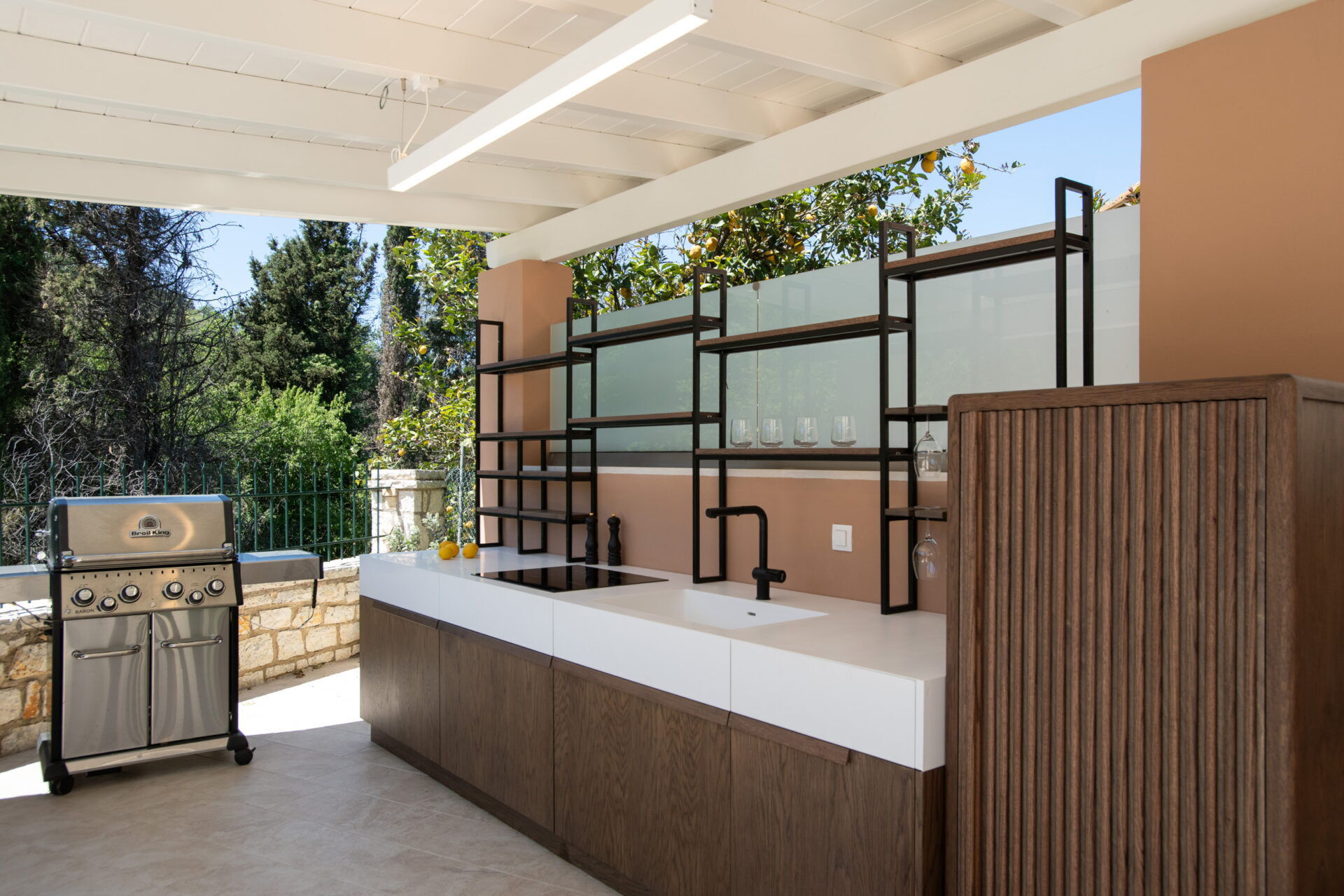 On the grounds, Villa Eleas Ikos offers an area with an outdoor kitchen and barbecue where you can eat and relax outside; a stunning pool with panoramic views of the mountains and surrounding countryside completes the property.