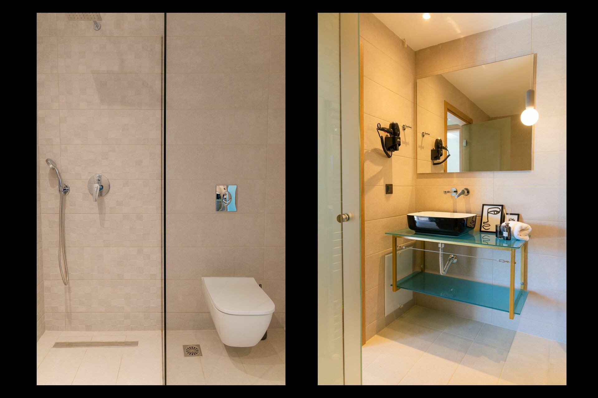 Ground floor: 2 double bedrooms, each with private bathroom with shower, and garden and pool access.