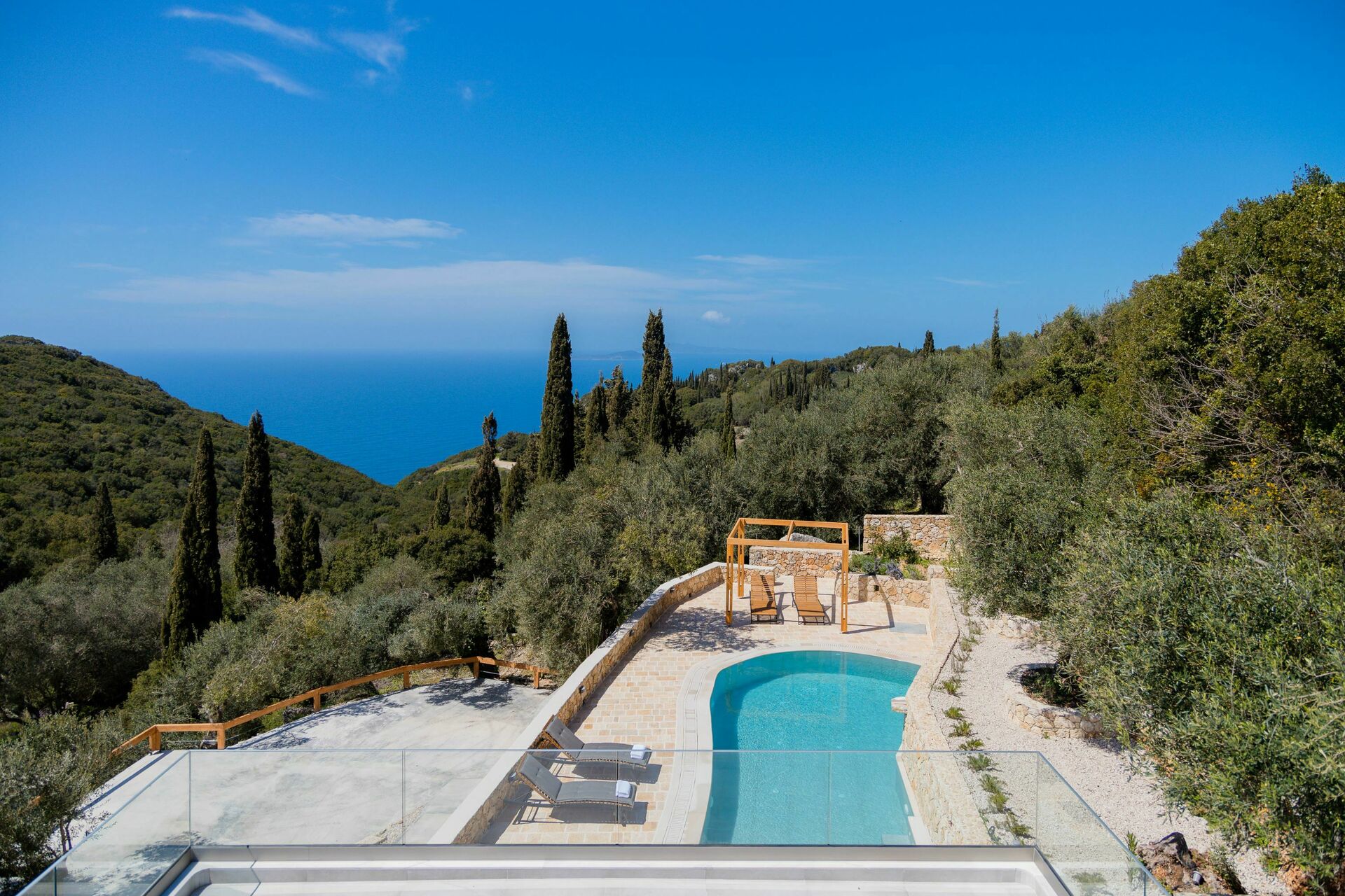 Is a brand new secluded villa with beautiful views over the mountains of Corfu, the surrounding sea and its islands. It is tastefully furnished and has a beautiful pool area. Our host was very attentive and whenever we had any issues, she tended to our needs right away. The rooms are comfortable and provide plenty of privacy. Since the house is quite remote, a car is necessary and being a good driver doesn’t hurt either, given the extremely windy roads. Highly recommended overall.
