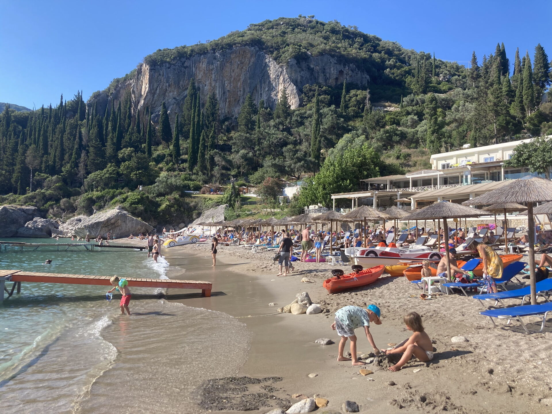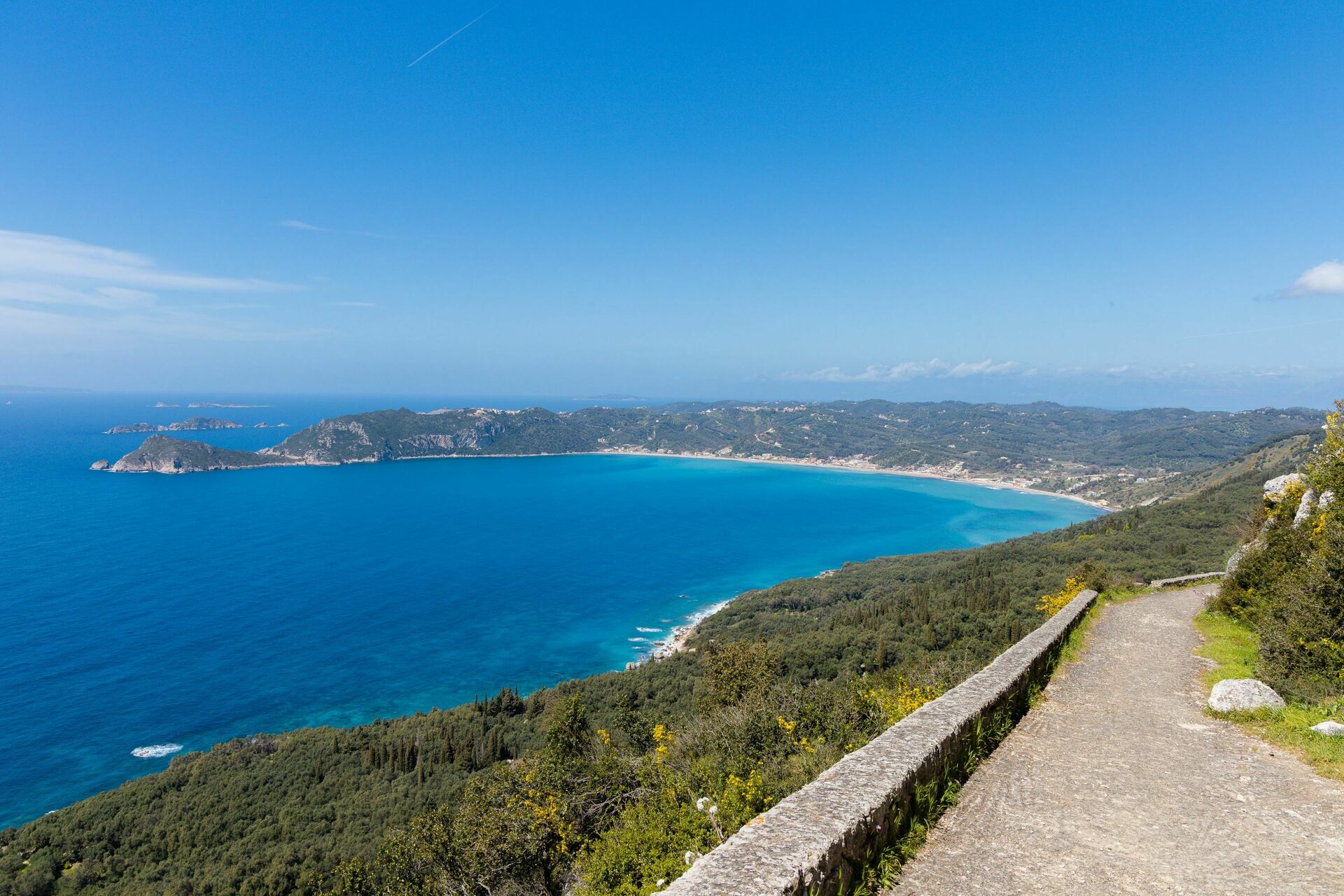 Distances: Makrades (tavernas and food shops) 400 meters away, Krini (more stores and restaurants) 1 km, Angelokastro Castle 2 km, Agios Giorgios (beach club facilities) 9 km, Palaiokastritsa 9 km, Corfu Town 25 km, airport 28 km, Kassiopi 40 km.