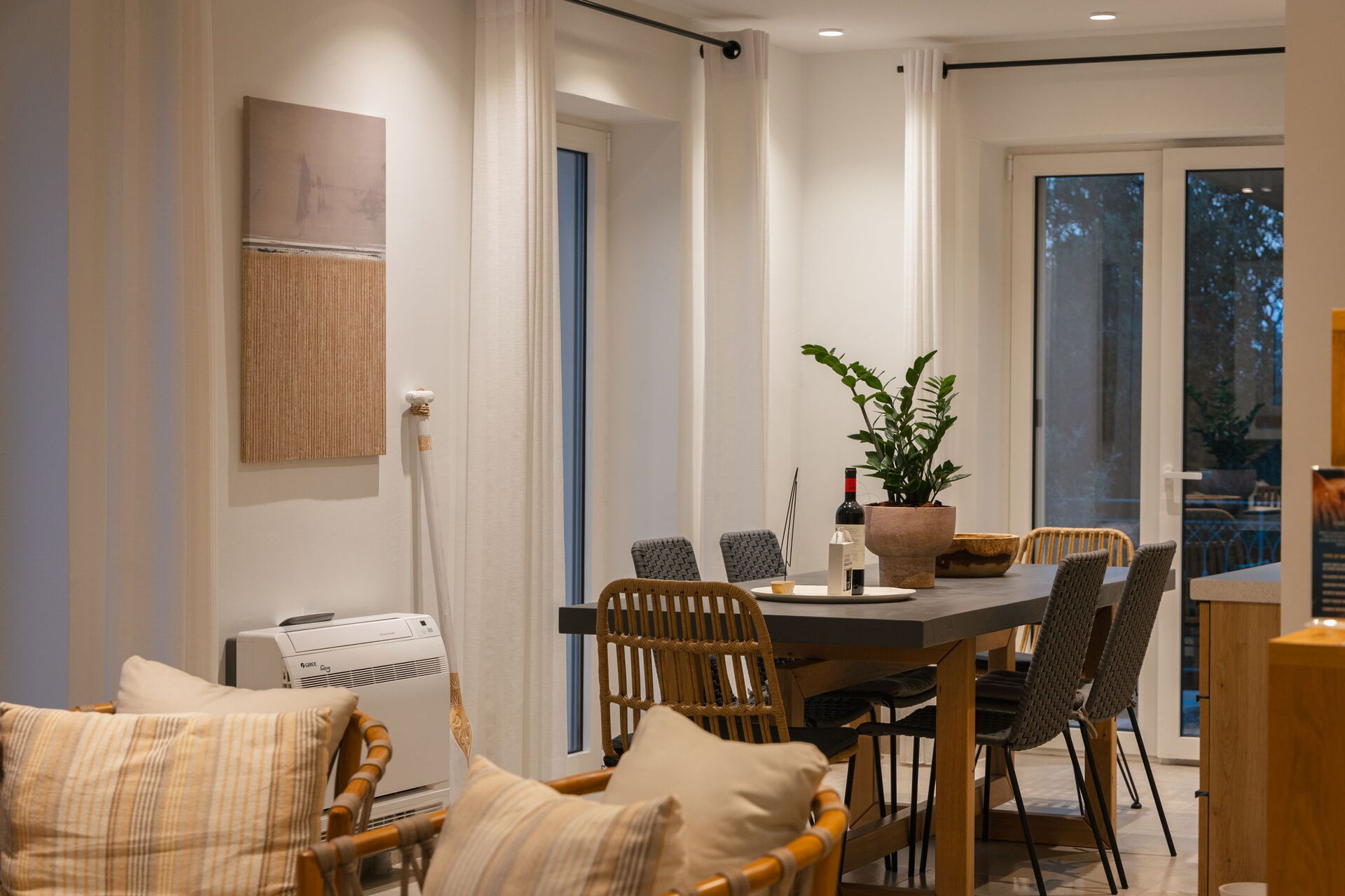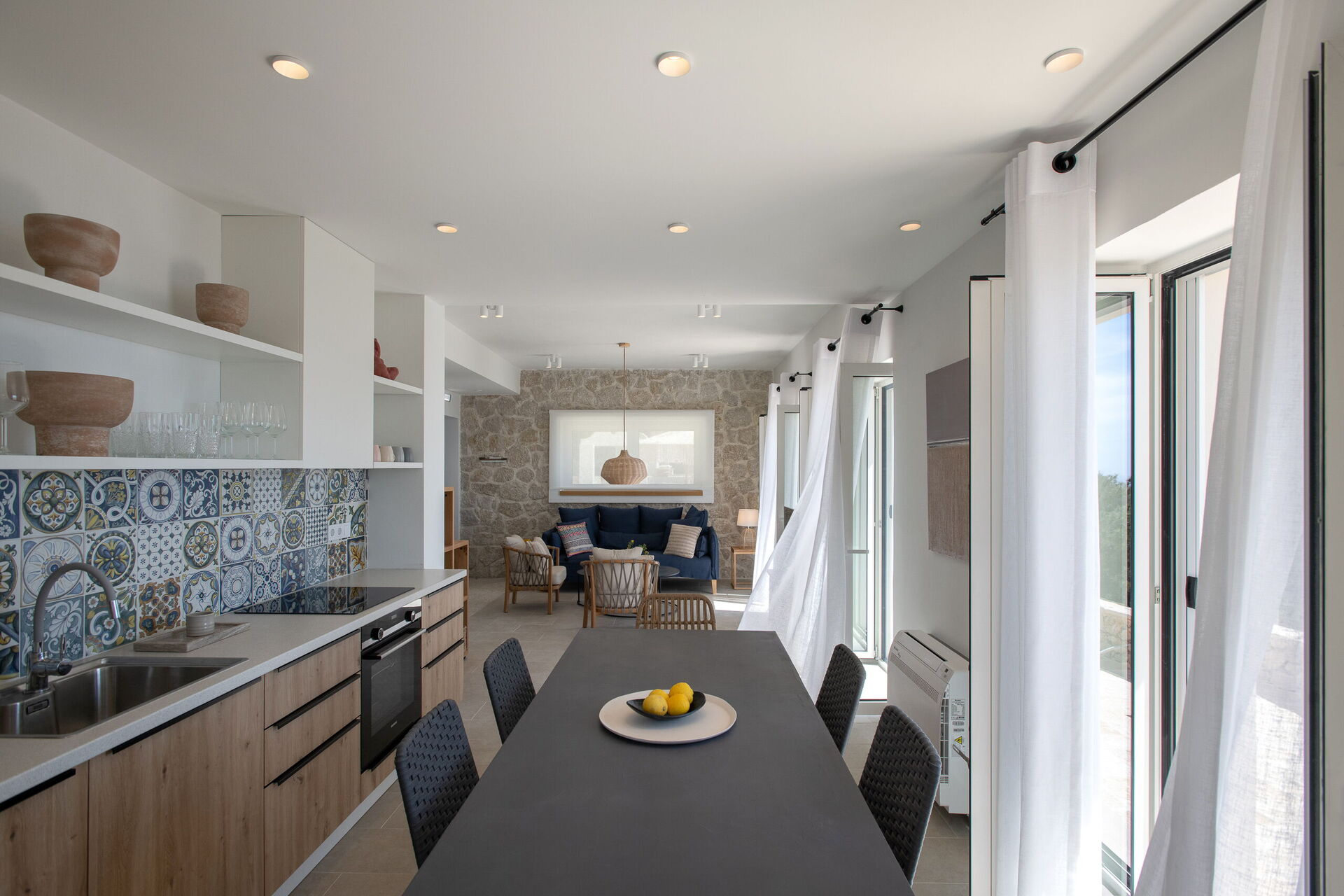 Large windows provide generous natural light and gorgeous views. Even on the hottest summer evenings, there is a refreshing sea breeze, and Villa Thea Mare Maistro offers everything you need for a marvelous seaside vacation on Corfu!