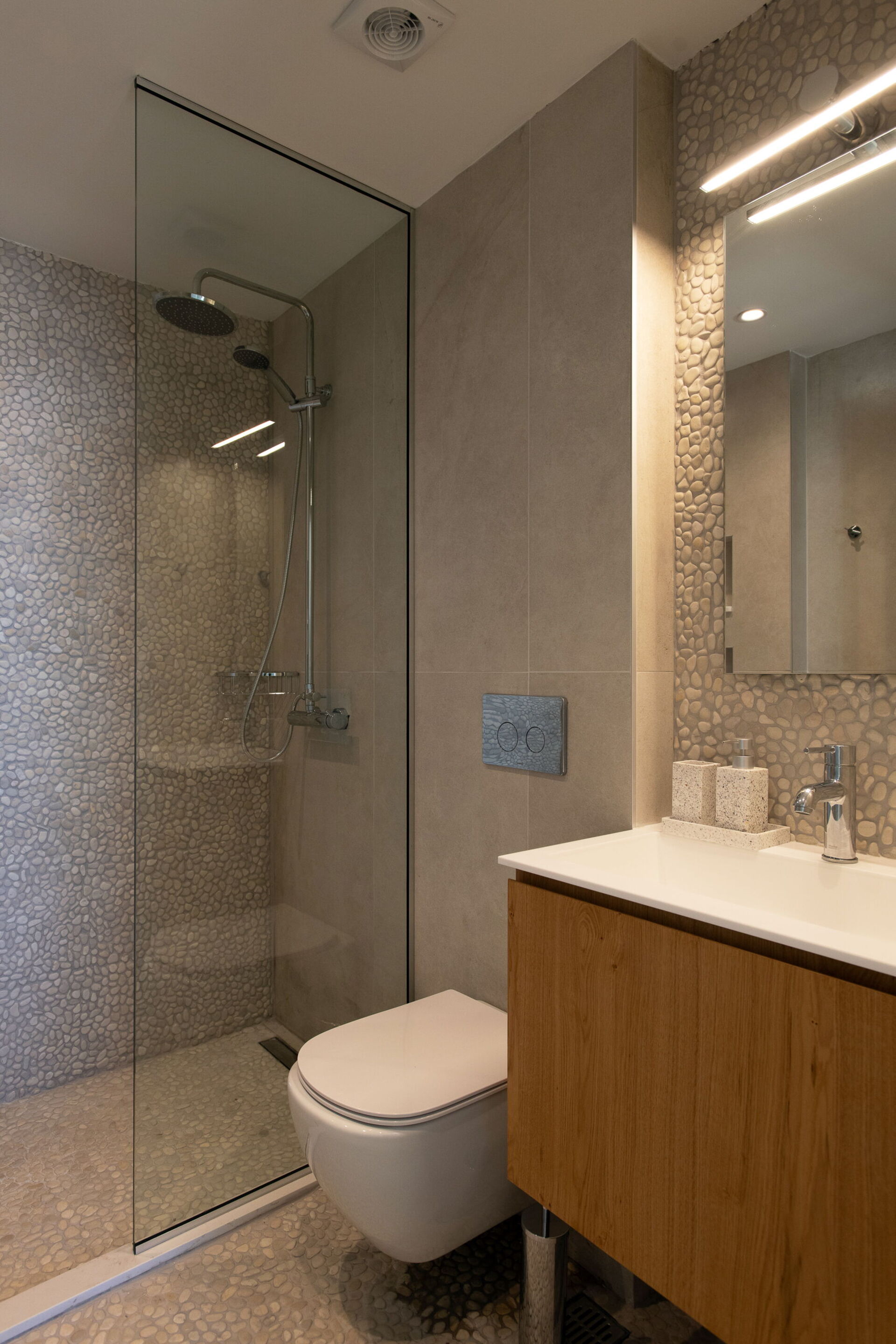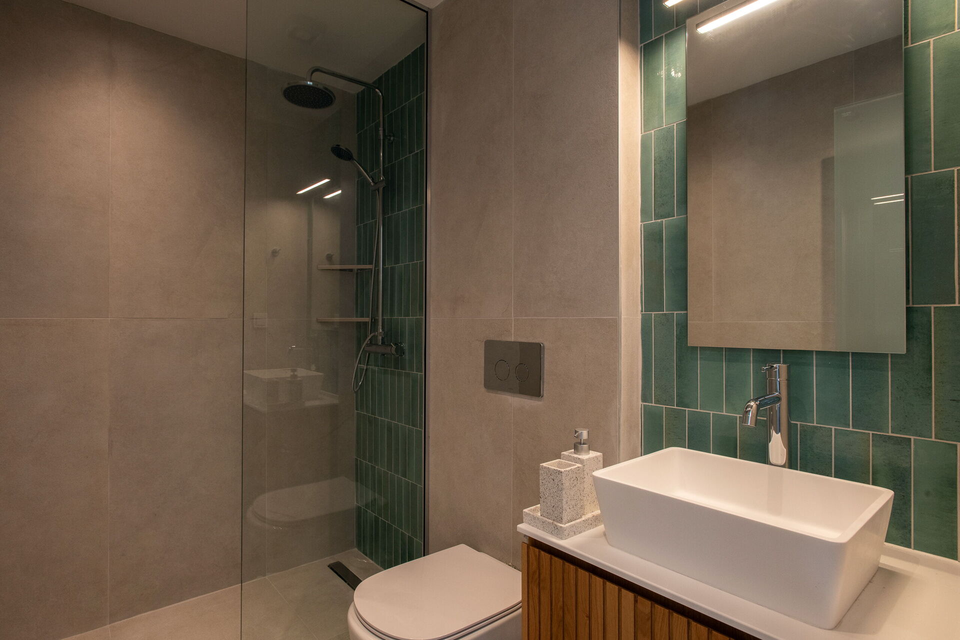 First floor: double bedroom with private bathroom with shower, bedroom with 2 single beds and a private bathroom with shower.