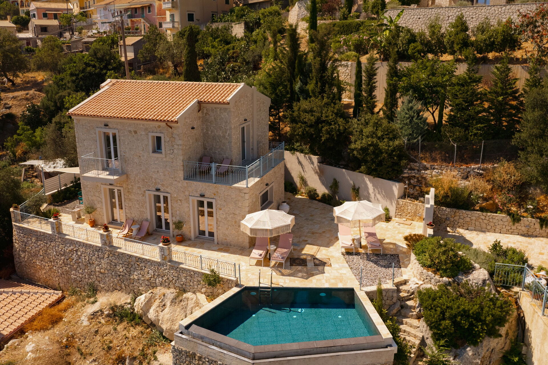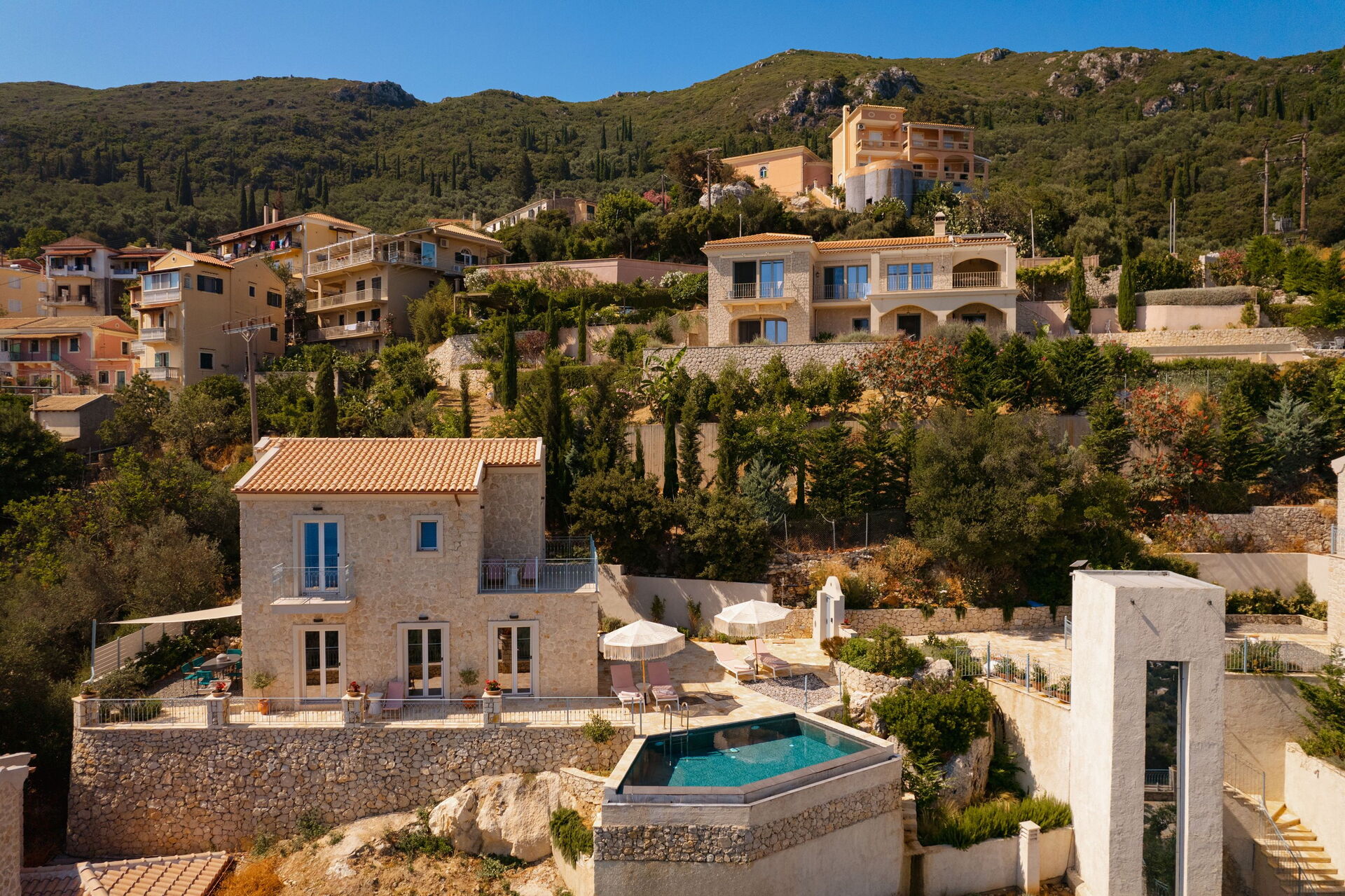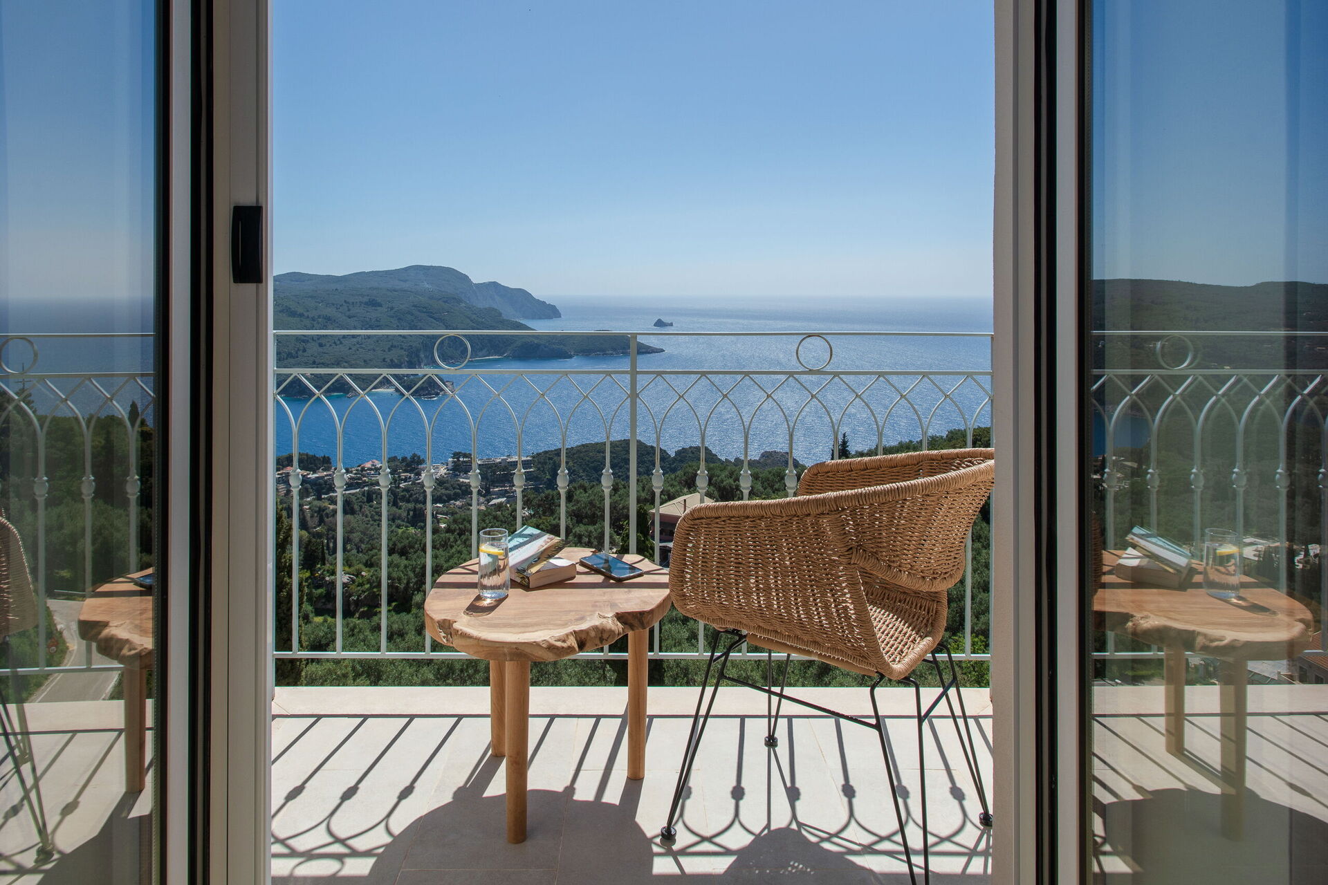 An outdoor area with sweeping views offers a lovely private pool and sun deck for enjoying the sunny Corfu days.
