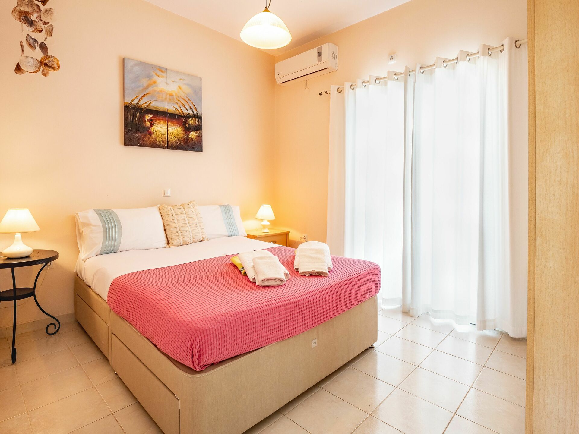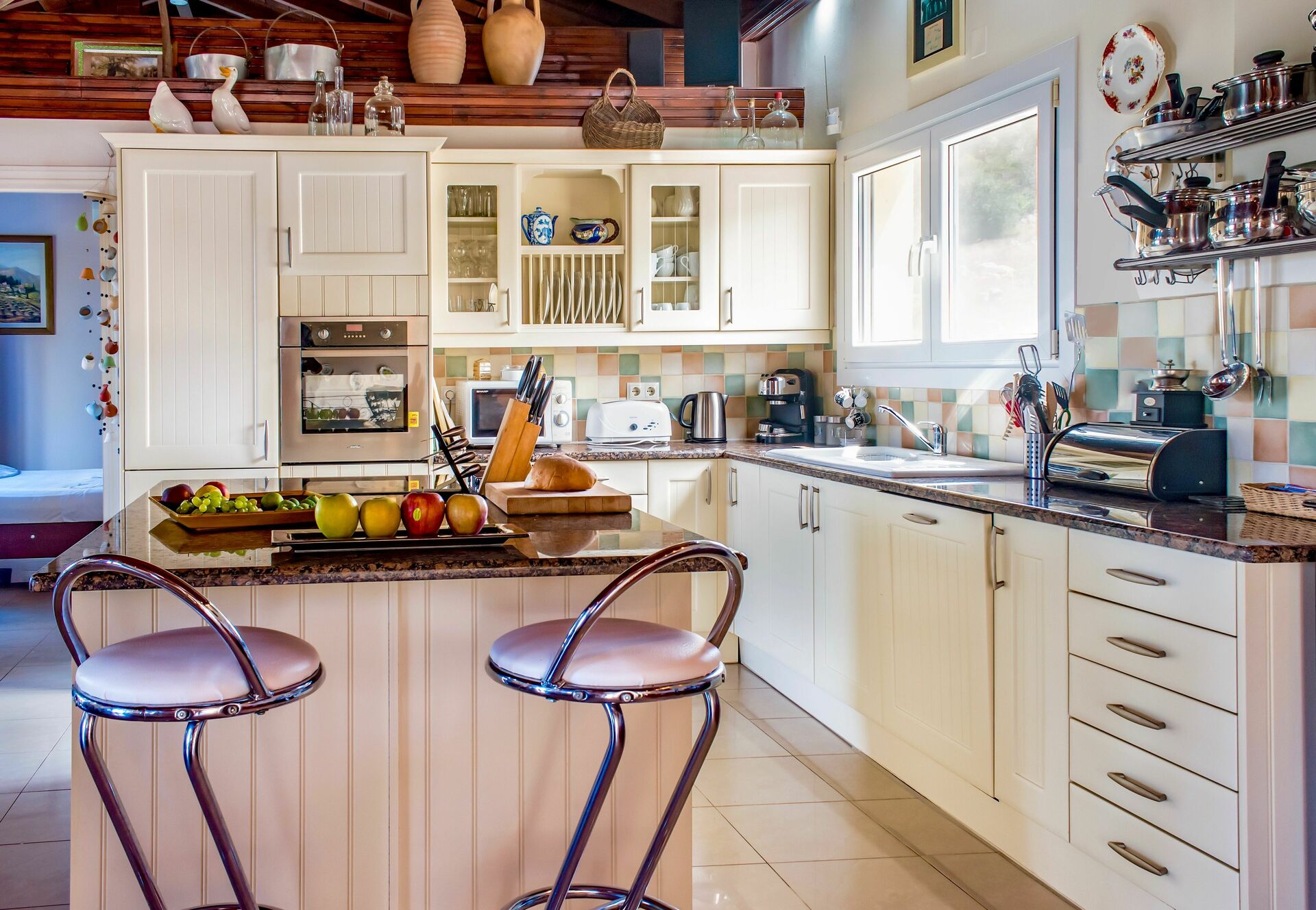 Incredibly well equipped, spacious and airy, the villa offers unbeatable value for money and attention to the details in one of the prettiest locations of the island, mixing a traditional soul with plenty of modern comforts. Surrounded by 5000sqm of private grounds with mature olive trees, this fully air-conditioned villa can easily accommodate up to 8 guests in 4 spacious bedrooms.