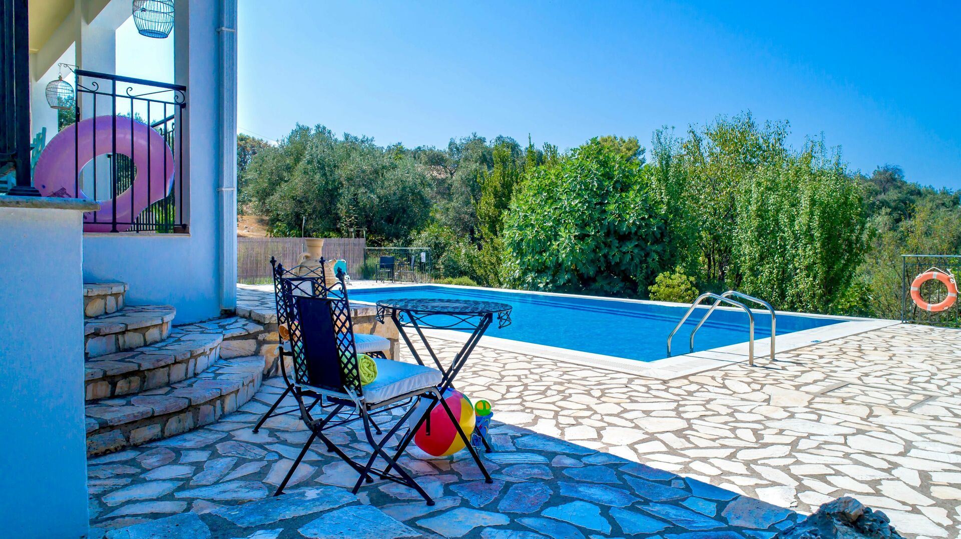 Nice villa, with great pool and outdoor space. Short walk to a couple of decent restaurants and shops in Peritheia village. Short drive to some decent sandy beaches at Agios Spiridon and Kalamaki. Villa needs a little updating, but we had a great holiday so not an issue for us.