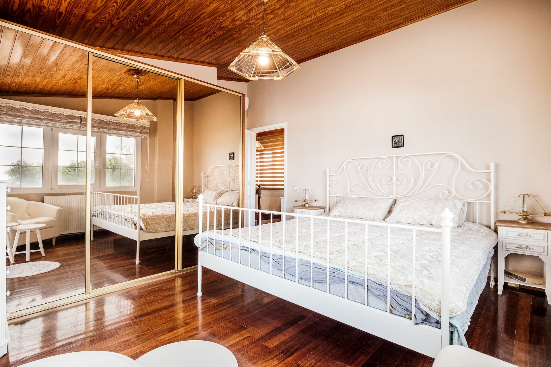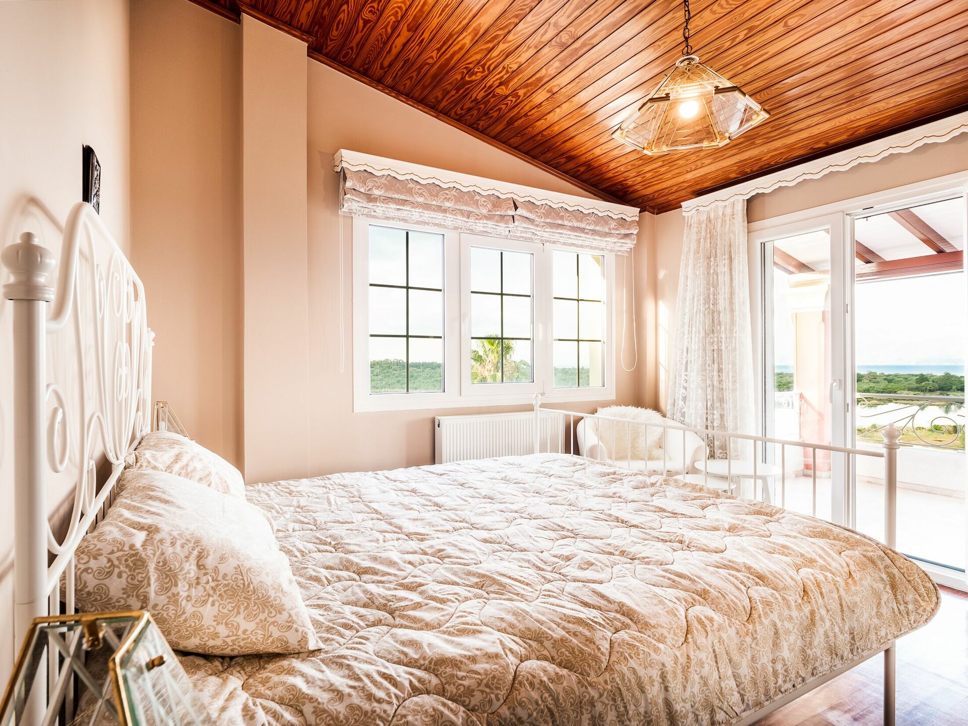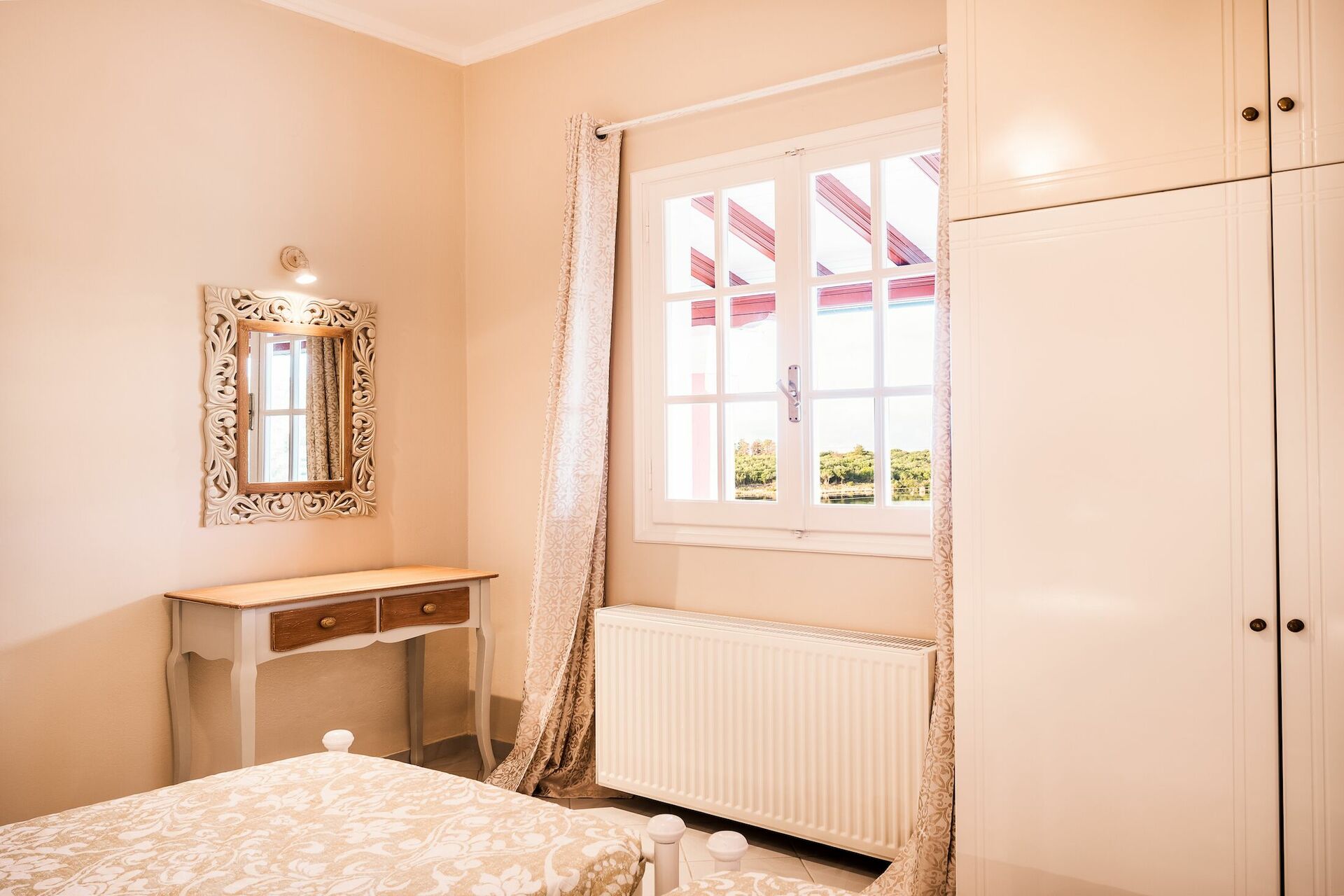 The northern Corfu, and area where the house is located is perfect. It is about 900m from a very nice sandy beach, and it overlooks a lake, a fishing area, where you can always buy fresh fish, and Prokletije mountains in the distance, which always paint a different landscape in mornings and evenings. The nearest touristic village is Kassiopi, about 10 minutes of driving so the house is isolated enough to provide peace and calm to its guests, but many nice beaches are not far away – Sidari is about 20 minutes of driving, Paleocastritsa 45 mins, Corfu city also 45mins. There are many activities offered right there – Horse riding, bike rentals with beautiful tours around the lake and nearest sandy beaches. At 5mins walking, there is a shop with everything you might need on daily basis – Lola shop and a nice beach bar to the right of the main beach, called Pyramid. In Acharavi, the nearest village – 5 mins driving from the house, you can find bigger supermarkets, but also diving and boat rentals, but I can recommend boat rentals in Sidari or Paleocastritsa.