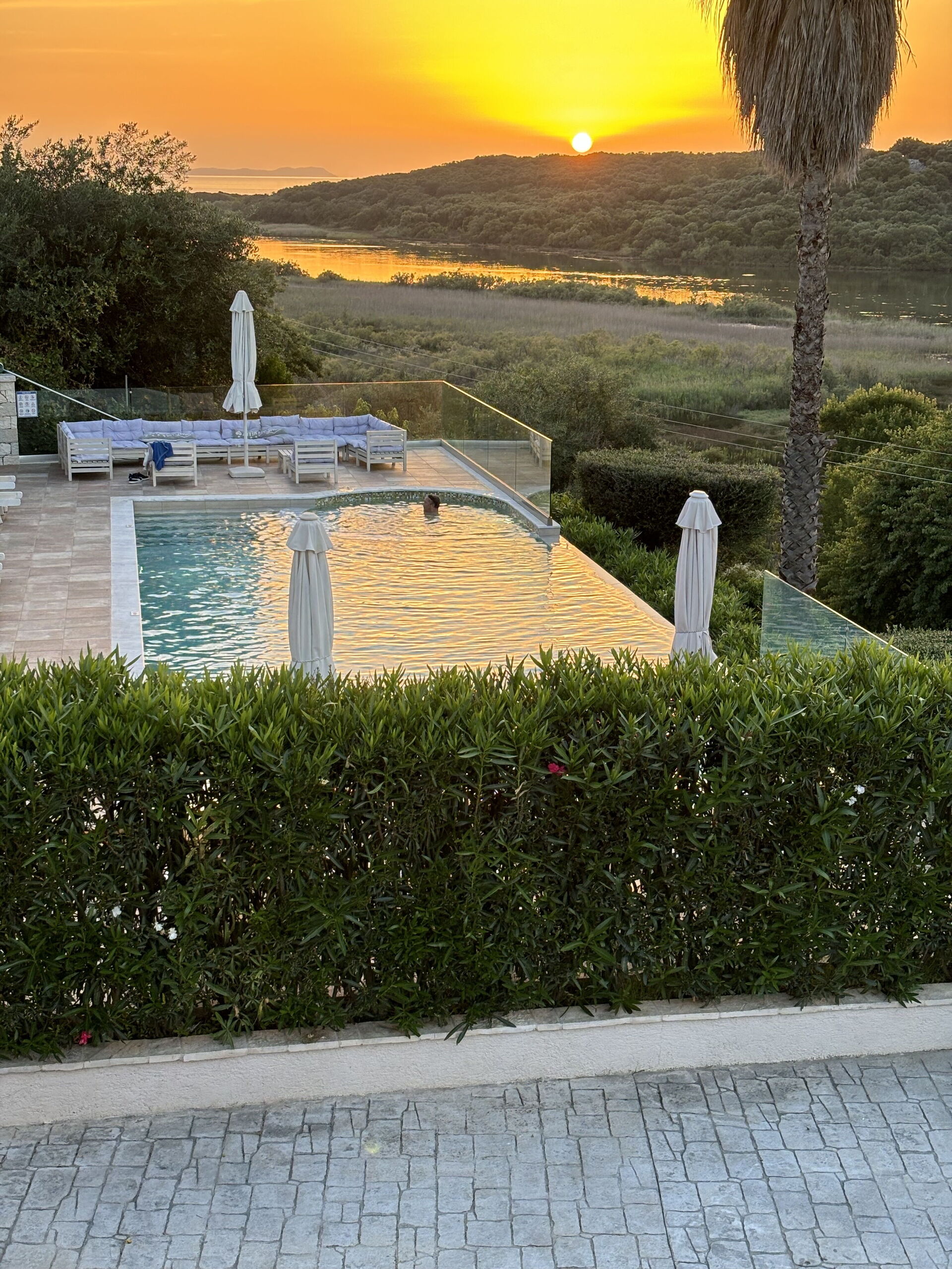 - panoramic unobstructed views over the sea, the sunset and the Albanian mountains in the distance