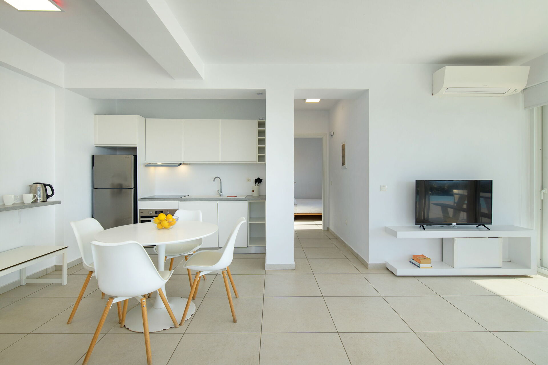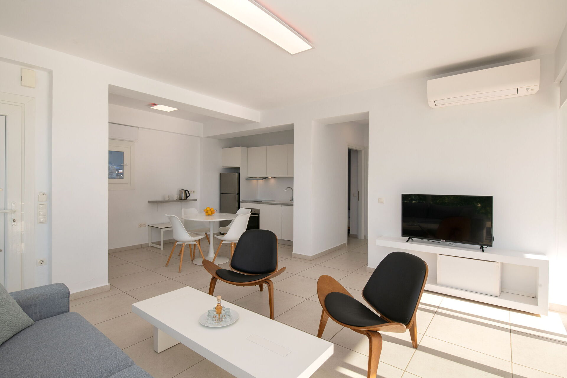 We stayed in Arete Villa which was in the middle apartment of the 3. The views are absolutely stunning, pool was clean and external areas were 5*s. Overall the apartment was exceptionally clean, with perfect ‘chill’ areas to relax in. Kitchen was fully equipped and the beds were super comfy. Super close to restaurants and beaches, closest town was a 7 minute drive which was really lively. Will definitely stay again!