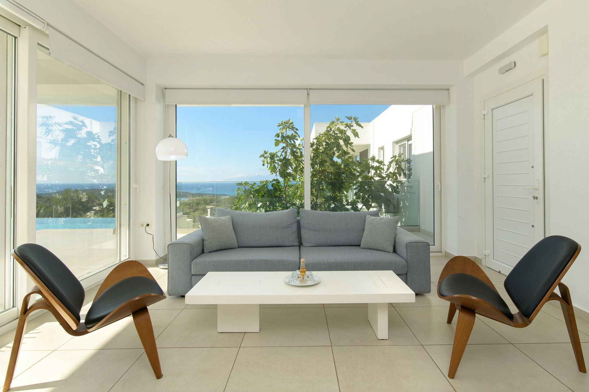 Villa Arete is a property occupying a privileged location in the area of Perithia, on the sought after North-East coast of Corfu. Part of the exclusive “Perithia View” estate, this villa has been finished to the highest standard to offer a superior holiday experience to the most demanding guests. With 4 bedrooms, 4 bathrooms, extensive lounges and patios as well as private pool, tis villa ticks all the boxes. The elevated position (yet very close to amazing beaches) with 180 degrees panoramic views, offers the most amazing gift of the nature: the chance to admire, from the same property, both sunrise and sunset. In Villa Arete every moment will be an experience to live and remember!