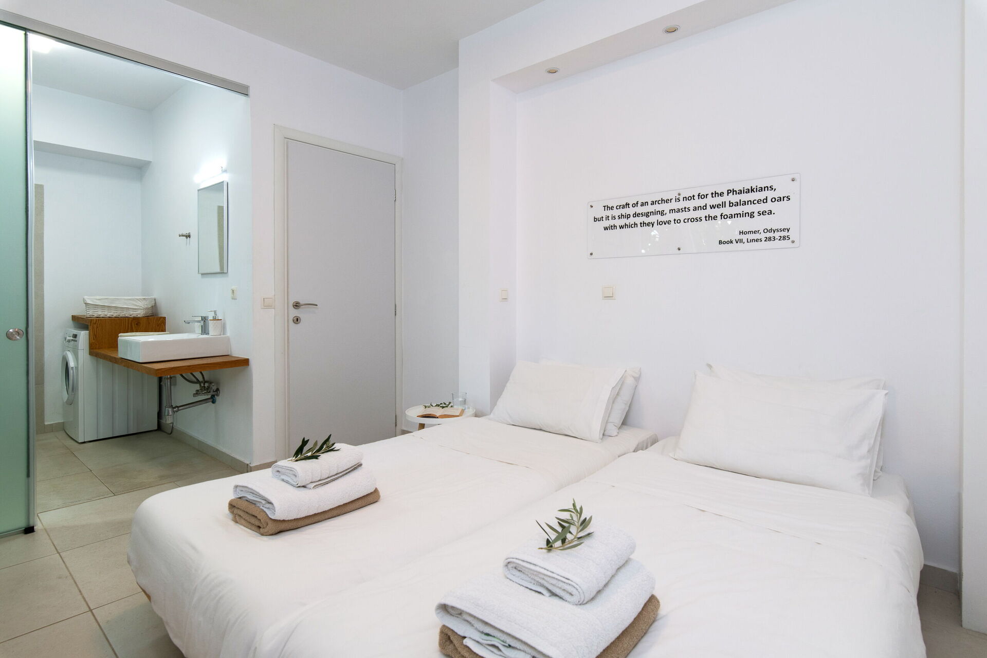 The location is very important to us - off the beaten track, space, view, amazing sunsets ... Neighborhood in villas is a roulette - it was ok with us. No one bothered anyone. The fact is that the villas are poorly separated and lack privacy. It needs to be regulated by vegetation. Very important information - here you must have a car. There is no access to the beach and nearby tavernas on foot - unless you are walking on the highway where there is a lot of traffic. Nobody does. There is a mini market 400 m away but it is worth going shopping to Nicos Food Market - 6 km. They have everything there. Delectable owner. In general, everywhere we came across very empathic Greeks - in restaurants, shops, on the street ... everyone speaks communicative English. Our manager Rania in Vila Arete very helpful, competent, discreet. There are beautiful beaches in the nearby distances, but always a lot of people, no parking spaces, they are mostly rocky, without sunbeds and umbrellas or with sunbeds and very loud music. We found an ideal beach for children, beaches nearby - 1.3 km Kalamaki Beach - wide sandy beach with sunbeds and umbrellas - 10€ for 1 umbrella and 2 sunbeds for the whole day, gentle shore with warm azure water, on the beach Taverna Dimakos worth recommending.