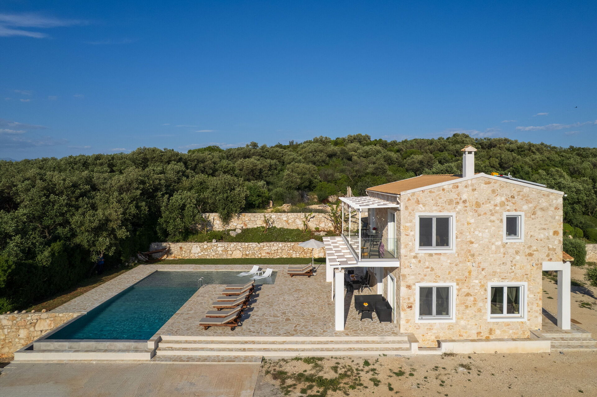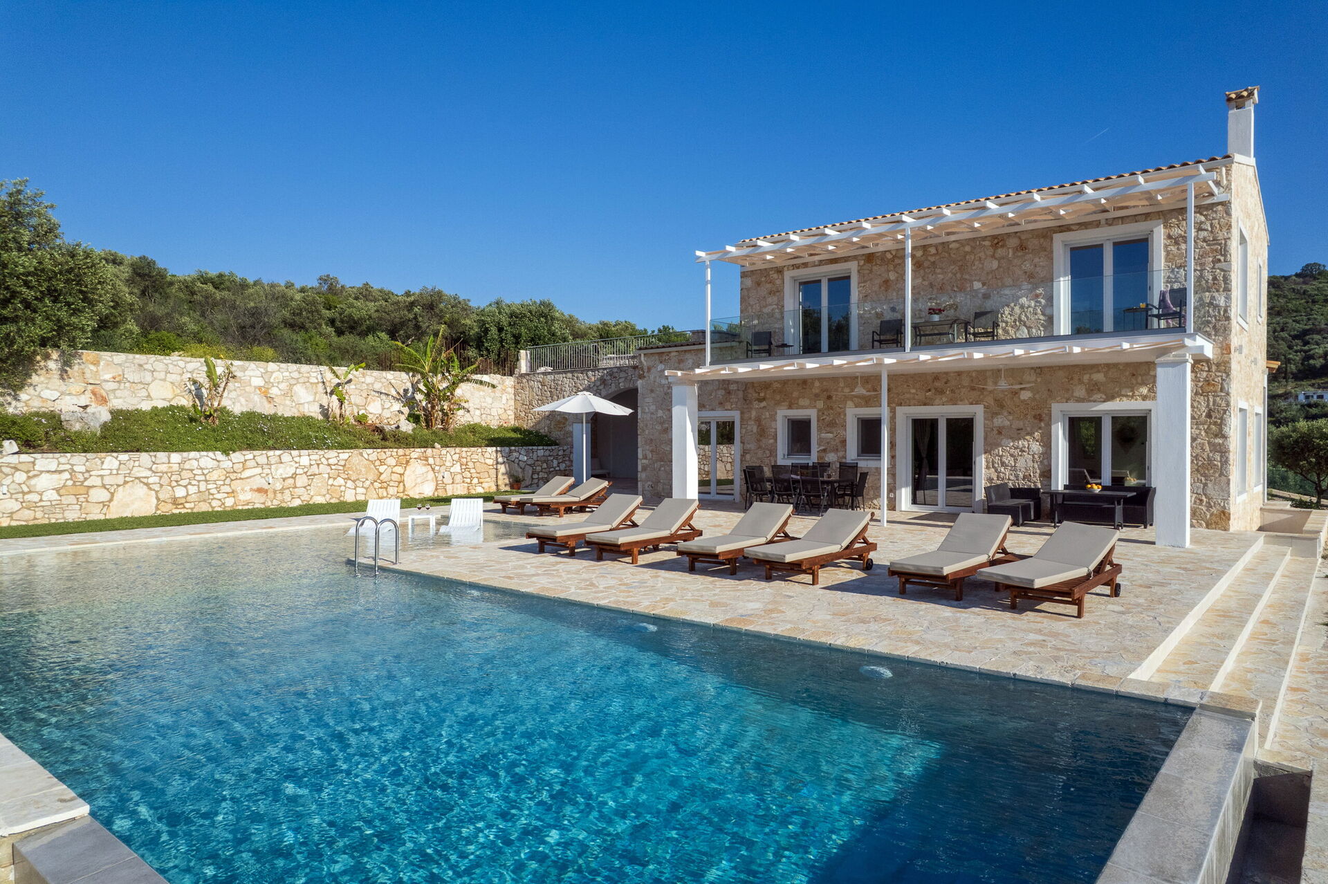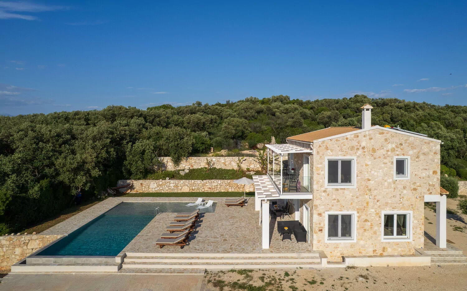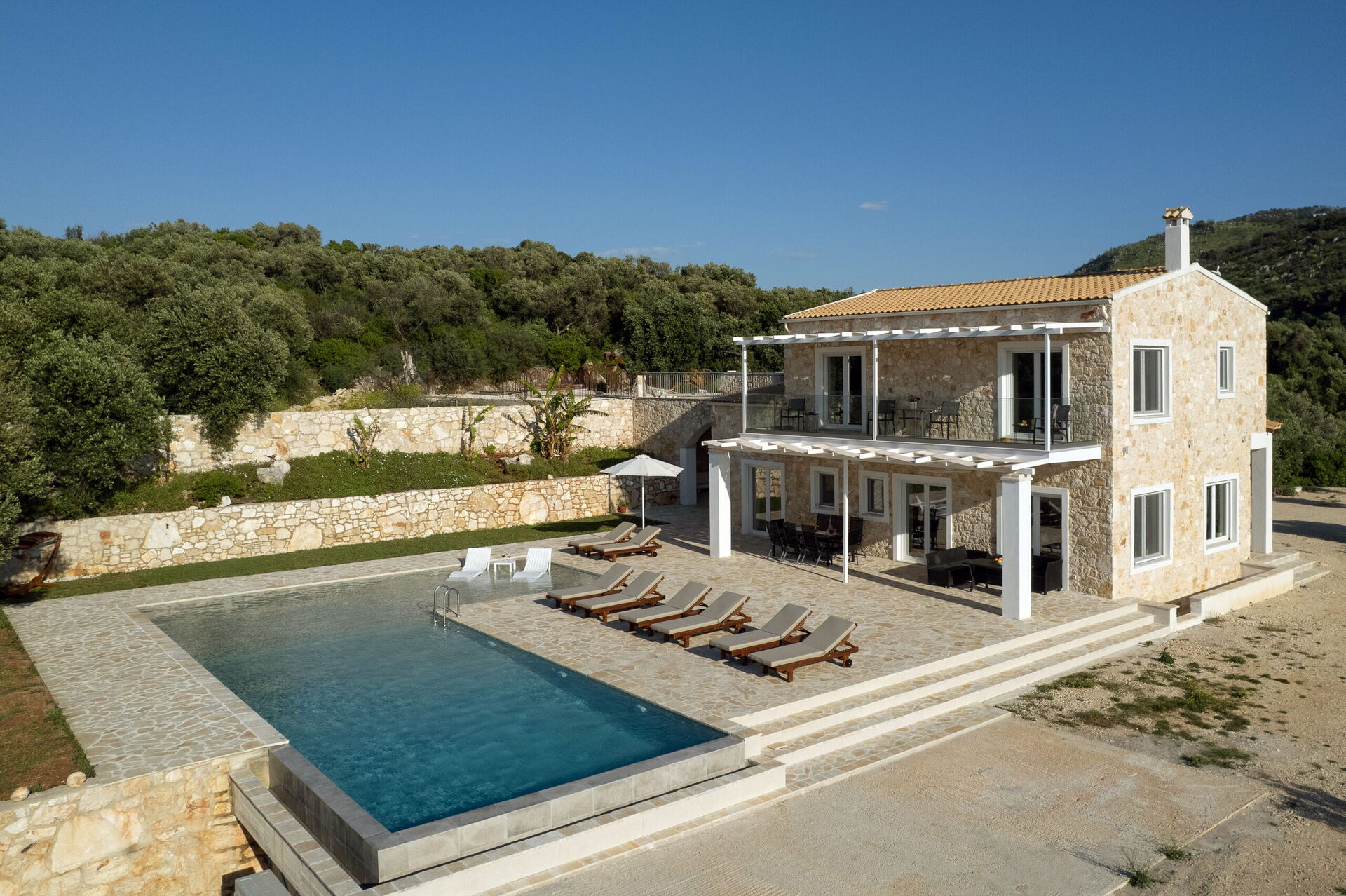 This villa in Greece was completely renovated in 2025. It features modern furnishings and is very comfortable.