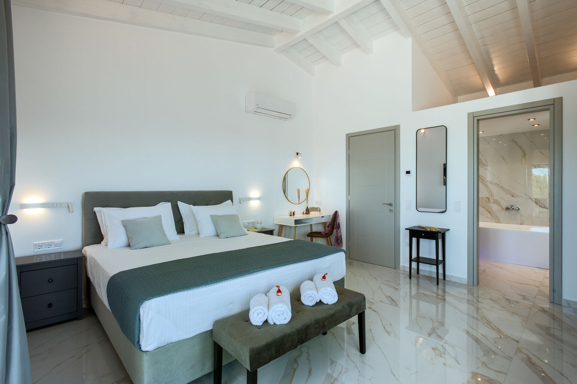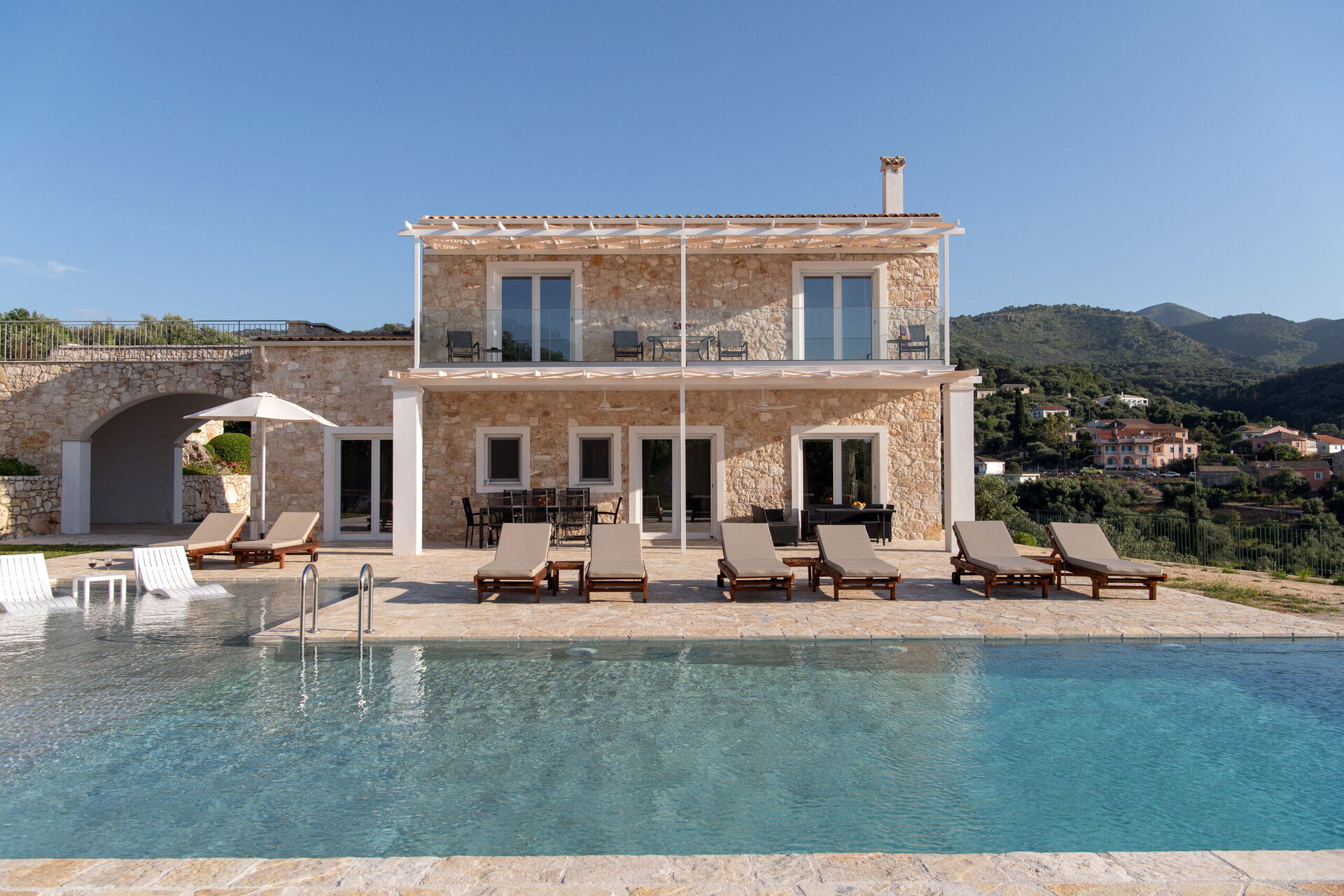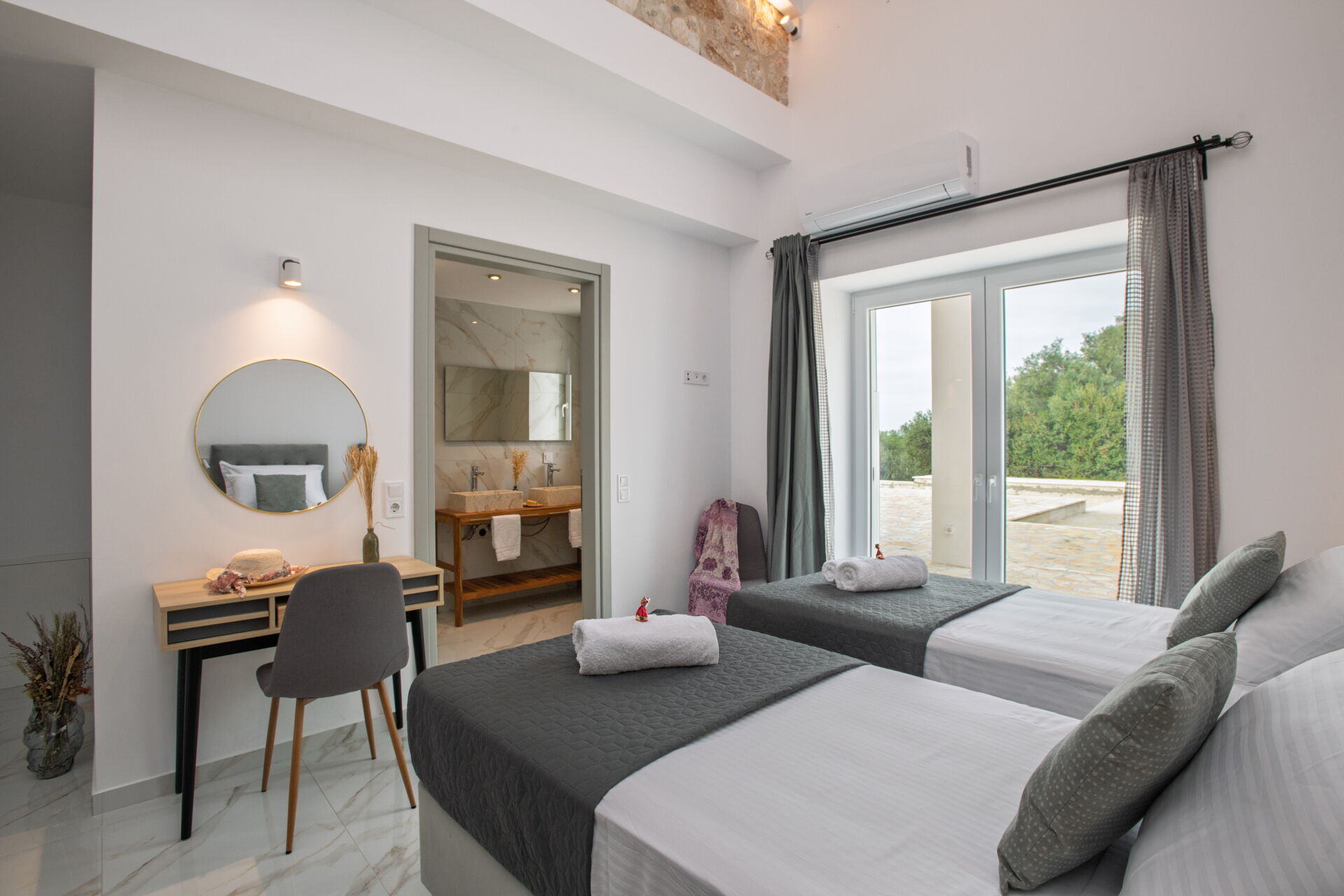 This villa in Greece was completely renovated in 2025. It features modern furnishings and is very comfortable.