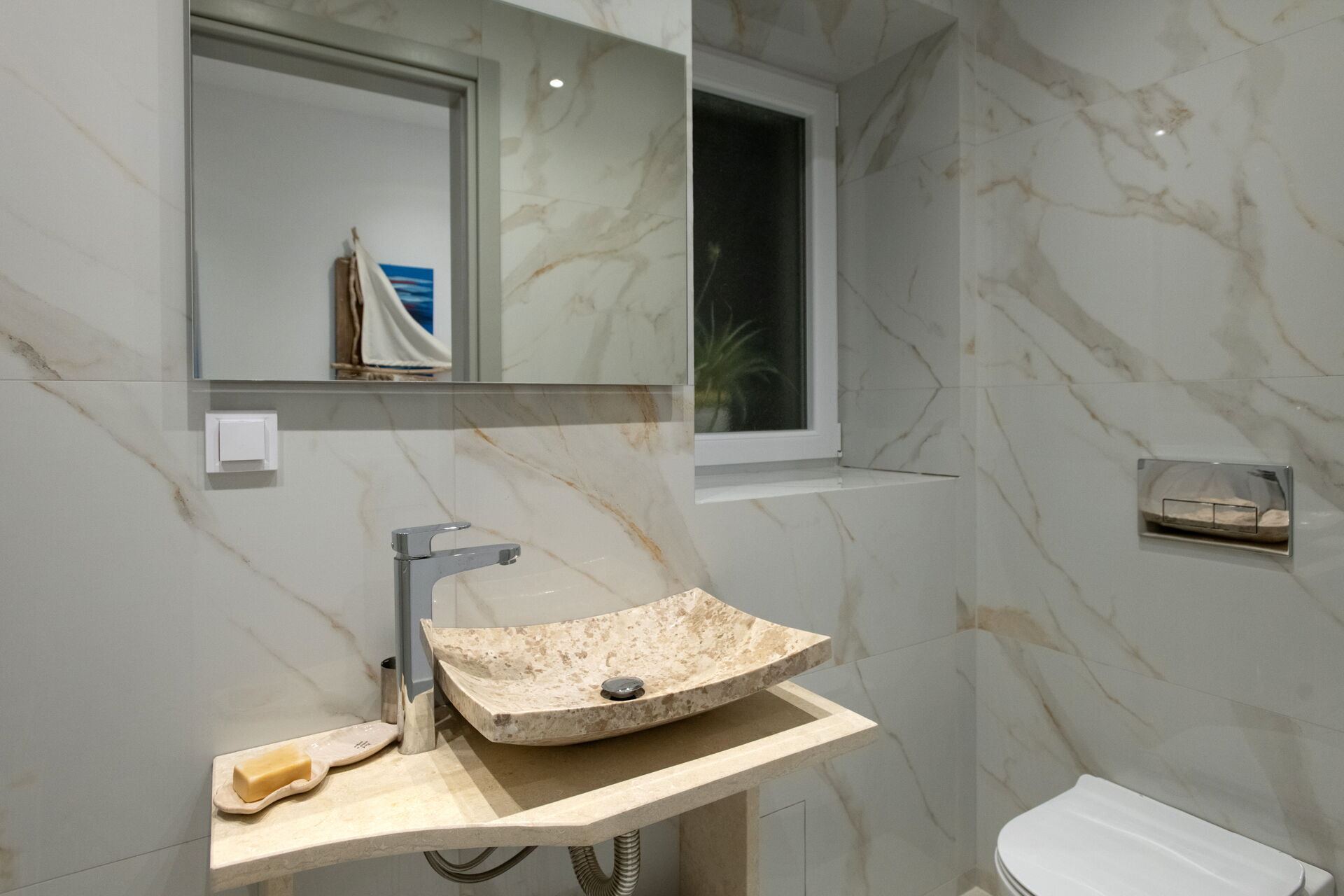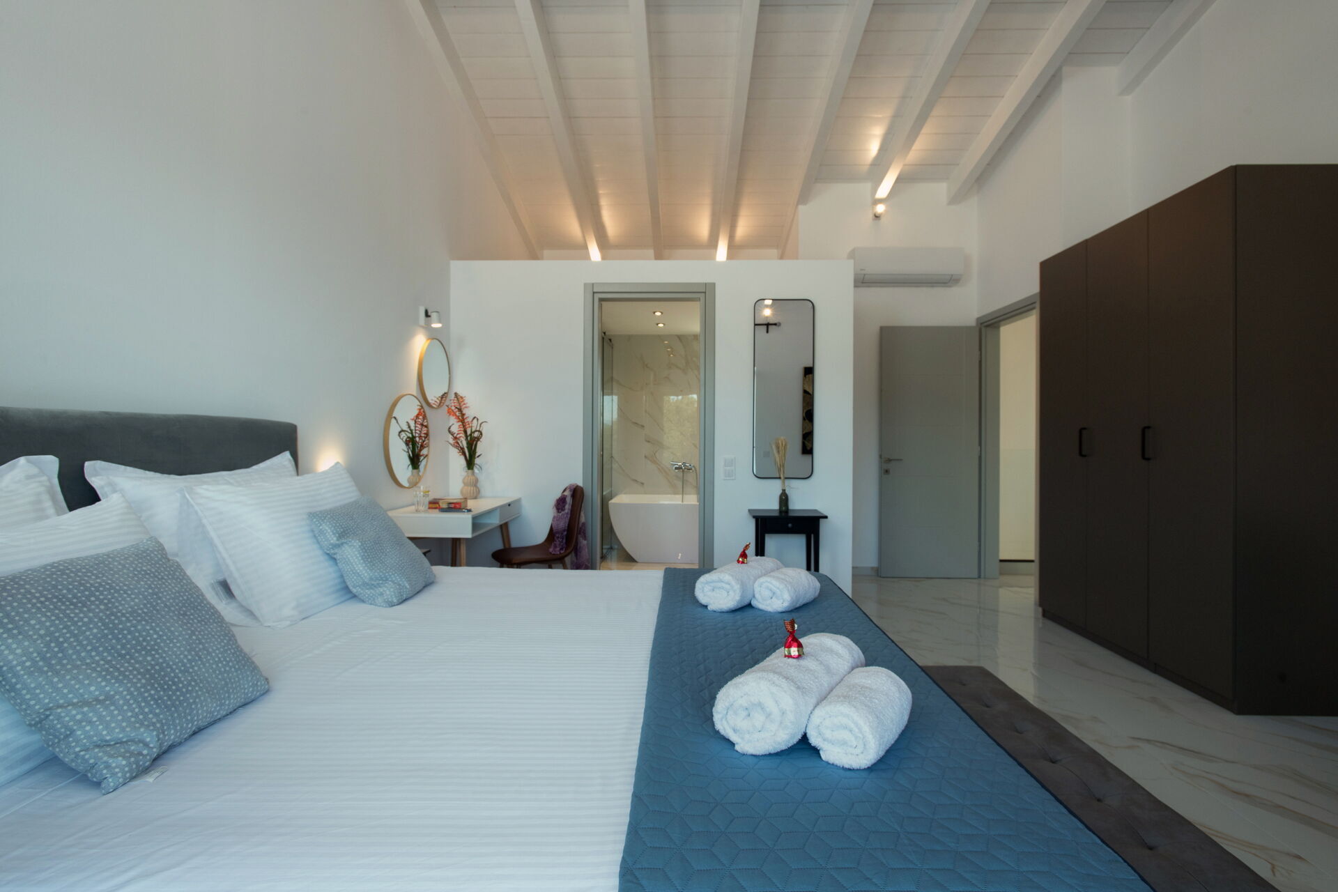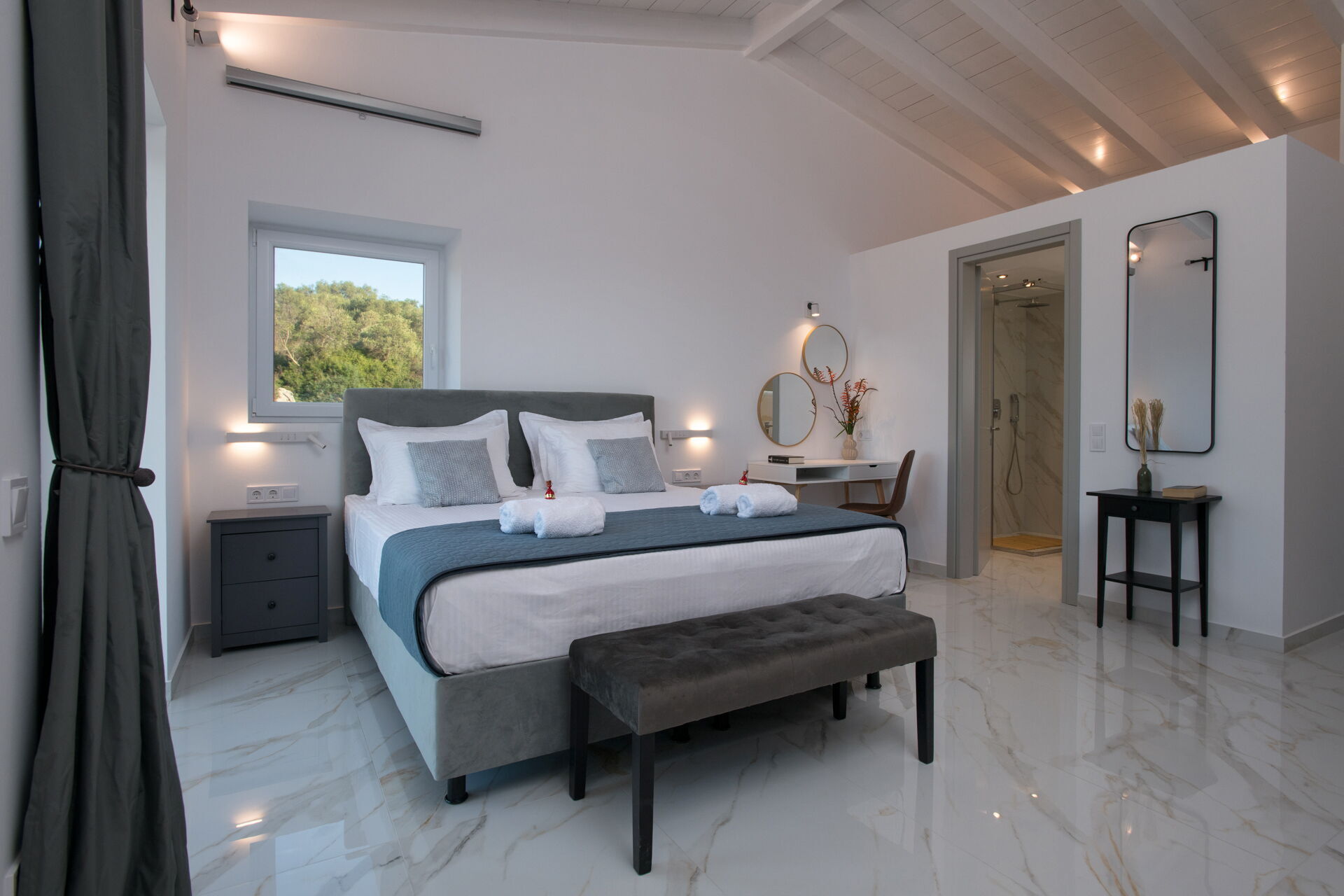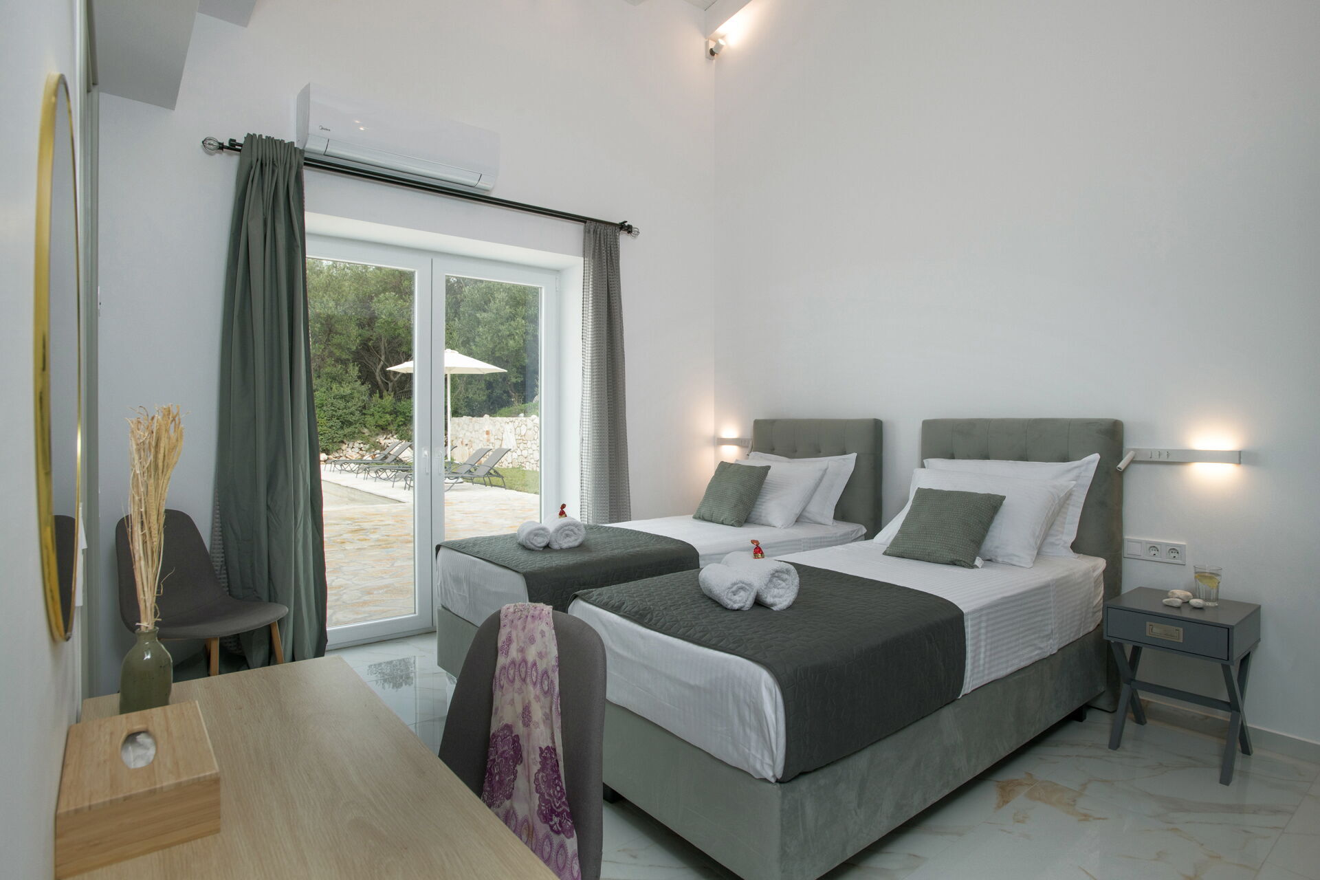 This villa in Greece was completely renovated in 2025. It features modern furnishings and is very comfortable.