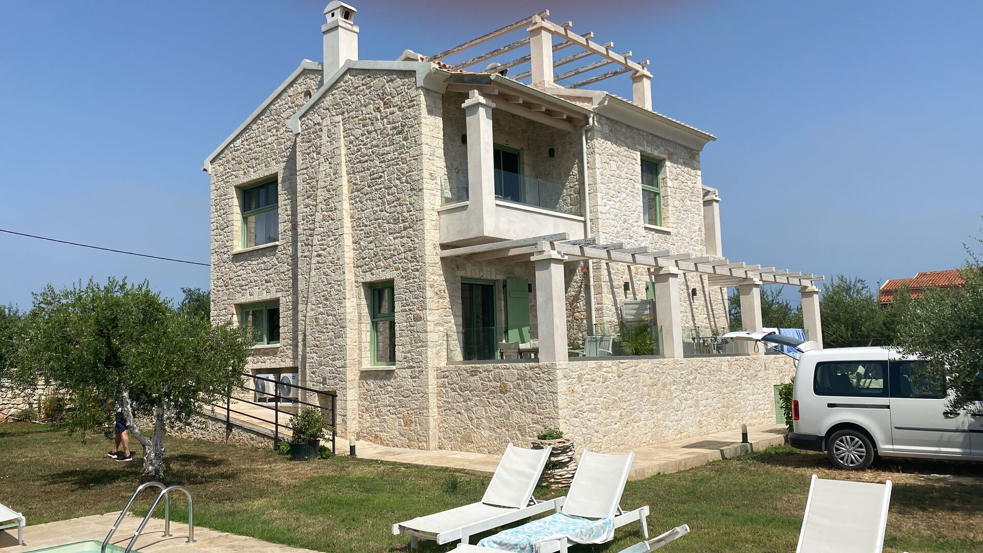 We recently returned from a stay at this villa. I was a little reticent to book it, because it had no reviews, but the host is a premier partner so I took a gamble and I'm so glad I did. We had a little difficulty finding it, due entirely to lack of service on our phones. The property manager Athanasia was amazing. She came and met us and we followed her in. A car is essential, but the location and the villa are just stunning. The photos do not do it justice. It's a 5 minute drive to the nearest town, with supermarkets, restaurants, pharmacy etc. The villa had everything you need in it. Its around a 10 minute walk to the beach and to the nearest taverna. The food at the tarvena is excellent. The location is quite rural so if you are looking for a peaceful, tranquil break within easy reach of the beach and amenities then this is the place for you. It was around an hour's drive from the airport and Corfu town. Highly recommend and will definitely be back.