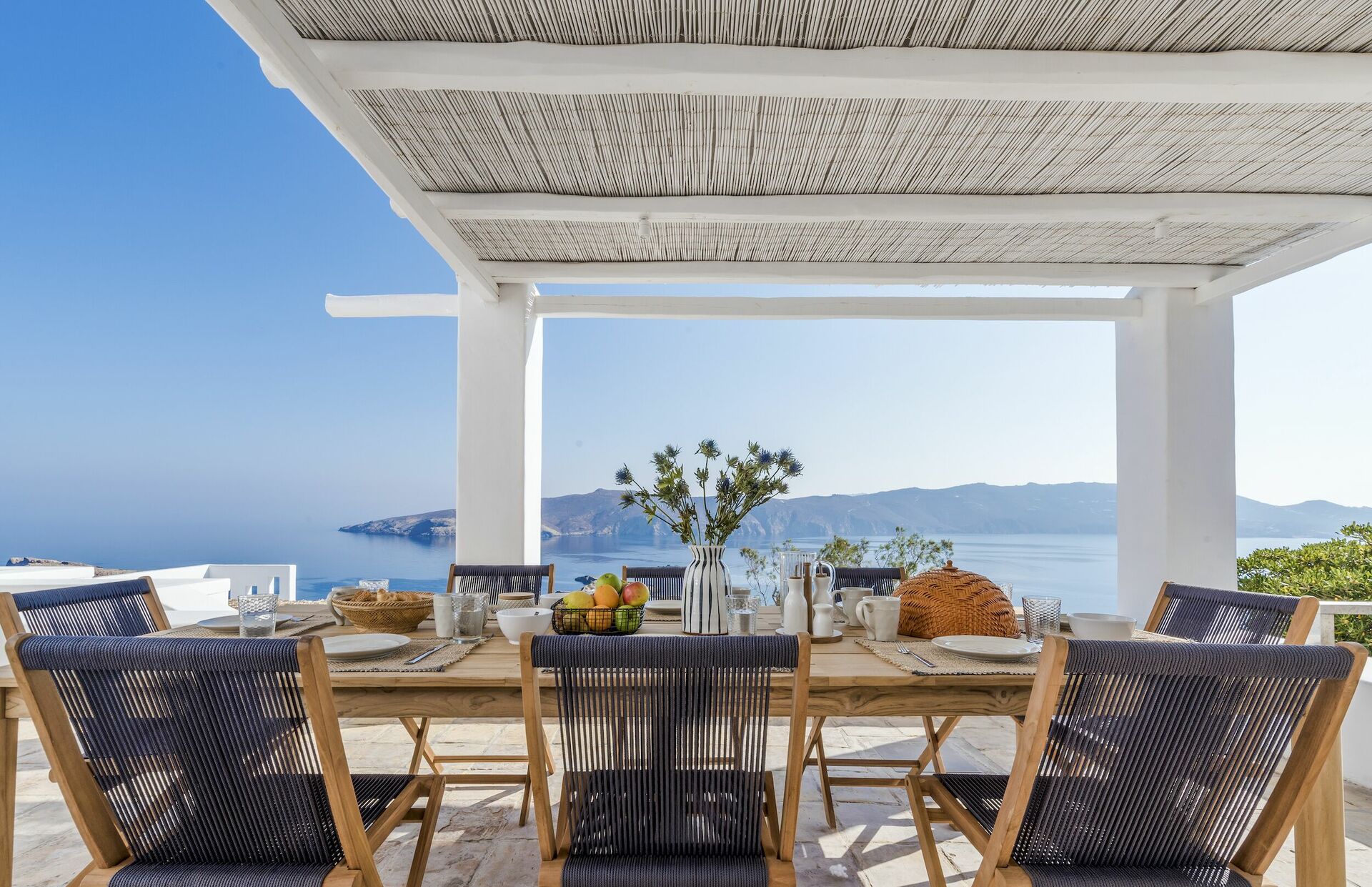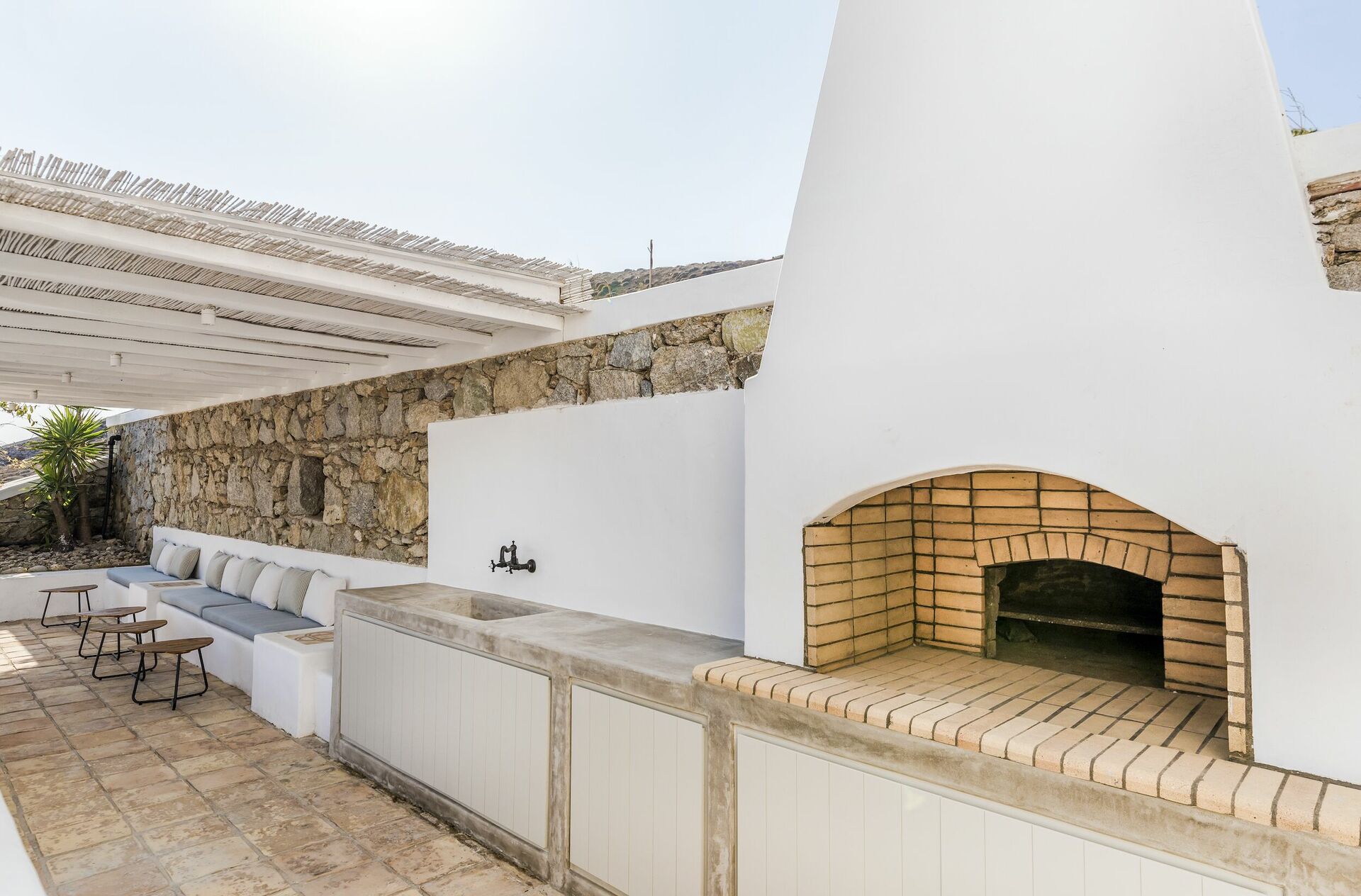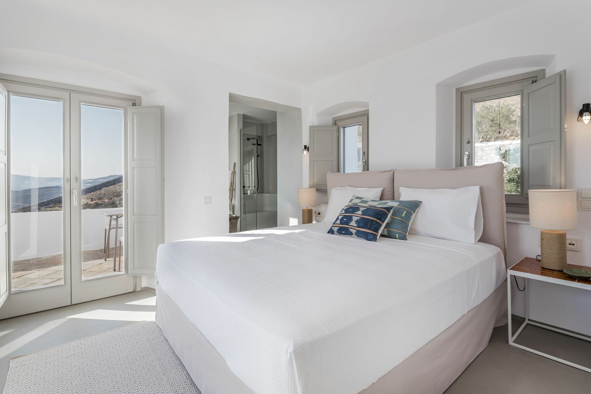 The villa offers marvelous views of Panormos Bay and Agios Sostis beach, which is just 2 minutes away by car.