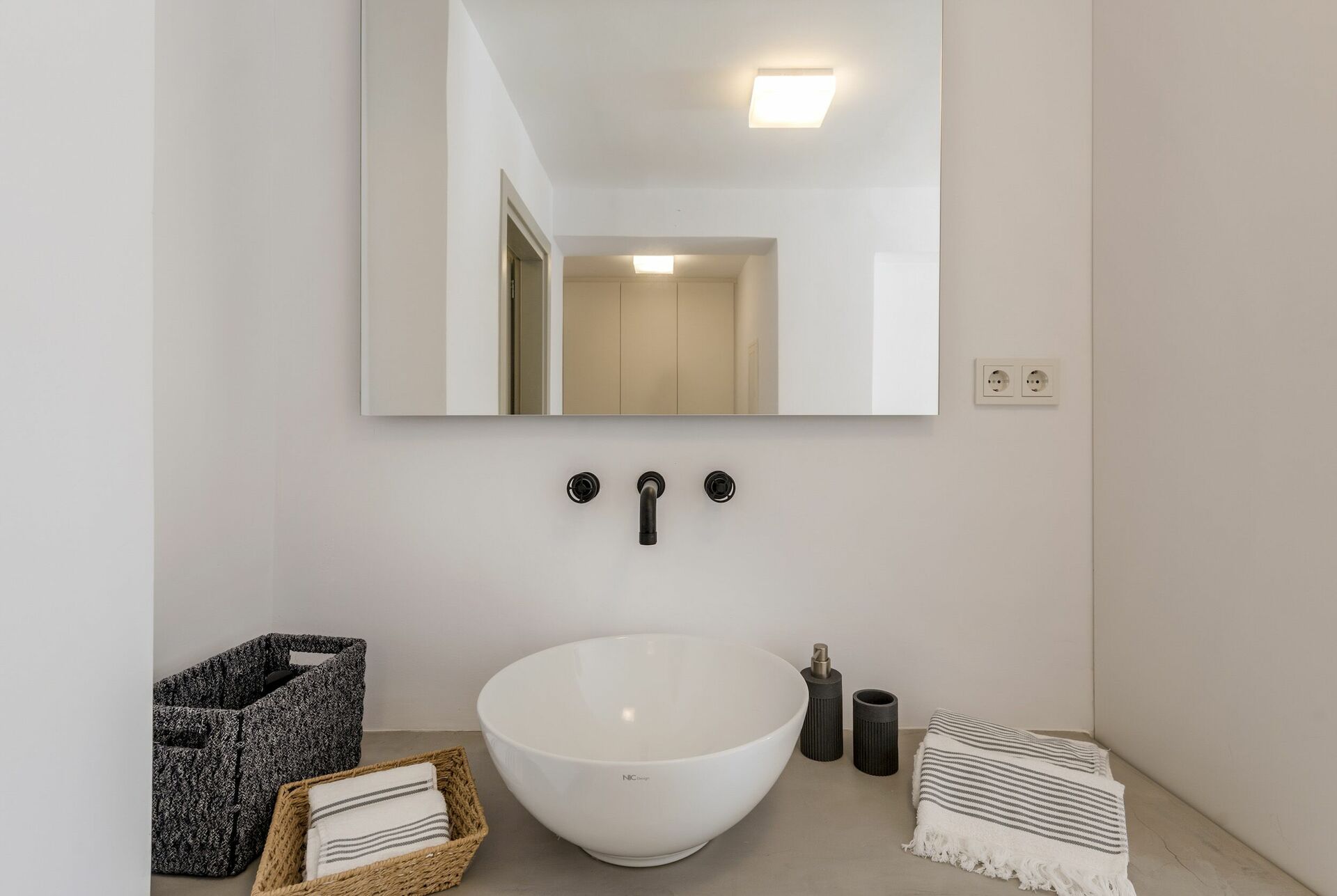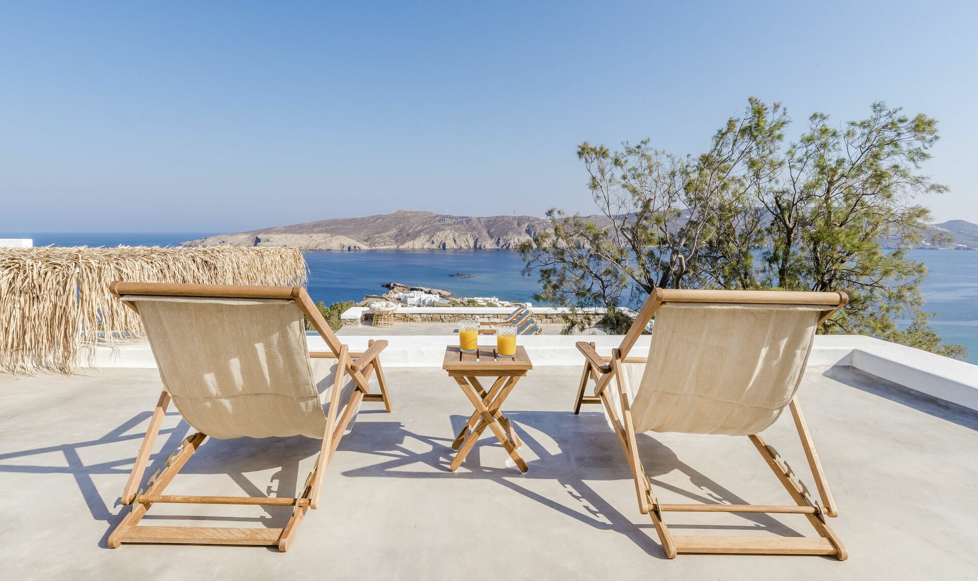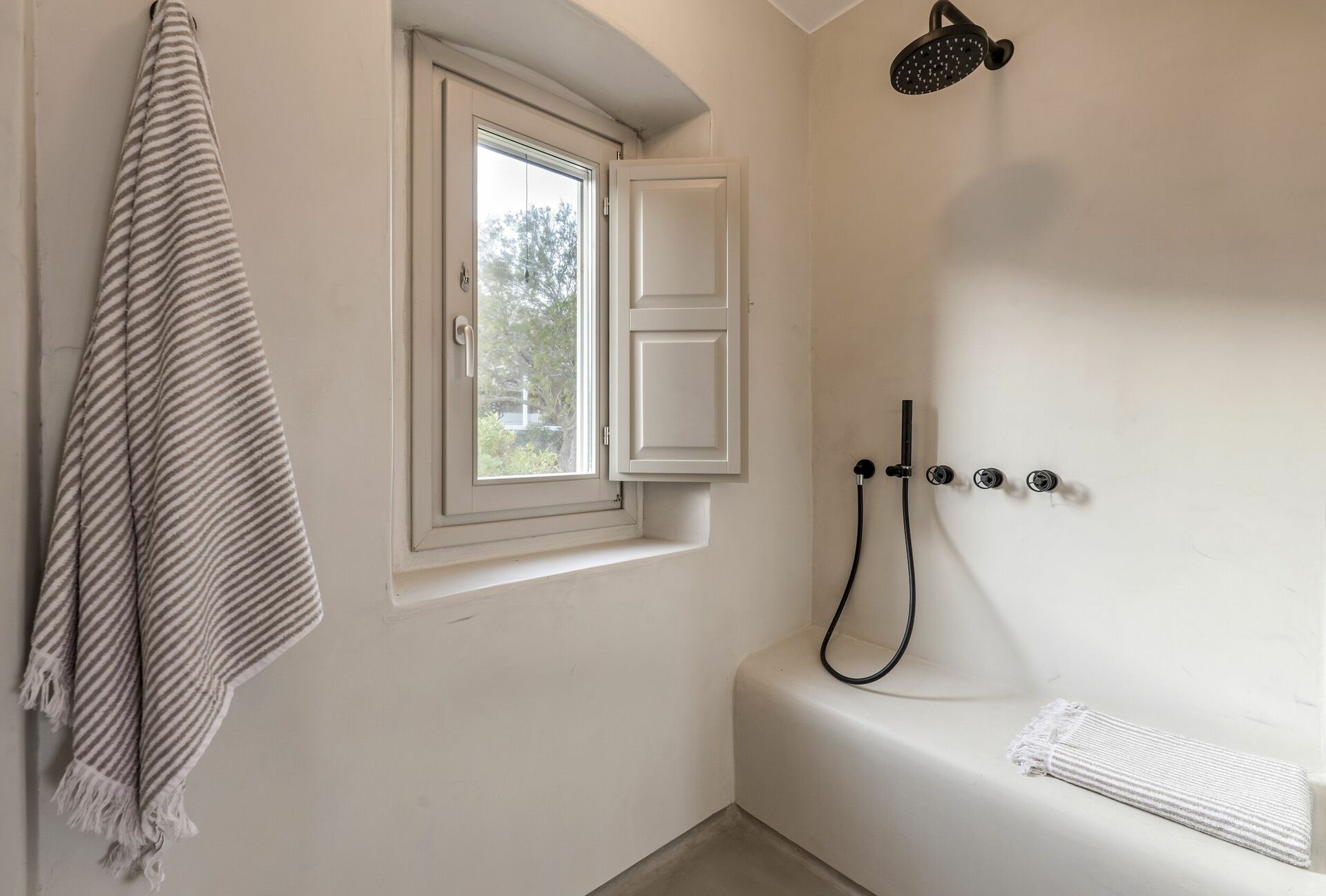 The villa offers marvelous views of Panormos Bay and Agios Sostis beach, which is just 2 minutes away by car.