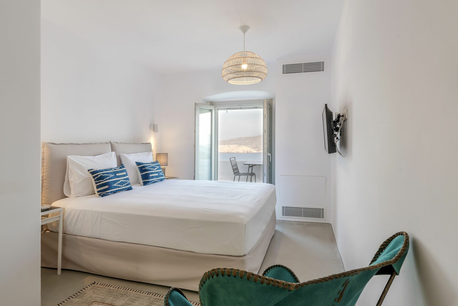 double bedroom with outdoor access and private bathroom, private kitchenette.