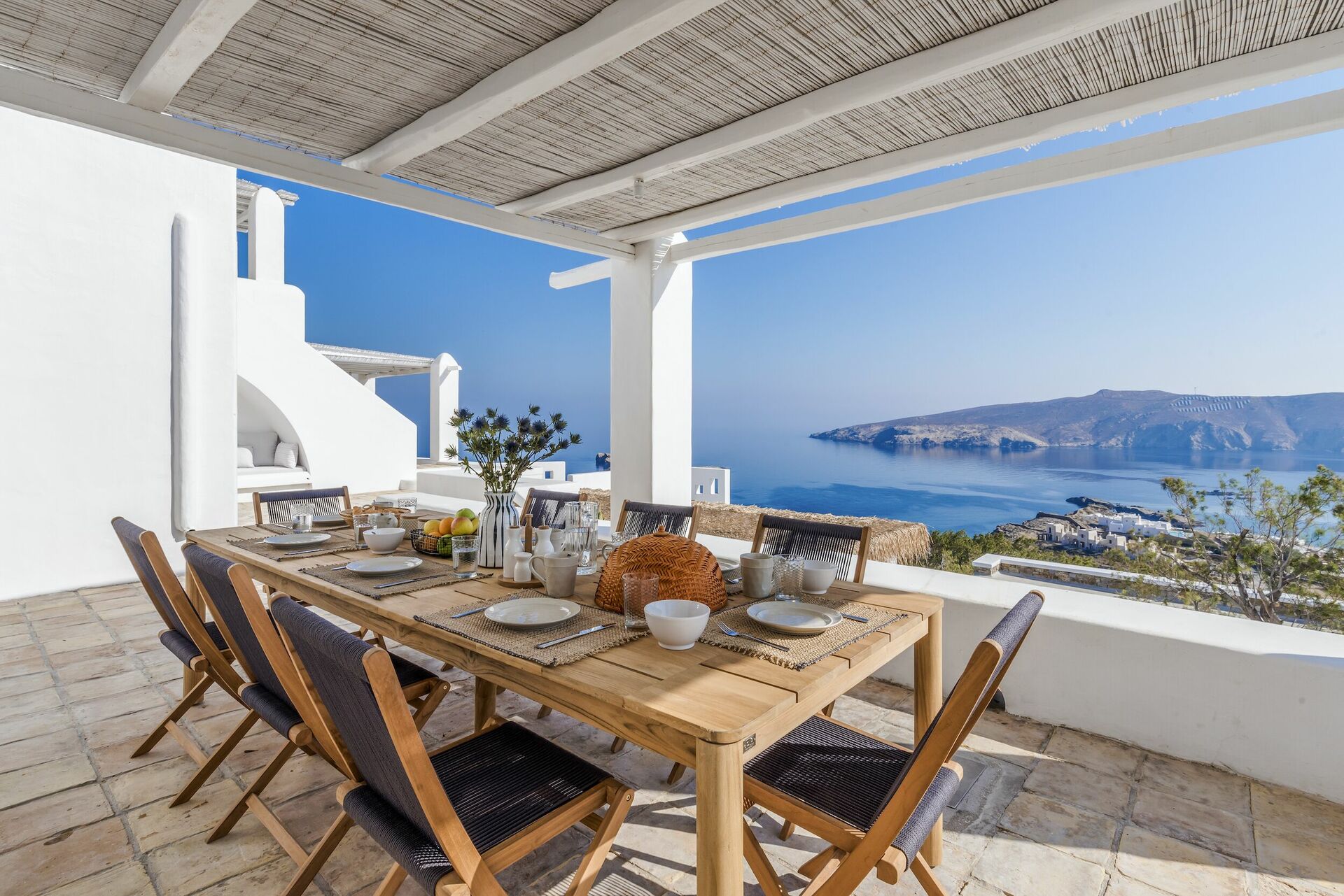 The contemporary-style villa combines luxury with the utmost comfort, and features exclusive views of the island and Mar Egeo from its large windows.