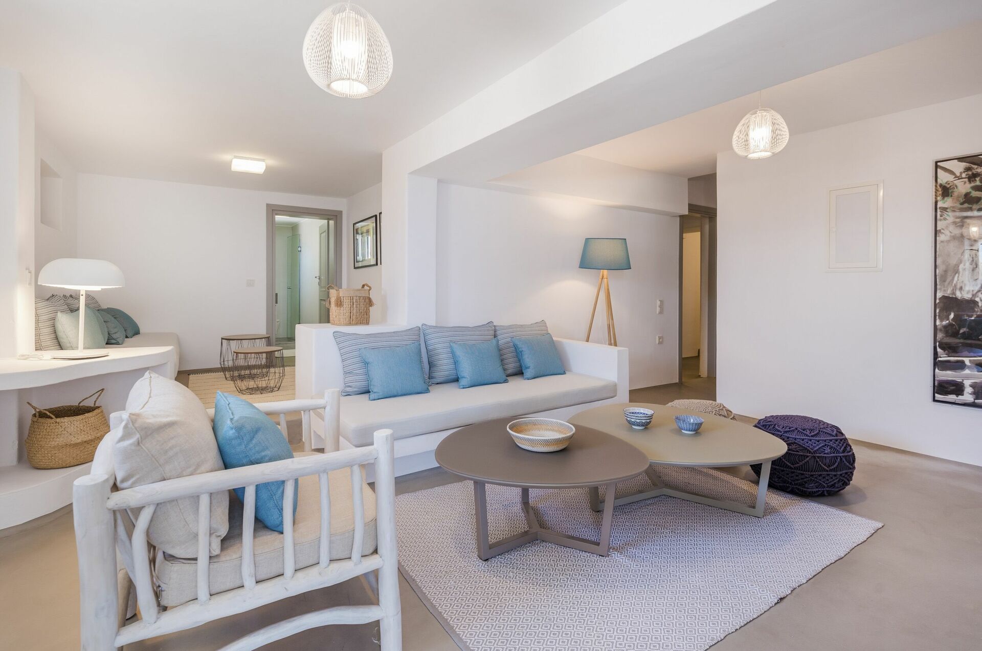 Distances: the marvelous, tranquil beaches of Agios Sostis and Panormos are just steps away, the city of Mykonos and the picturesque village of Ano Mera are both just 12 minutes away by car.