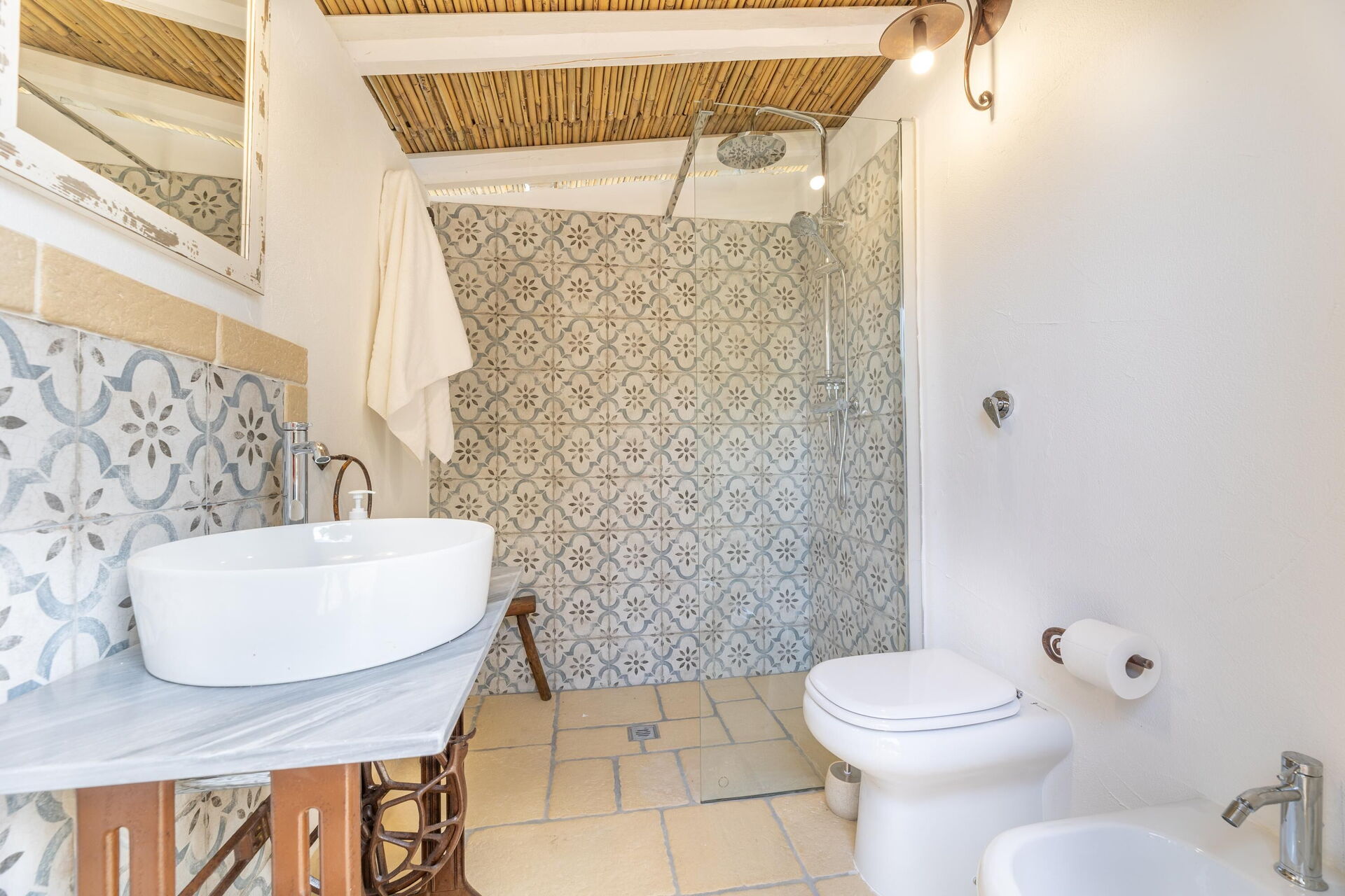 Outside there is a WC and a bathroom with shower. Outdoor jacuzzi for private use.
