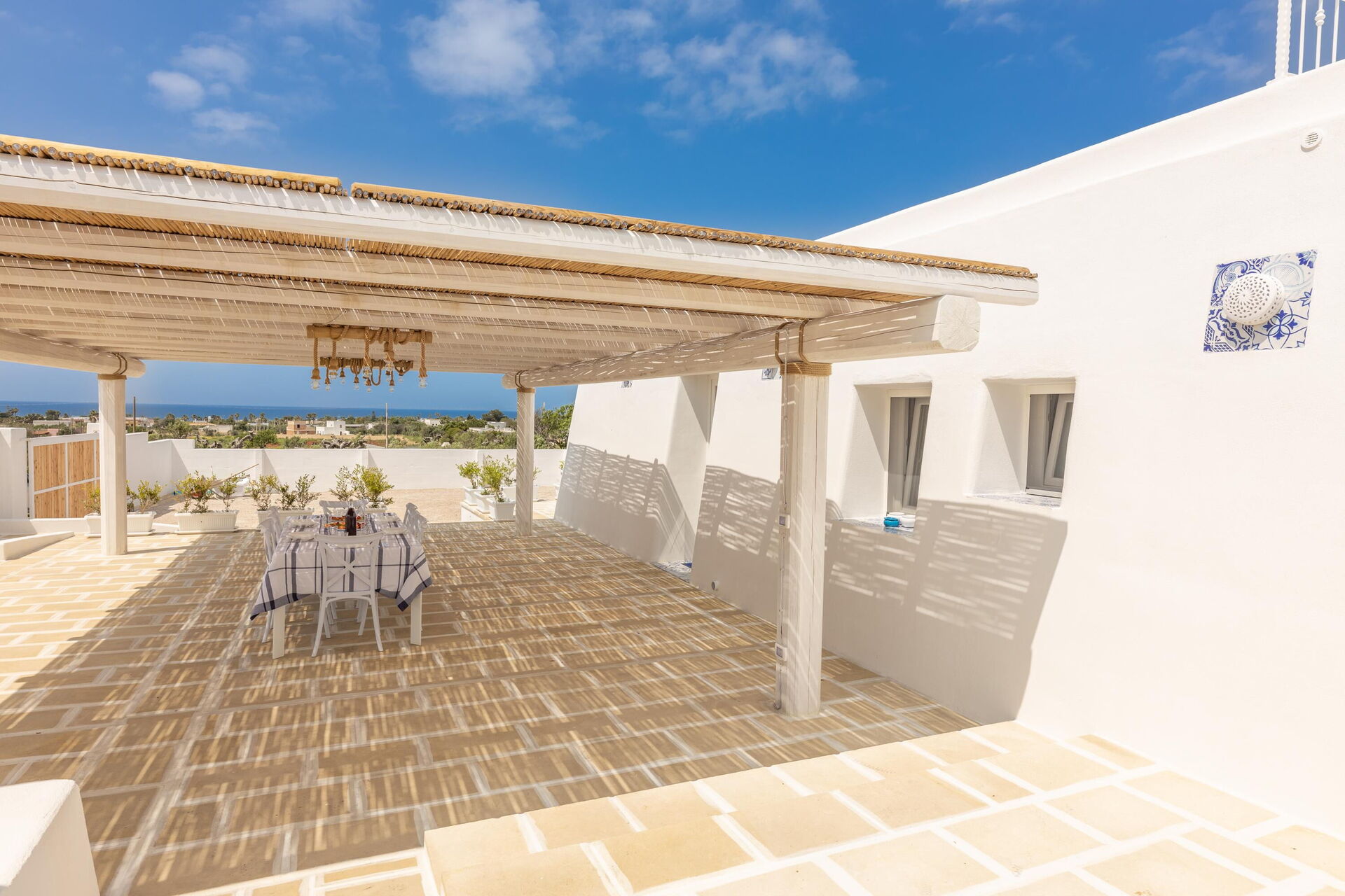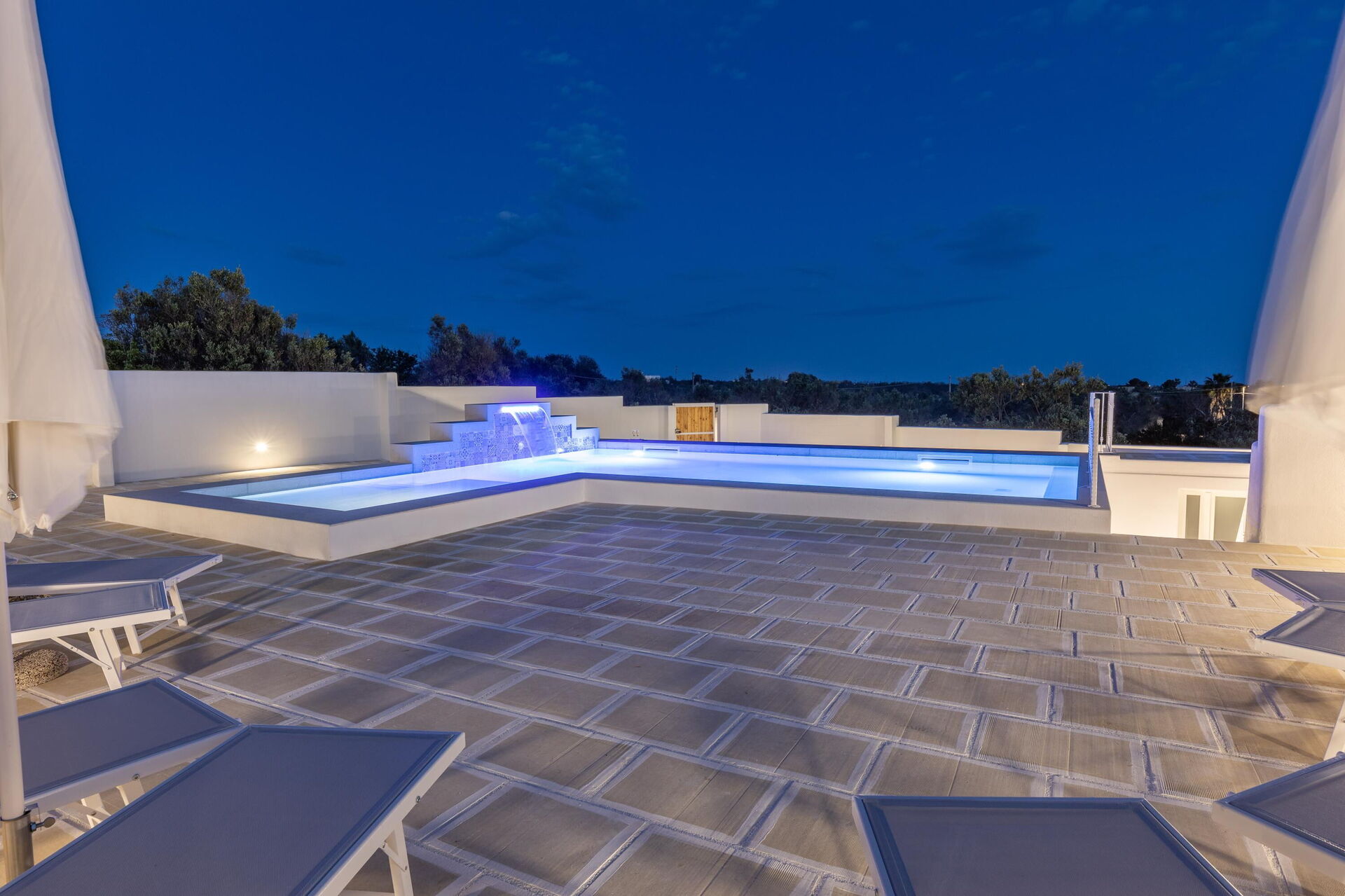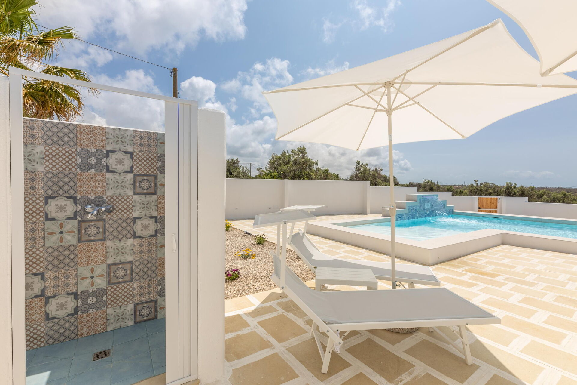 There are many outdoor common spaces for a pleasant stay with family and friends, whether you’re relaxing on the veranda’s dining area, or spending unforgettable moments by the pool and sunbathing area in the Apulia sun.
