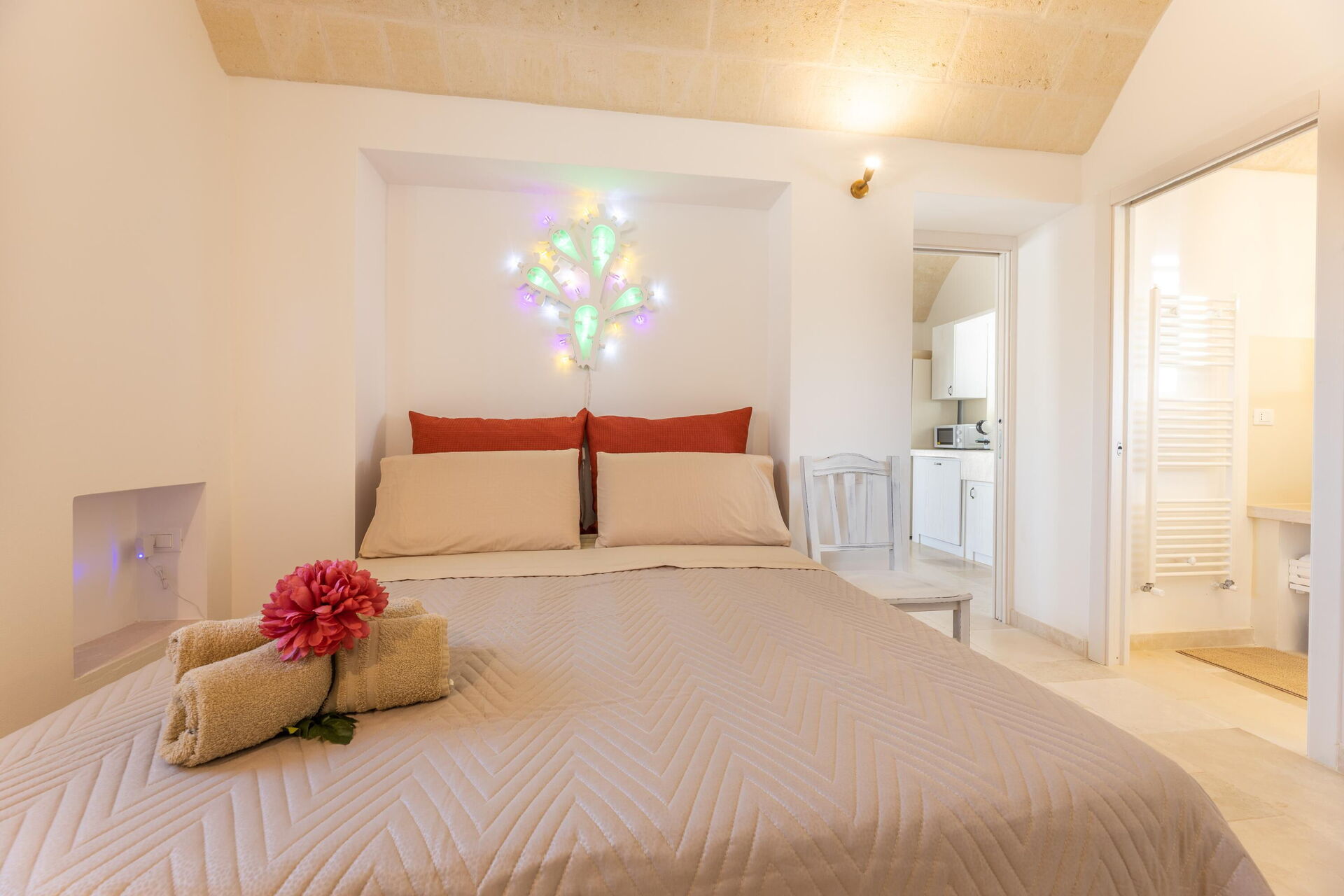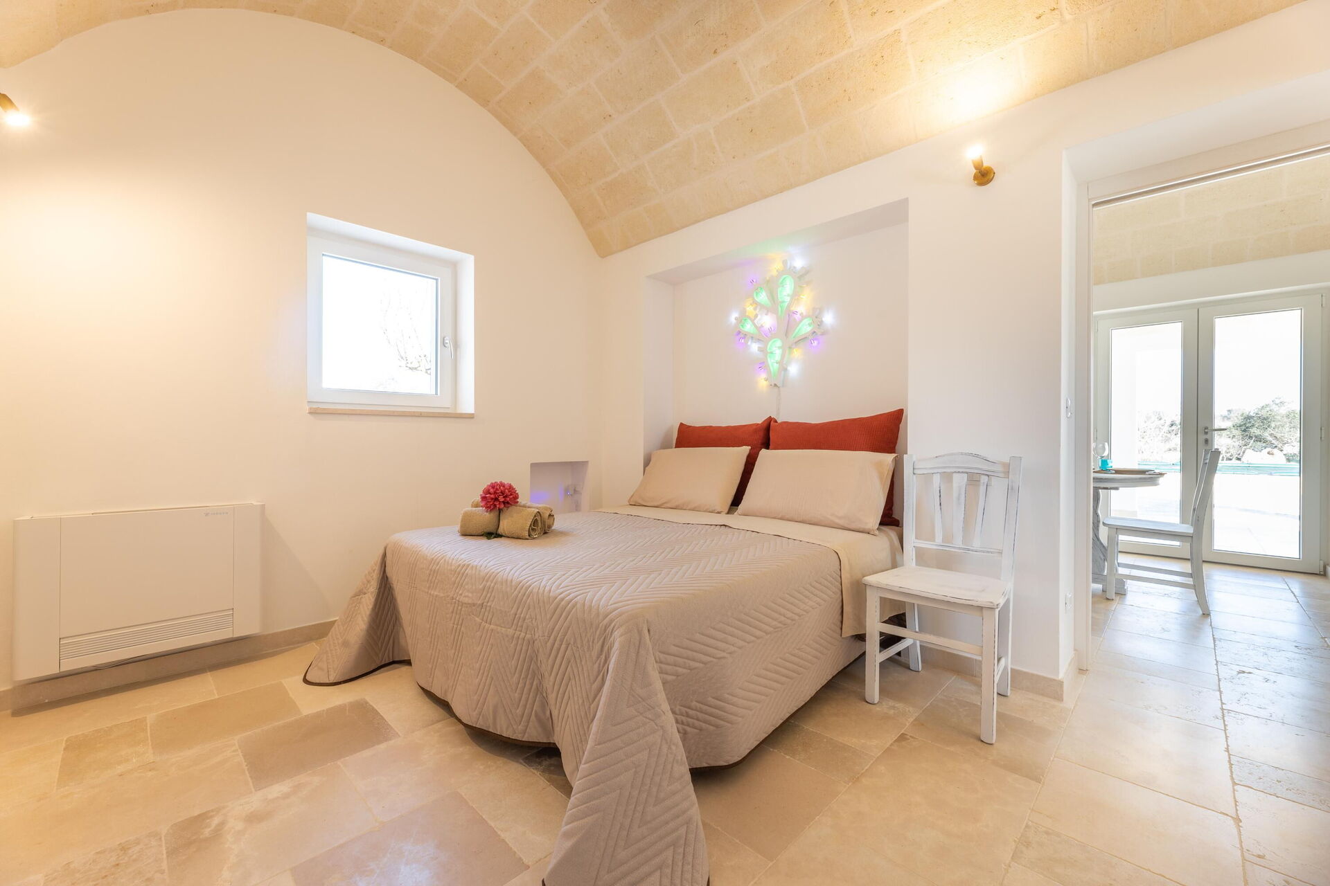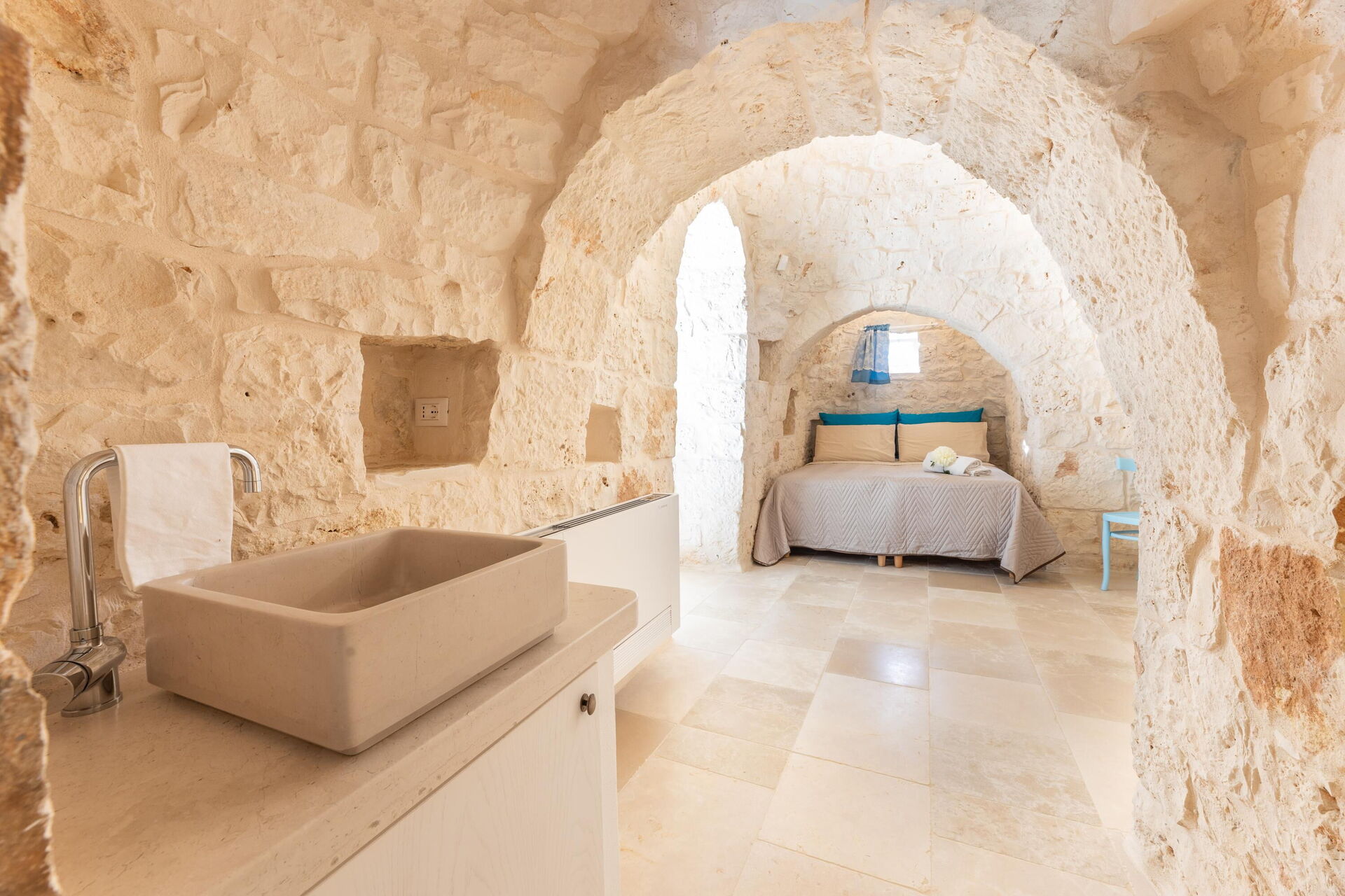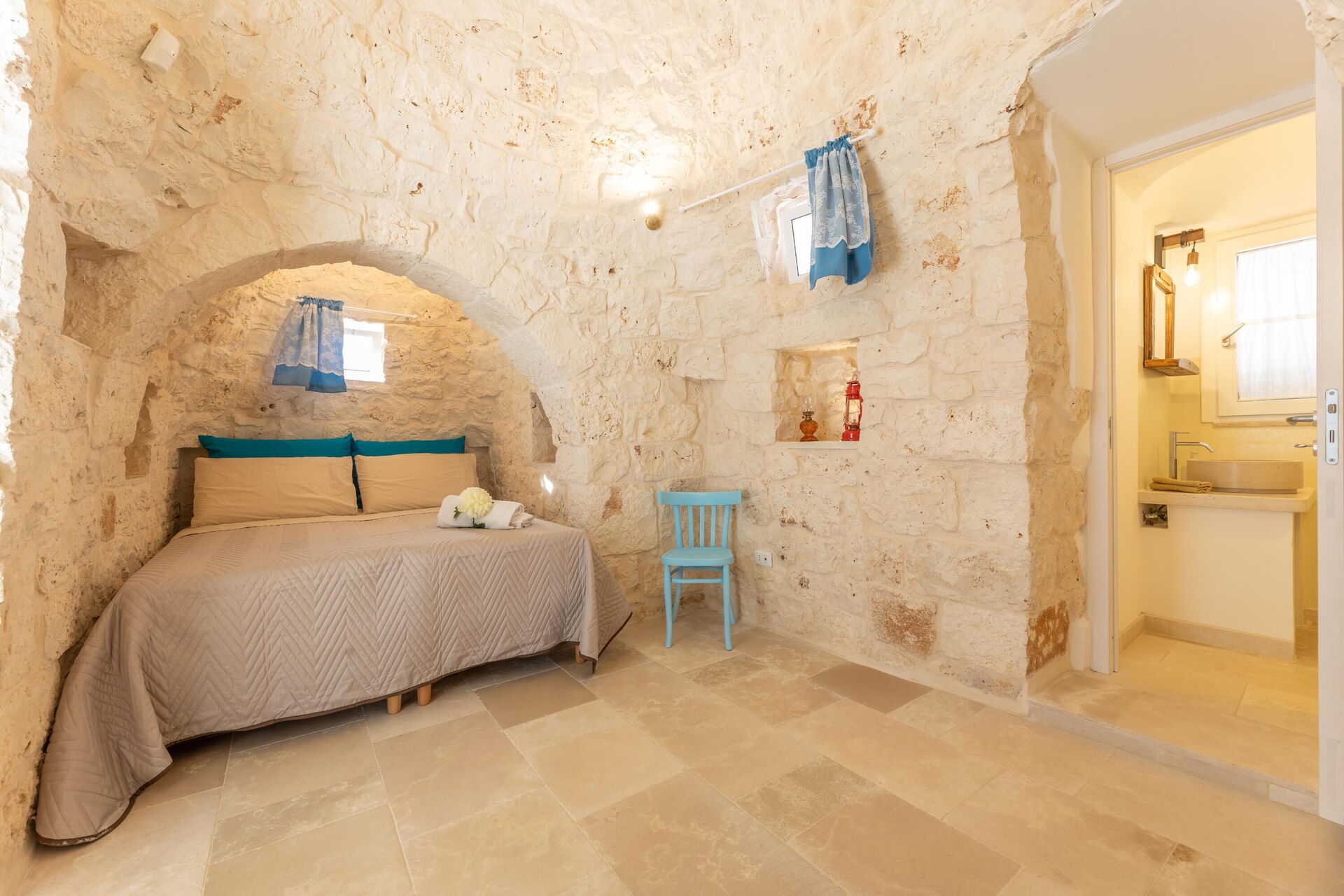 You’re sure to be impressed by the bedroom carved out of the trullo, and the clever use of indoor space!