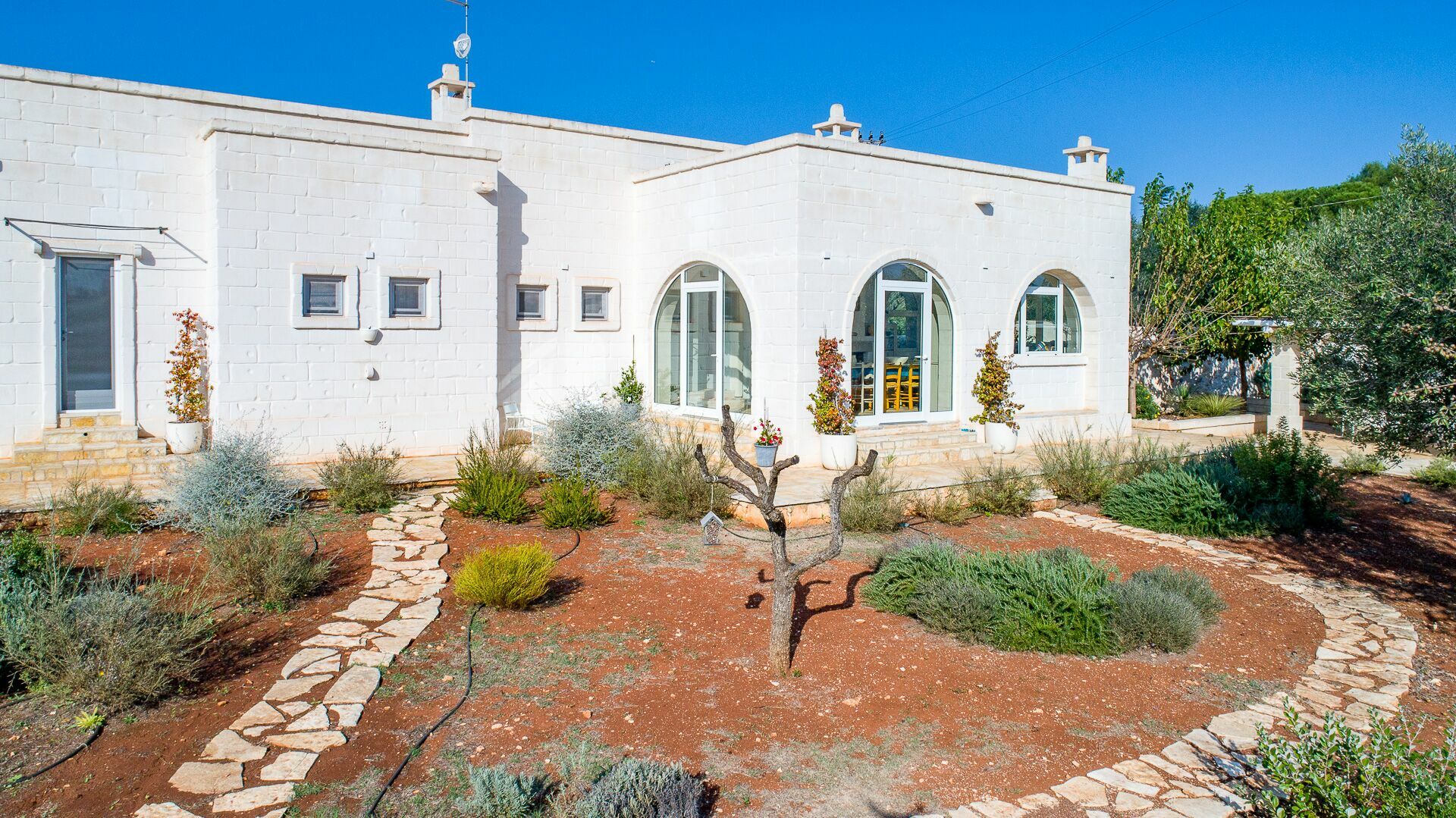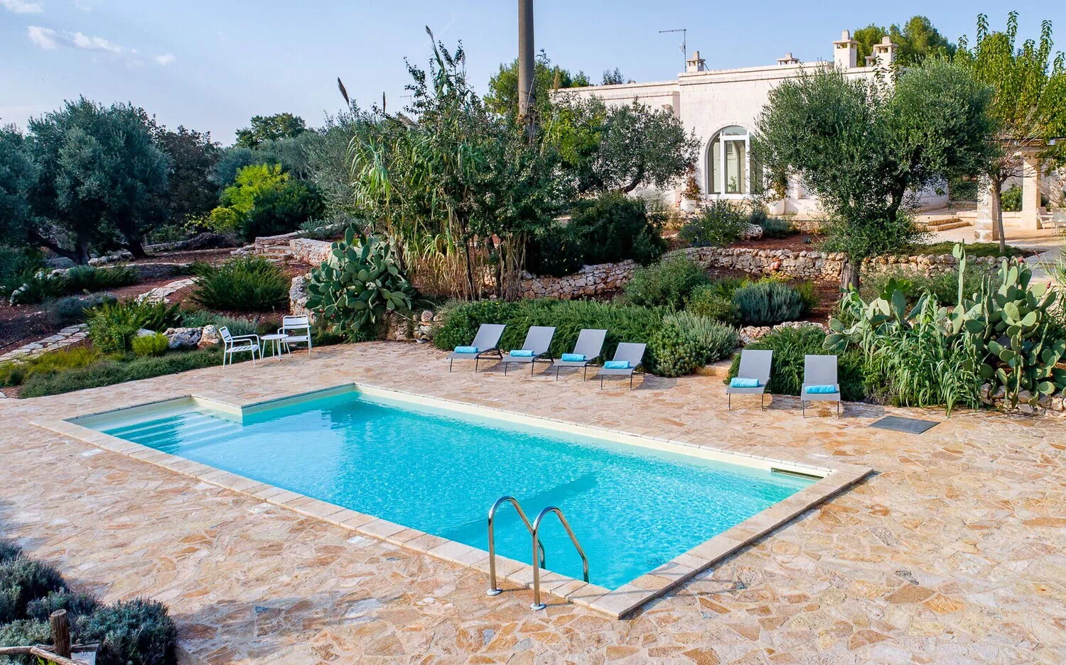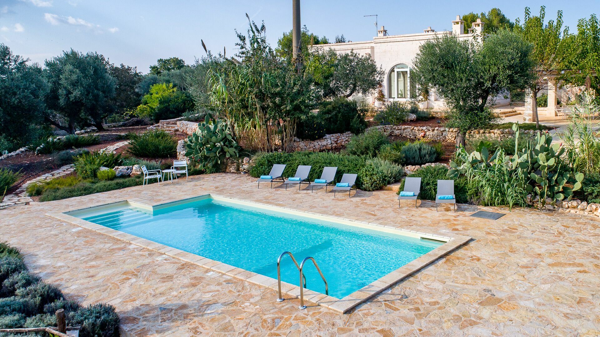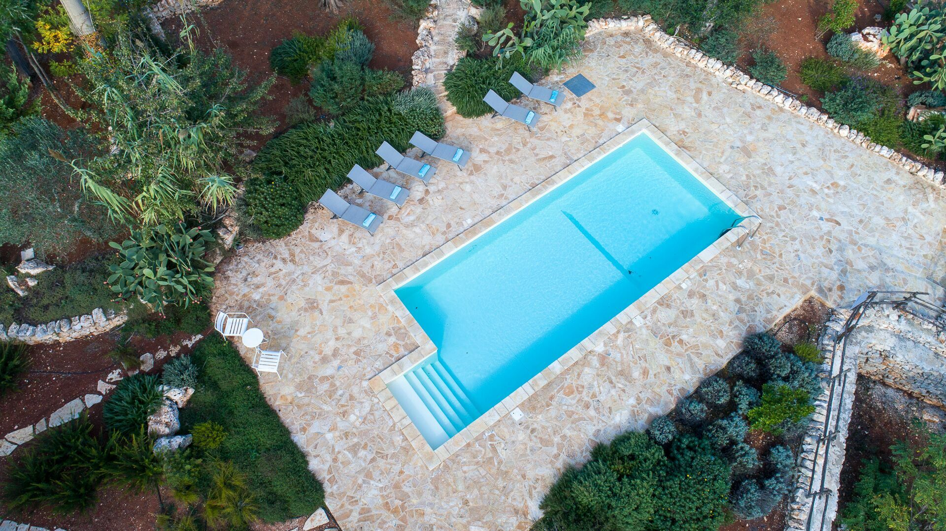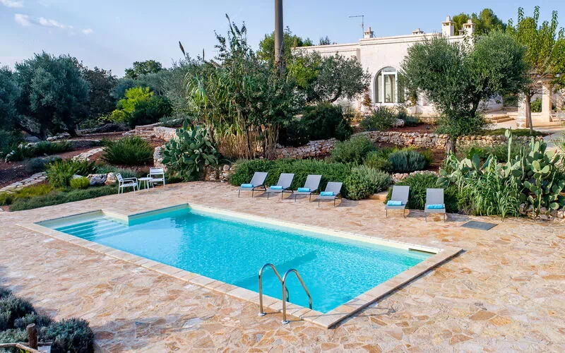 Nestled in the beautiful countryside of the Valle d’Itria (Itria Valley), this beautiful vacation villa in Puglia is strategically located just 8 km from Ostuni (“the white city”). It is a good base for exploring sights renowned for their art and history, such as Ostuni, Alberobello, Carovigno, Cisternino, Monopoli and Polignano a Mare.