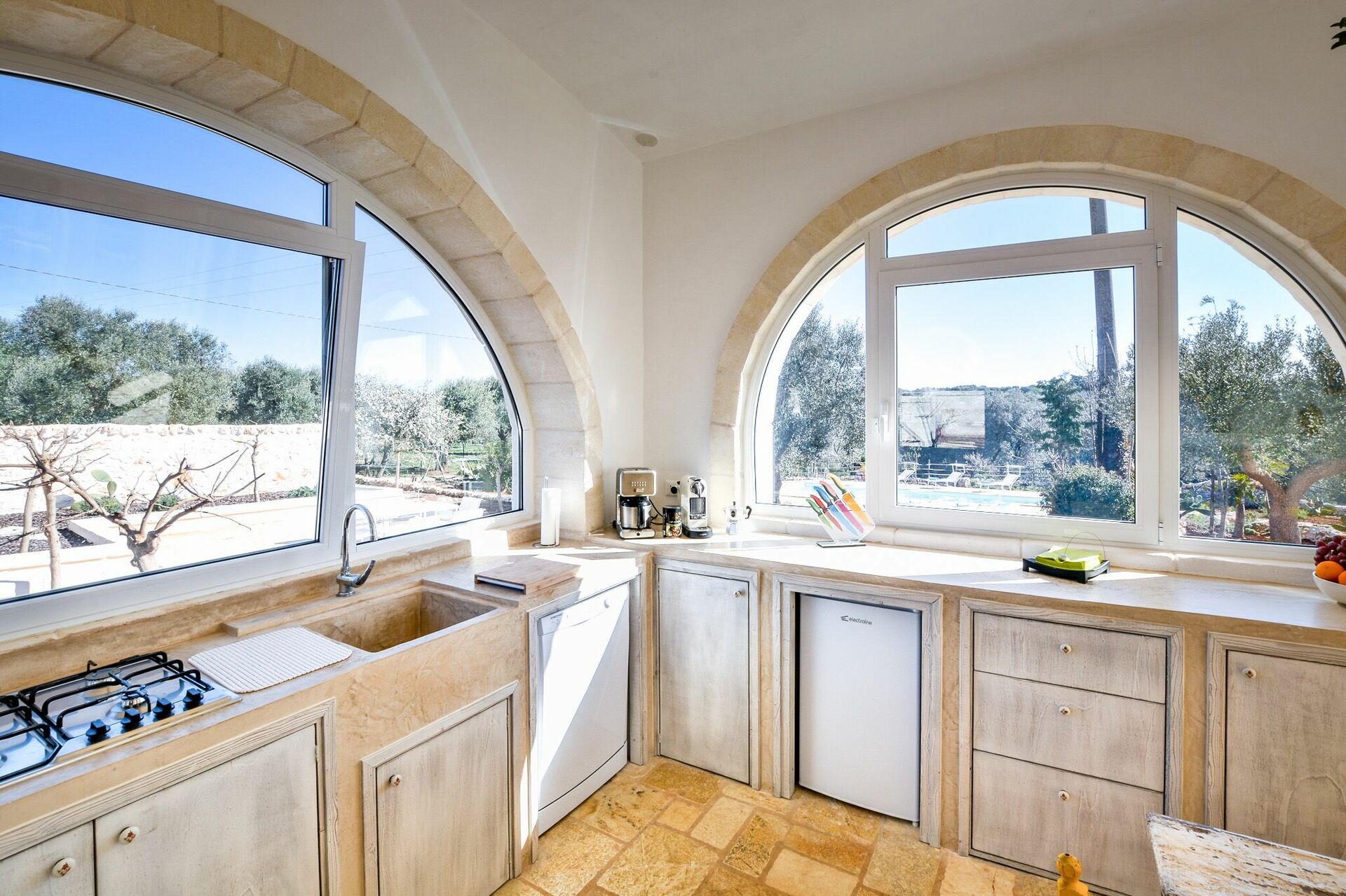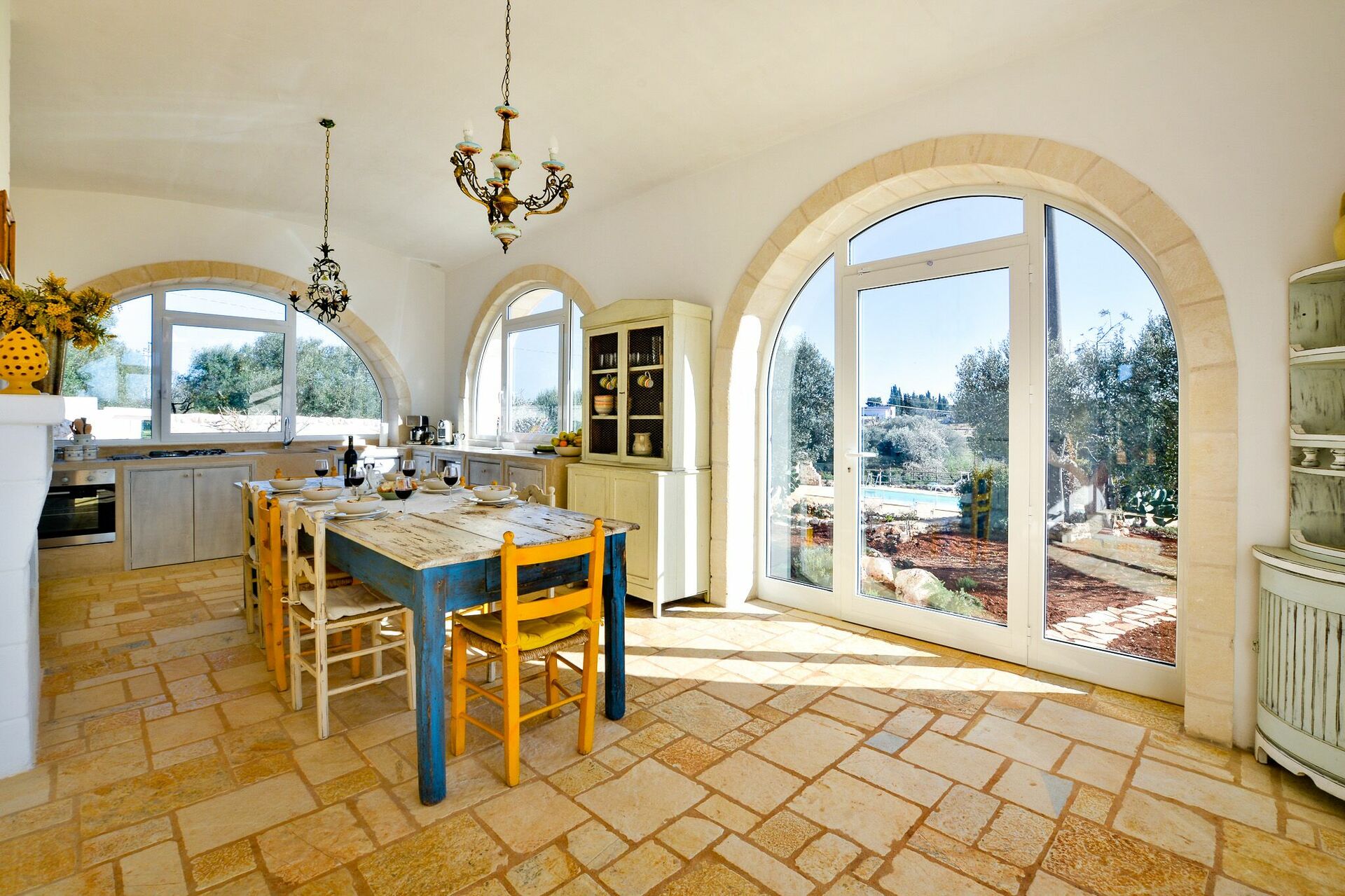 Villa Cristina sits on 8000 m2 of land with a variety of trees and a large olive grove. Outside, it is well equipped for enjoying the fresh air and relaxing by the pool. The interiors are welcoming and comfortable.