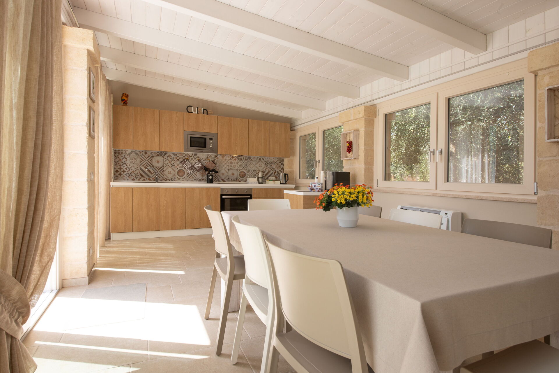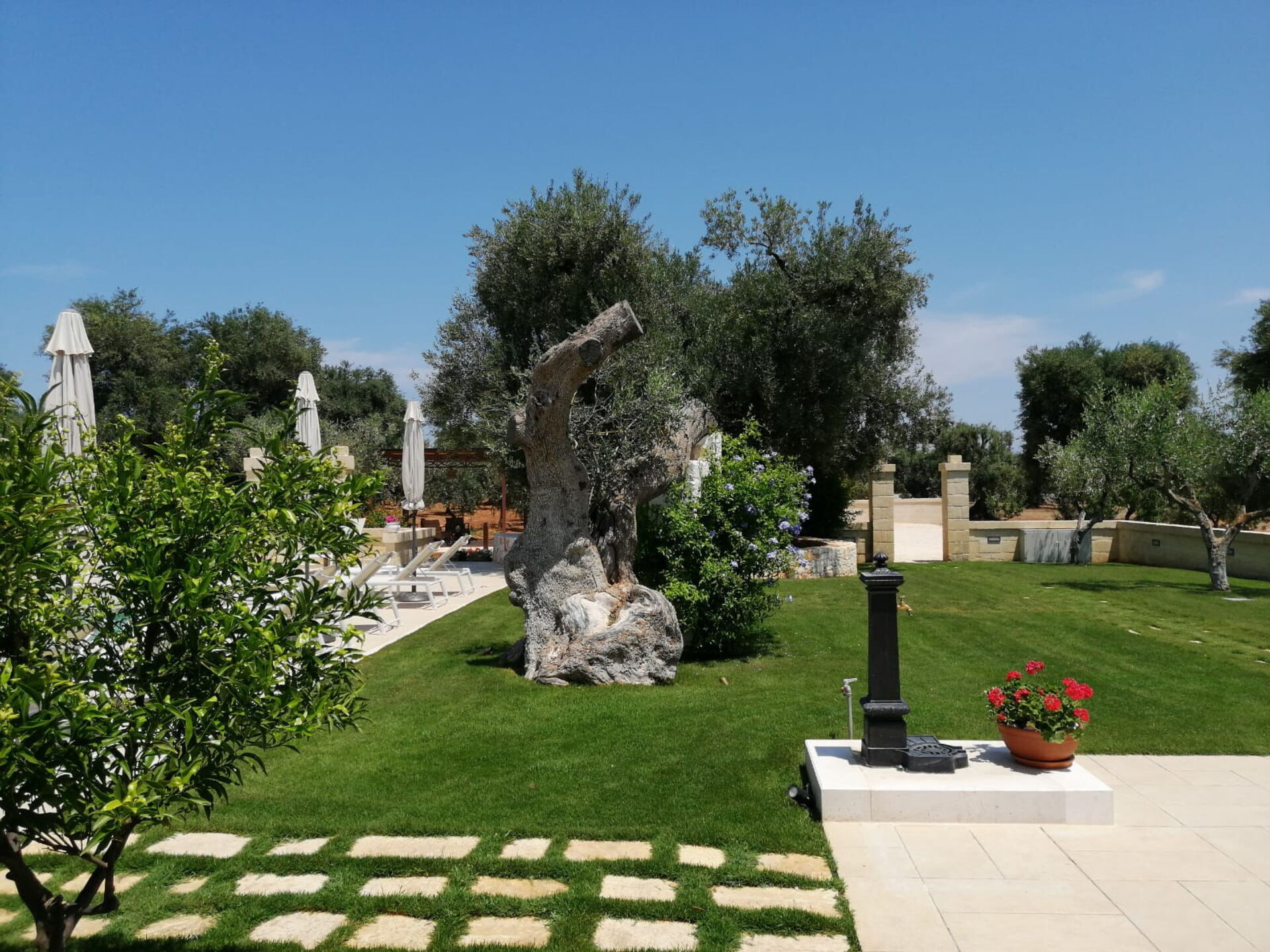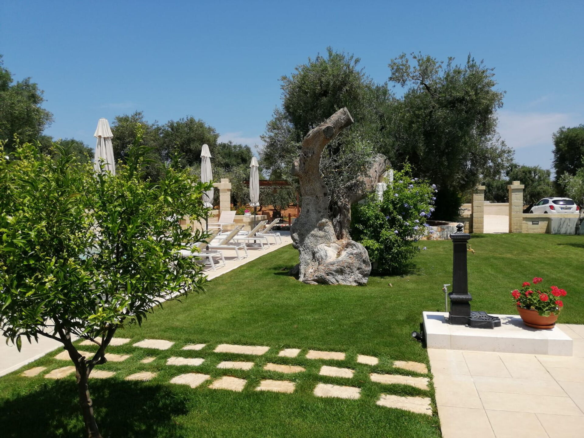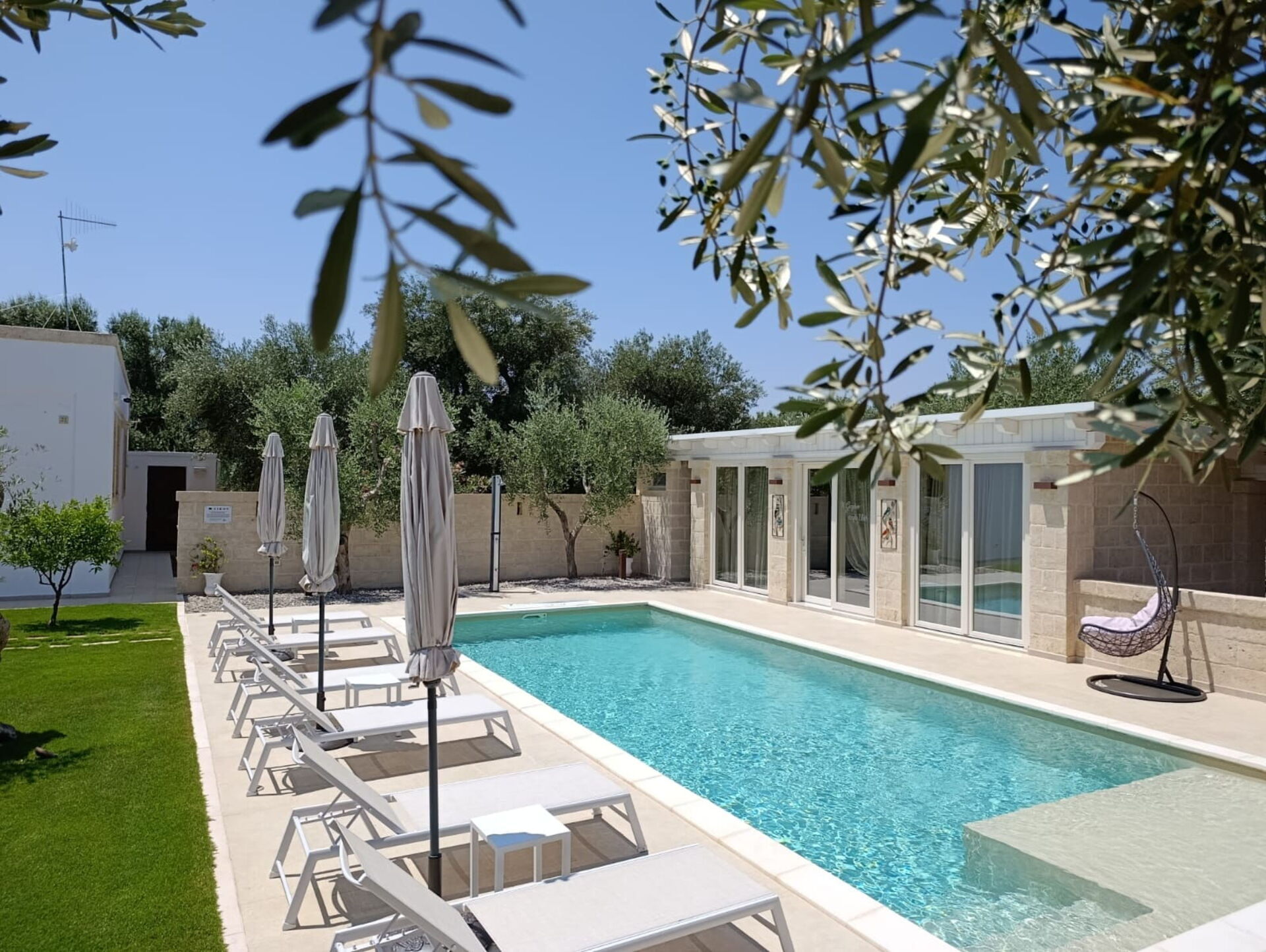 The house is nestled in a splendid rural area among thousand-year-old olive trees. Its central location is within easy reach of the Itria Valley’s charming small villages, and the sandy beaches of the Adriatic coast.