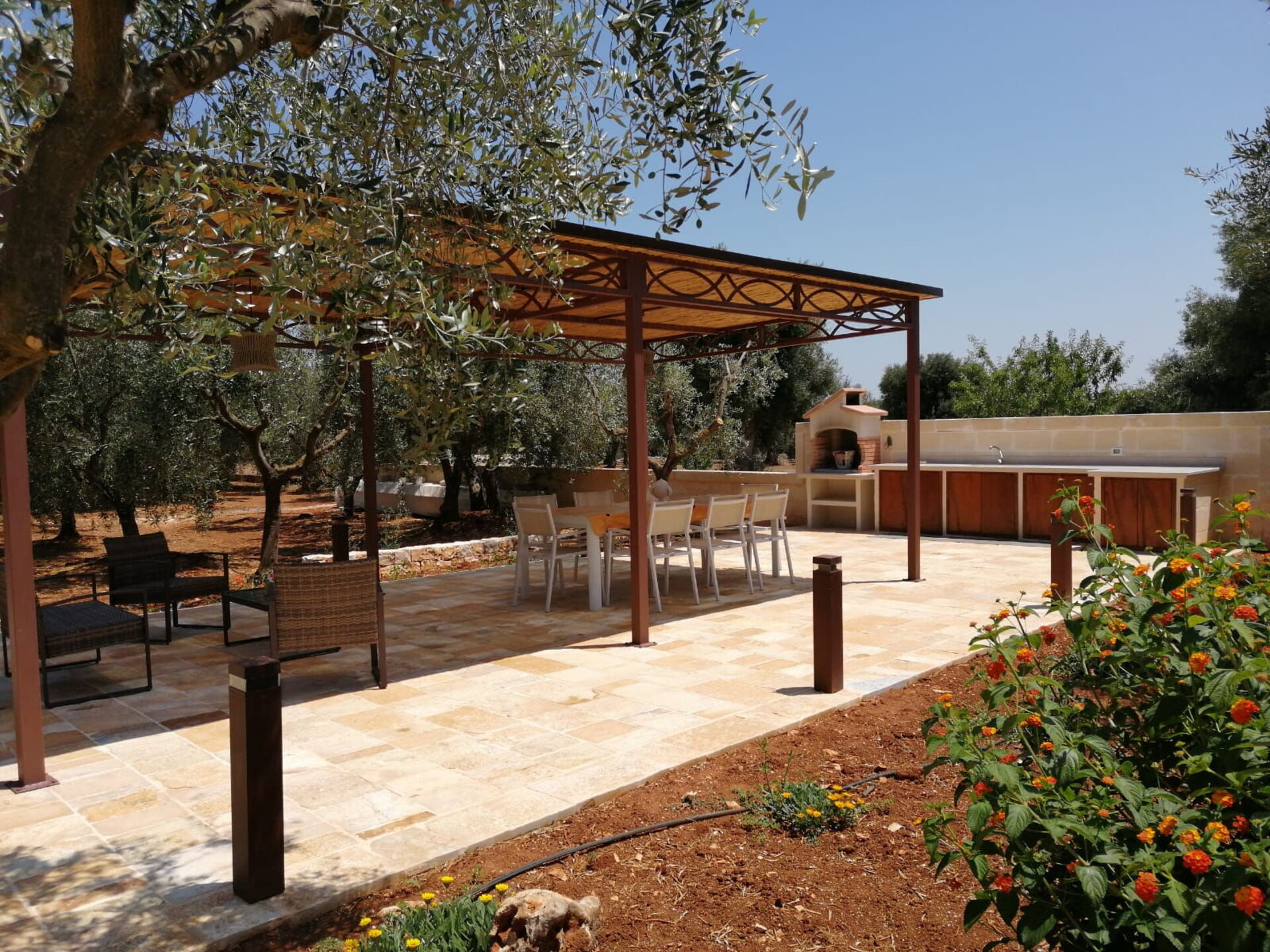- Pergola relaxation area with table and chairs