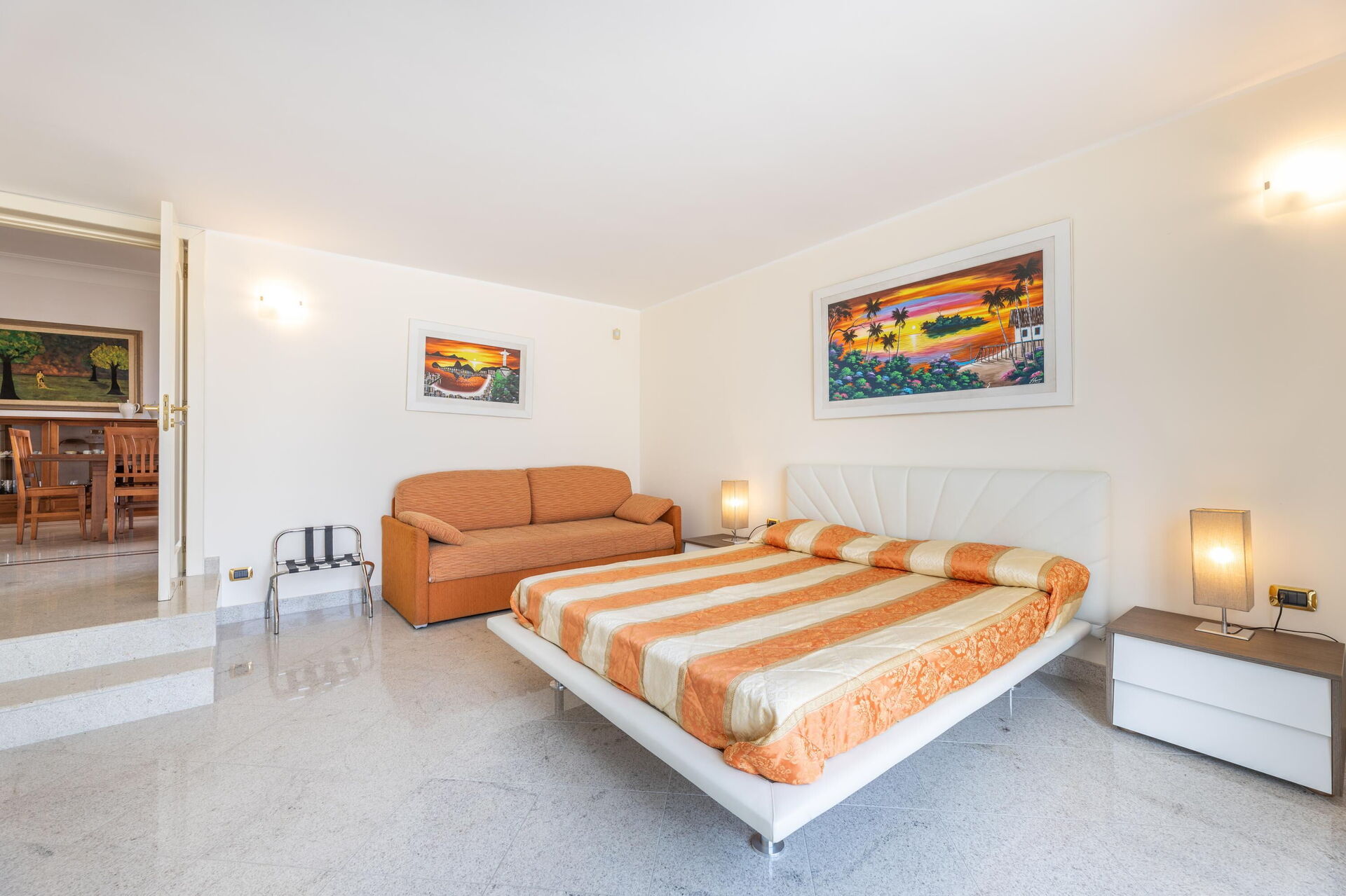 2 steps down: double bedroom (air conditioning) with double sofa bed.